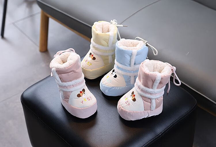Lubei cute baby autumn and winter extra thick velvet soft sole warm cotton shoes baby high top snow boots long cotton boots foot covers 0-15 months pink safe dog cotton boots velvet thickened CX 13.5 inner length 13.5CM (recommended 3-12 months)