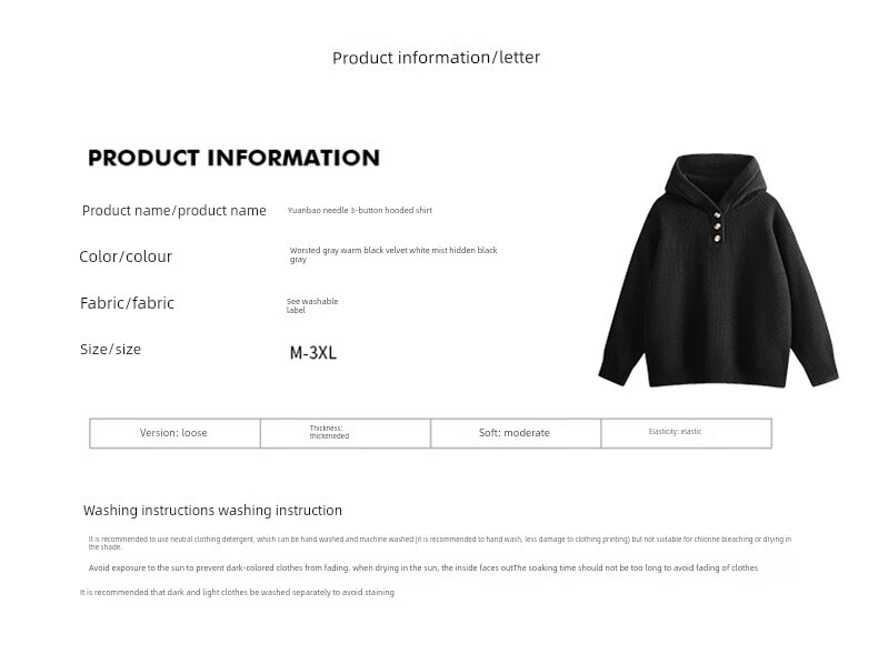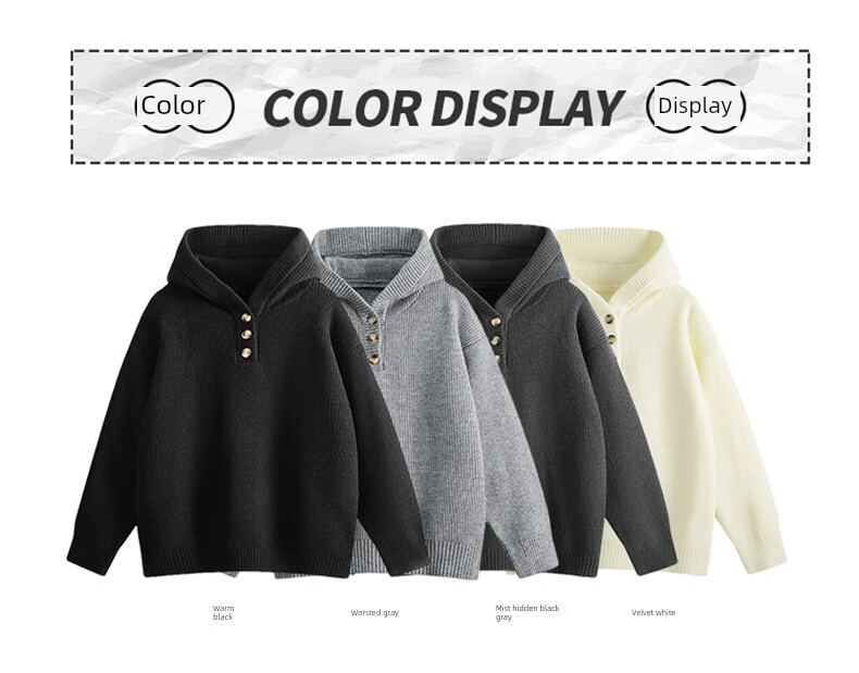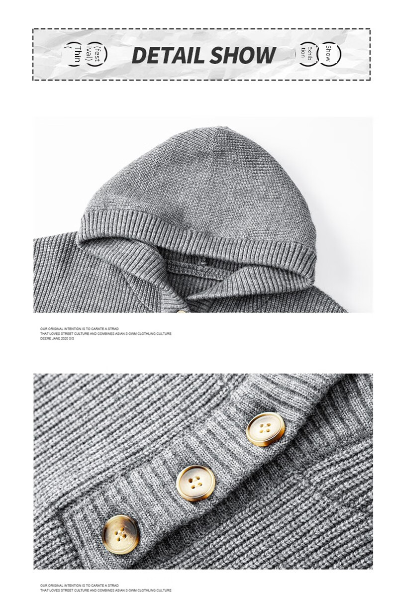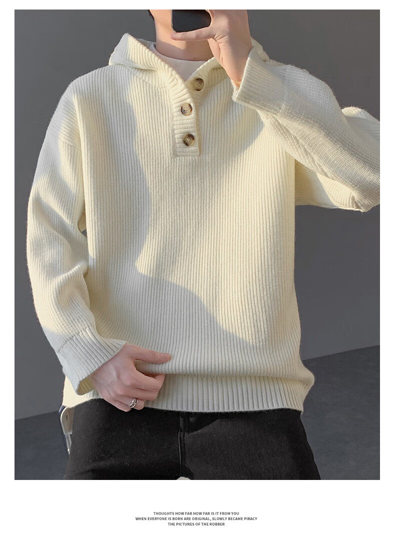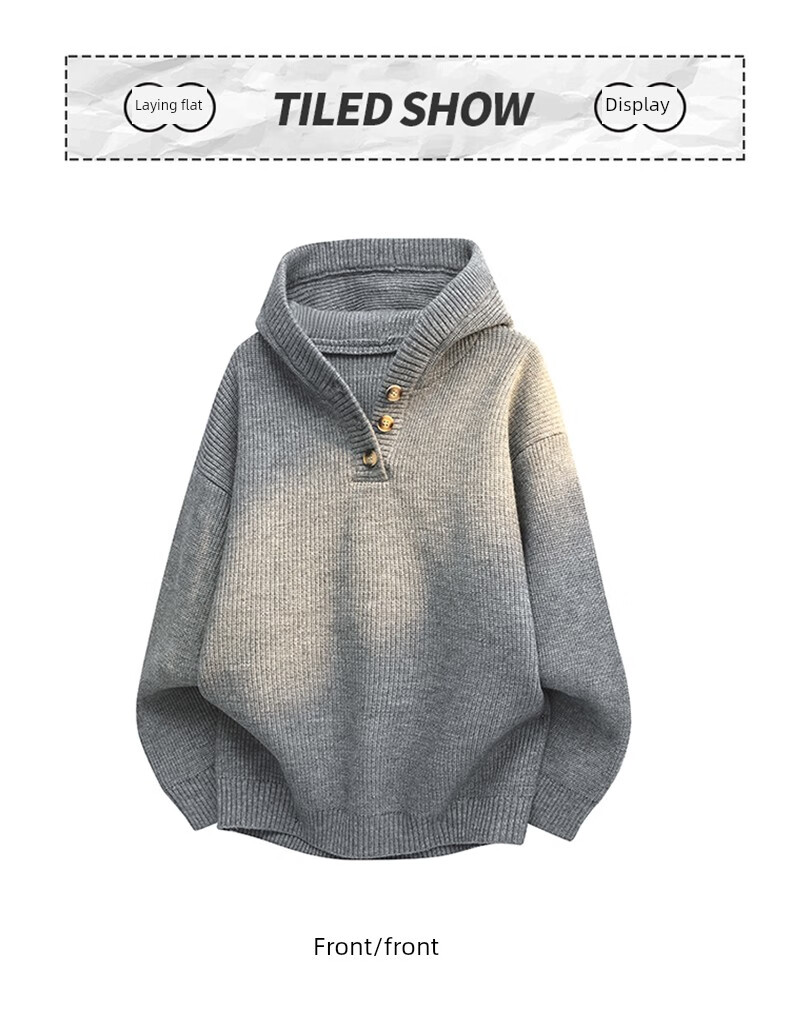 GLMGlm American Vintage Henley Collar Hooded Sweater Men's Autumn Loose Sweater Jacket Misty Black Gray L_120-140Jin Jin equals 0.5 kg