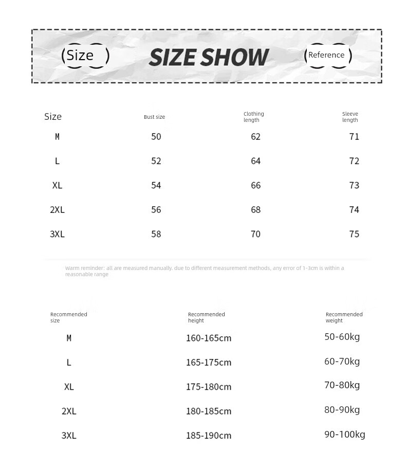 China (cm) 165 / 88-90 170 / 96-98 175 / 108-110 180 / 118-122 185 / 126-130