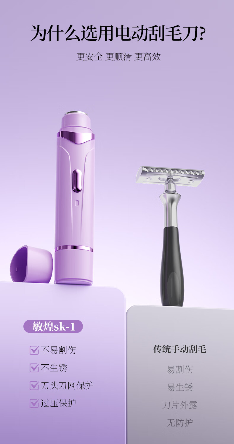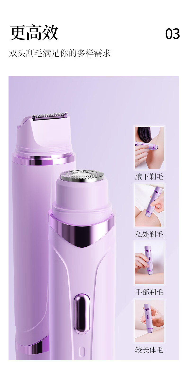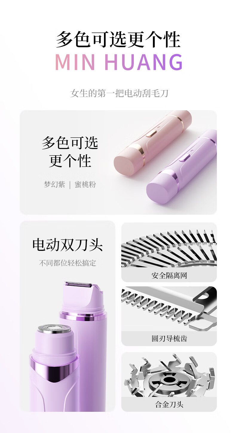 Minhuang electric shaver double-headed armpit private shaver for whole body, arm and leg hair removal device for women, Iris Purple Supreme Edition, double-headed 2-in-1, suitable for both long and short hair, comes with aloe vera gel