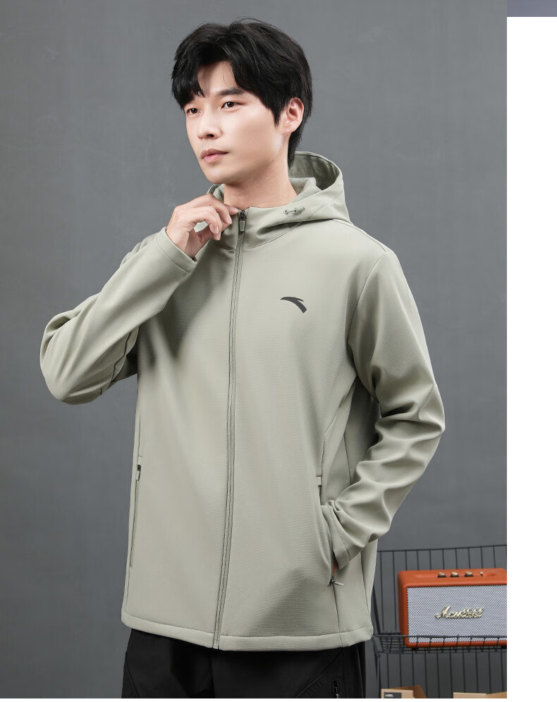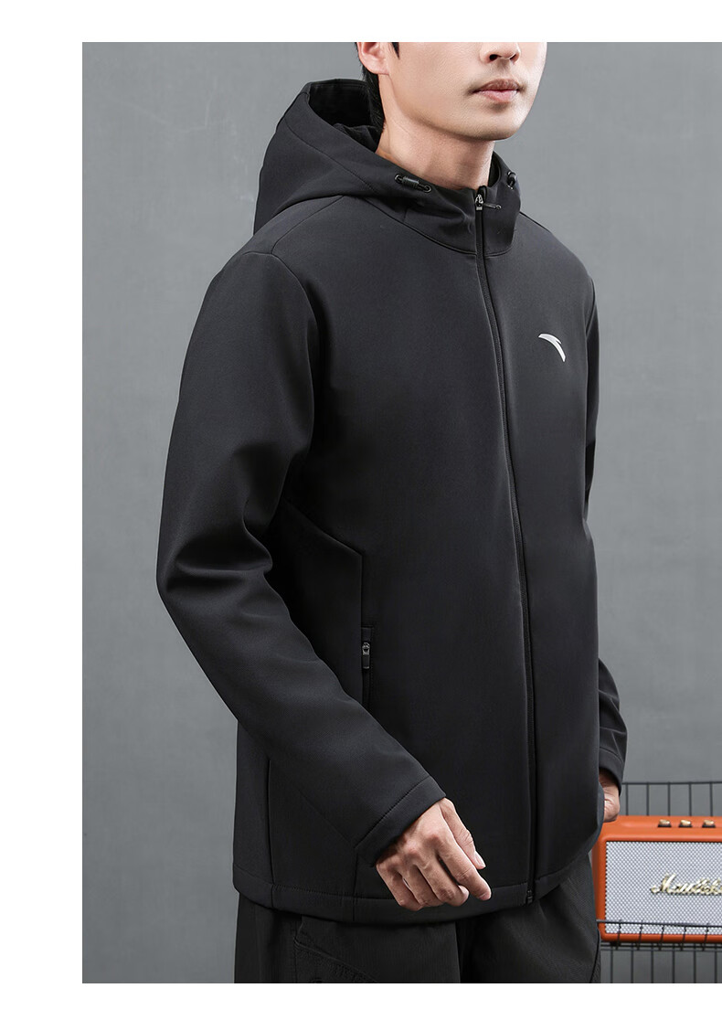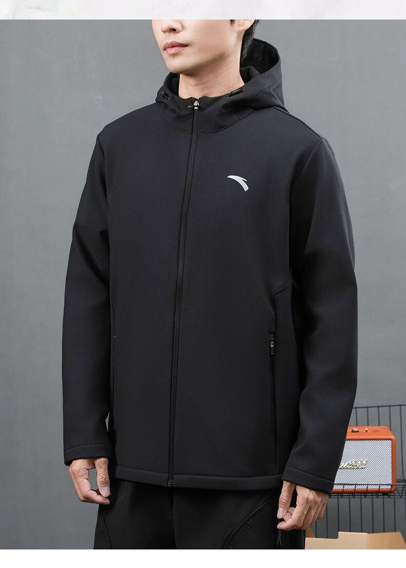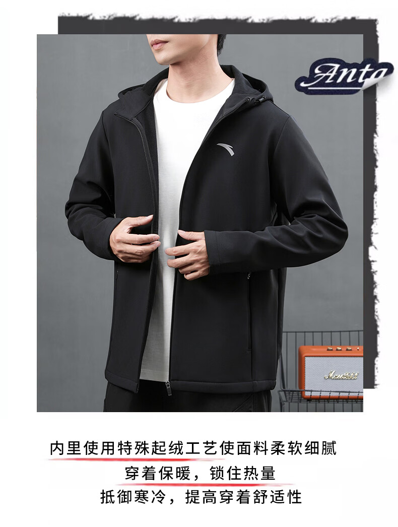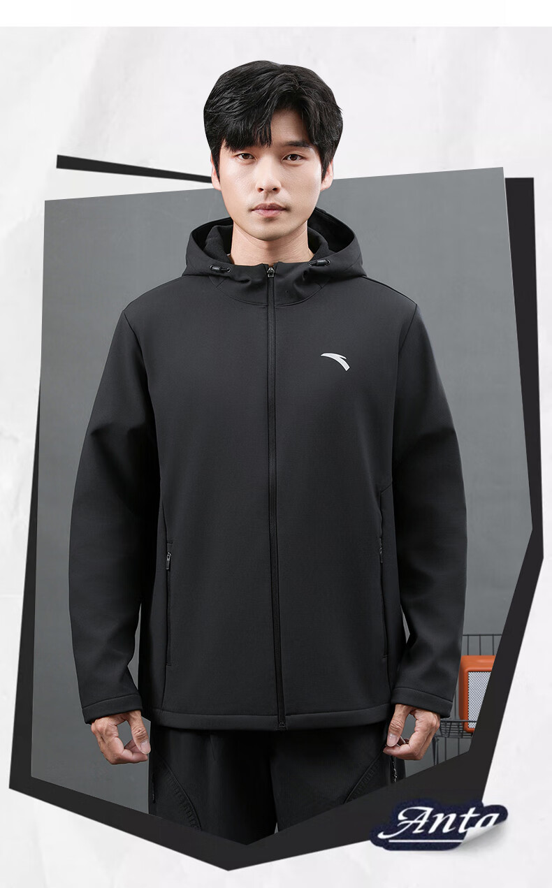 ANTA Jacket Autumn and Winter Men's Sports Jacket New Windbreaker Cardigan Hooded Sweatshirt Men's Casual Versatile Commuting Clothes Standard Black Velvet Hooded Style XL (180) Suitable for 140-160 Jin Jin equals 0.5 kg