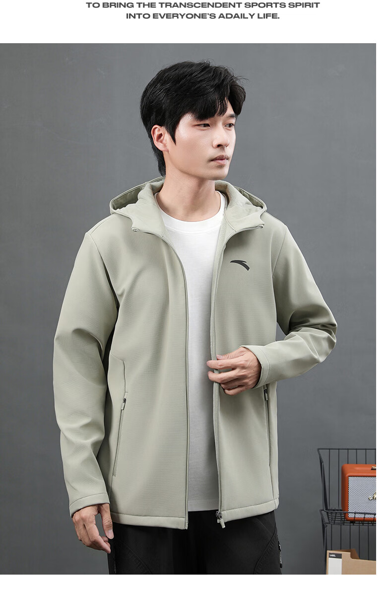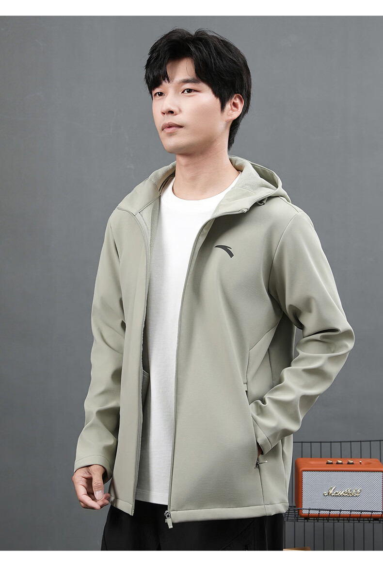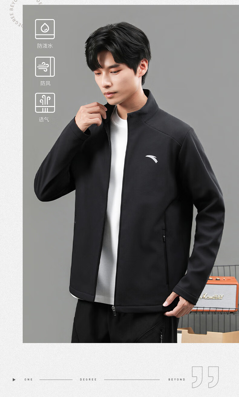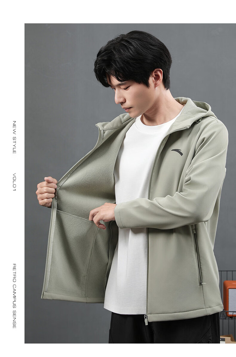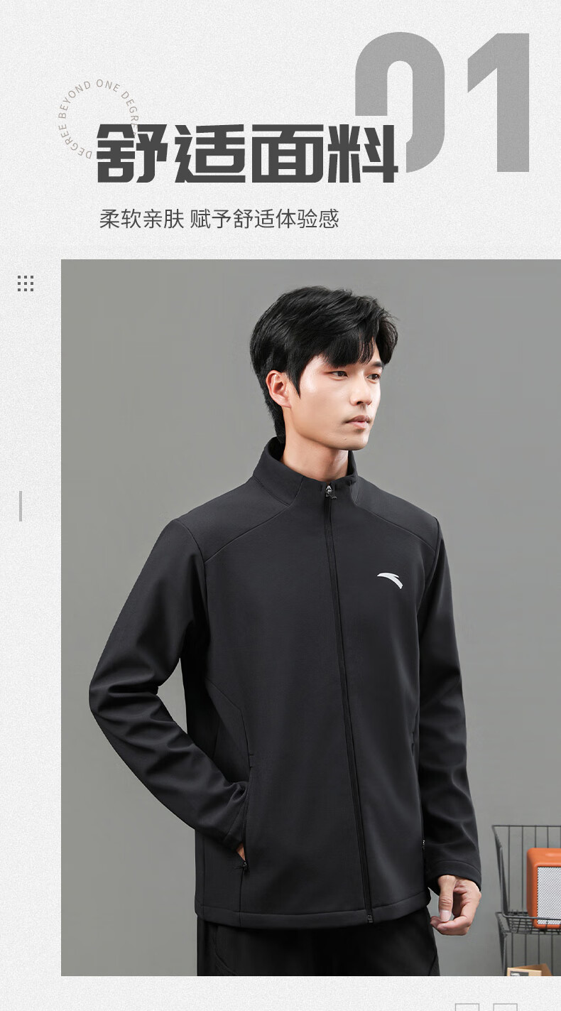 ANTA Jacket Autumn and Winter Men's Sports Jacket New Windbreaker Cardigan Hooded Sweatshirt Men's Casual Versatile Commuting Clothes Standard Black Velvet Hooded Style XL (180) Suitable for 140-160 Jin Jin equals 0.5 kg