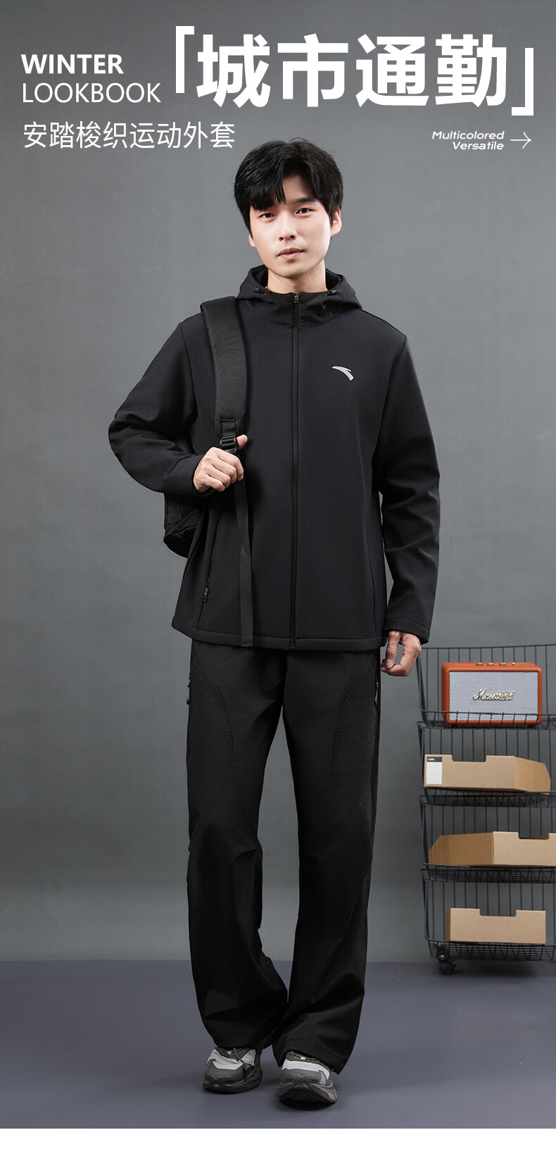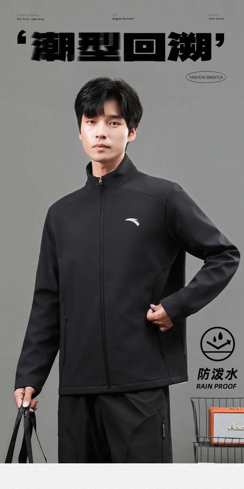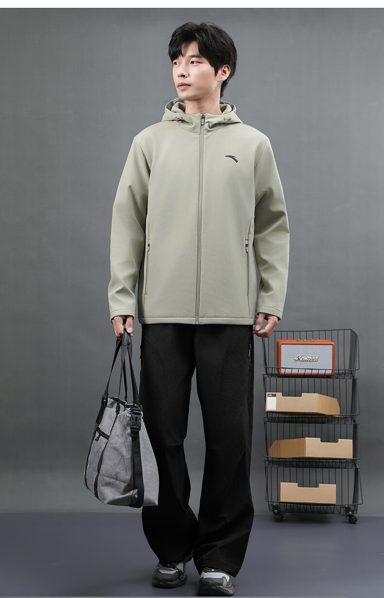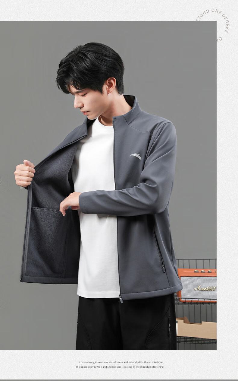 ANTA Jacket Autumn and Winter Men's Sports Jacket New Windbreaker Cardigan Hooded Sweatshirt Men's Casual Versatile Commuting Clothes Standard Black Velvet Hooded Style XL (180) Suitable for 140-160 Jin Jin equals 0.5 kg