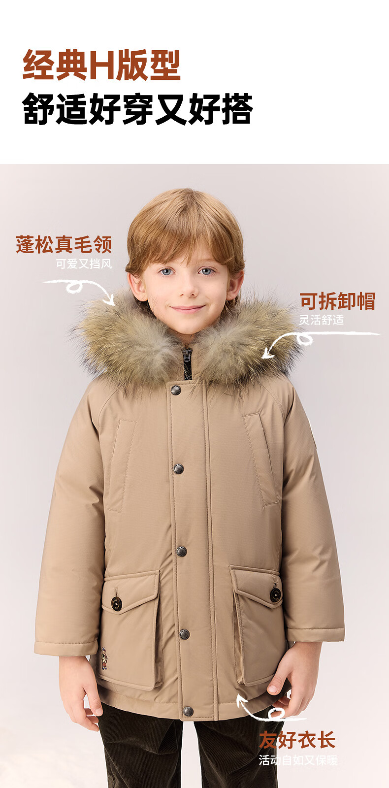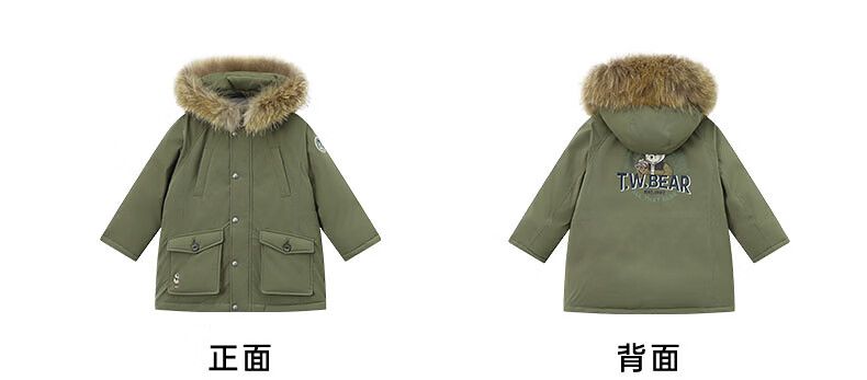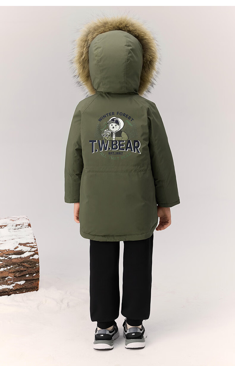 Teenie Weenie Kids Anti-tech Bear Children's Wear 25 Years Winter Boys 90 Fleece Parka Down Jacket Green 110 cm