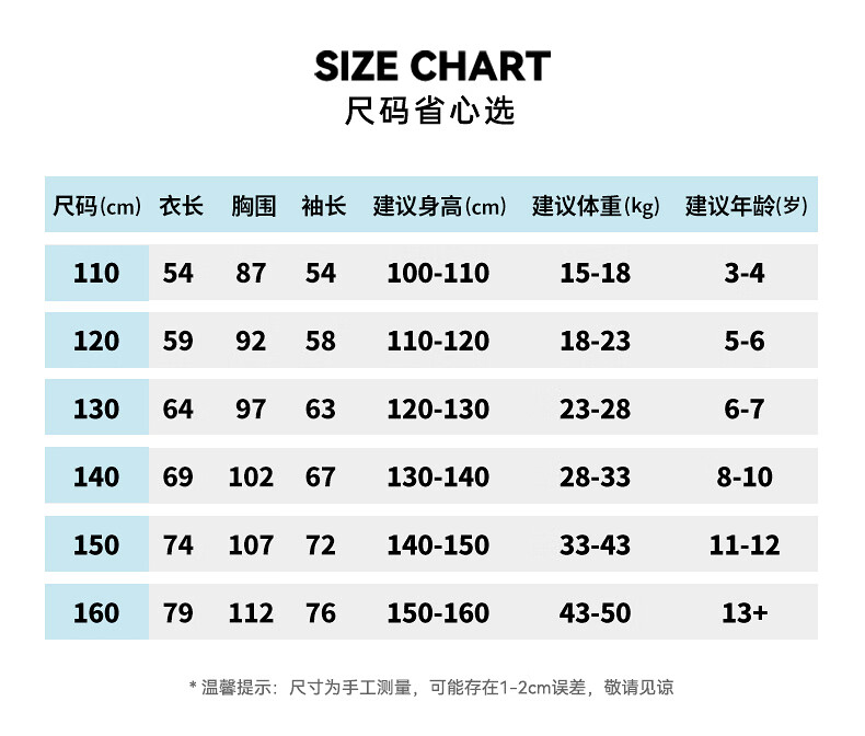 China (cm) 160-165/84-86 165-170 / 88-90 167-172 / 92-96 168-173 / 98-102 170-176 / 106-110