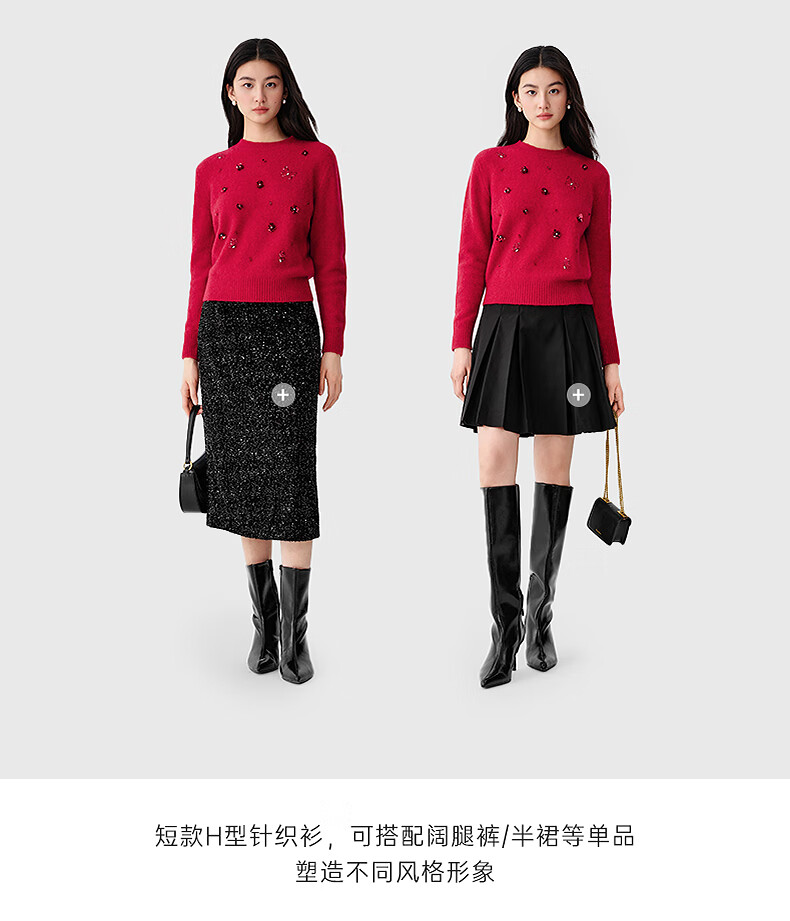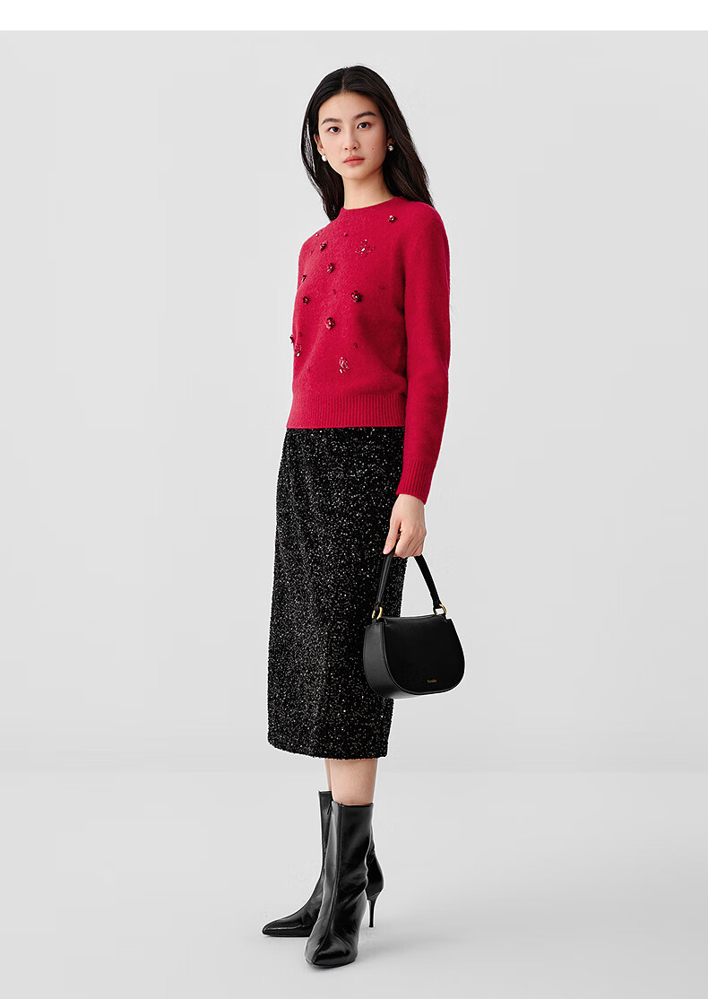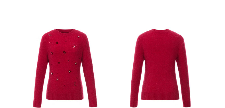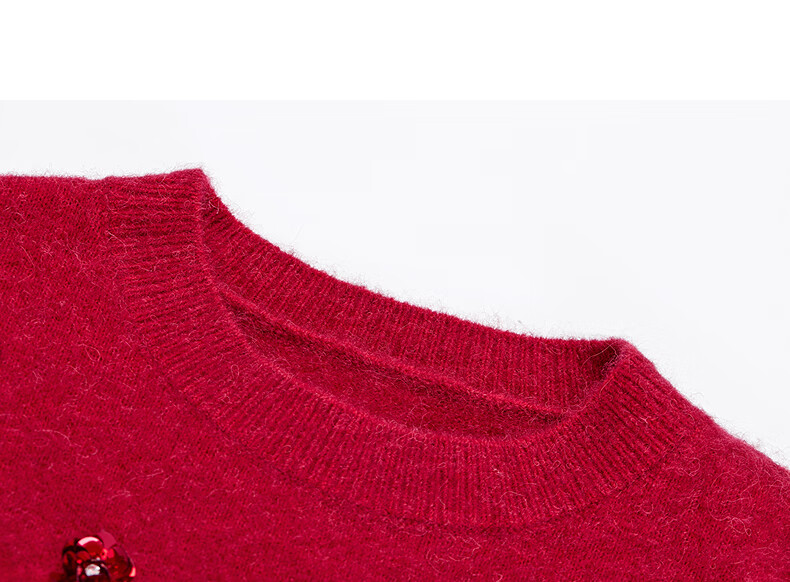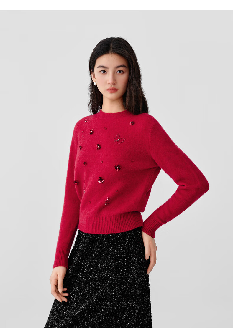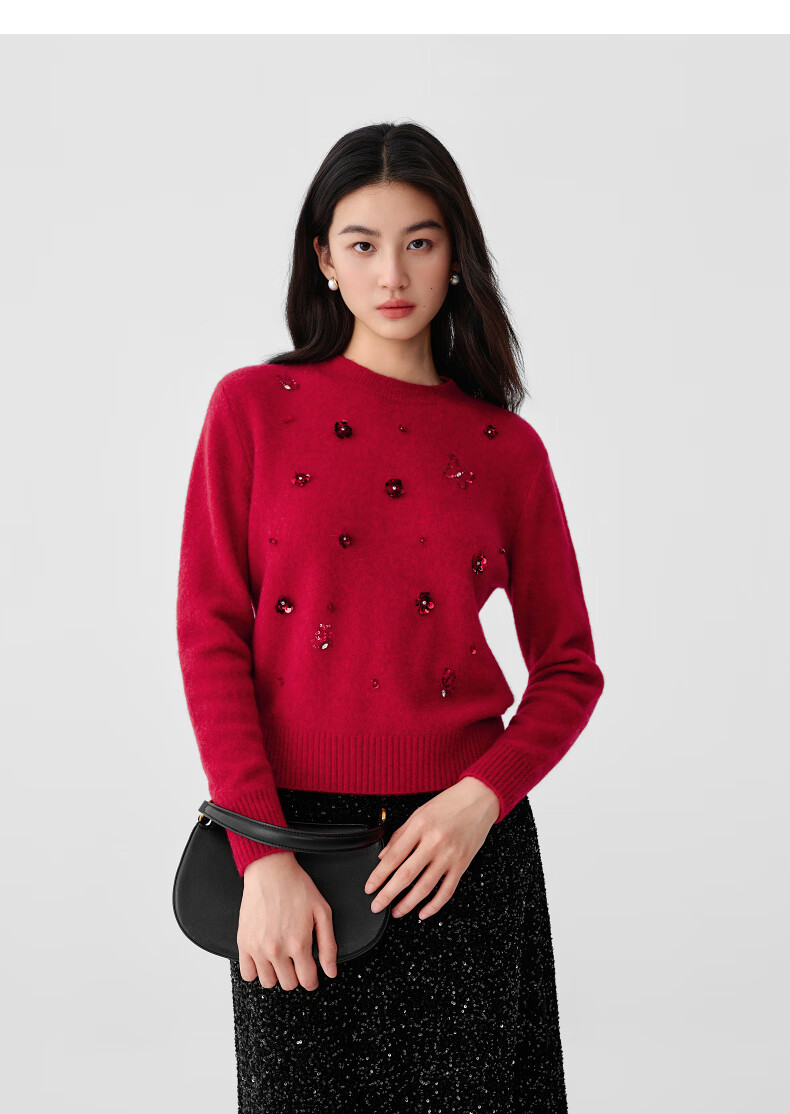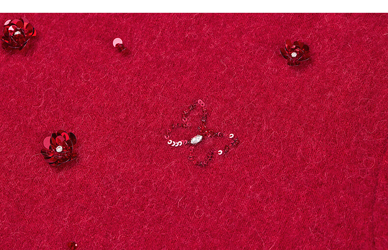 Collatier's 2025 winter new style Starlight Knitted Sheep Wool Sequin Embroidered Sweater Women's Sweater Bright Red S