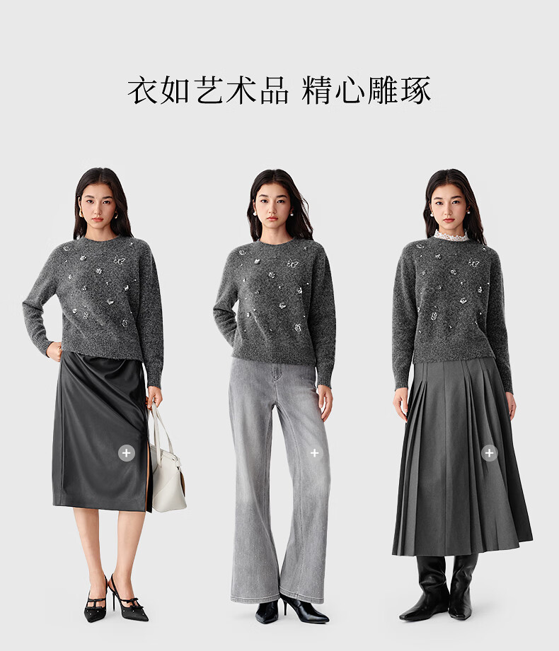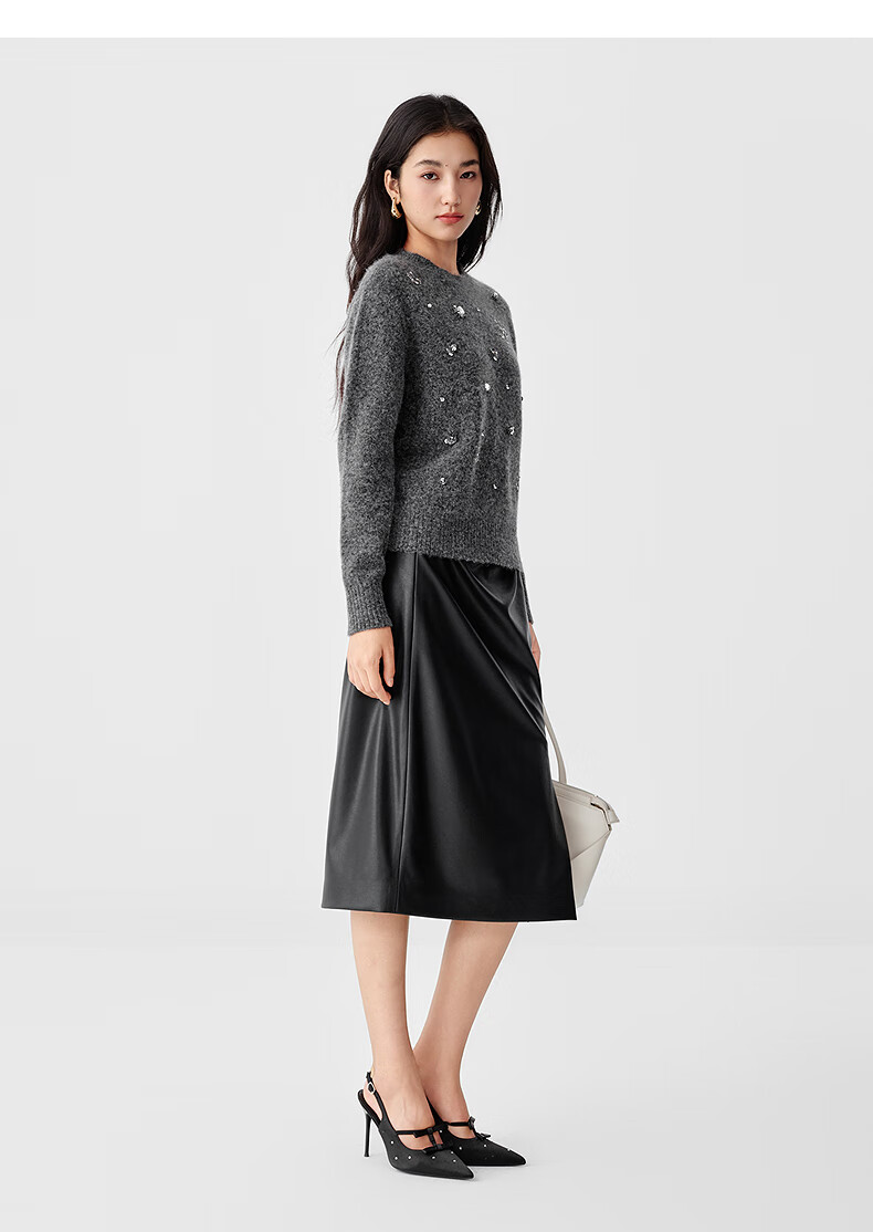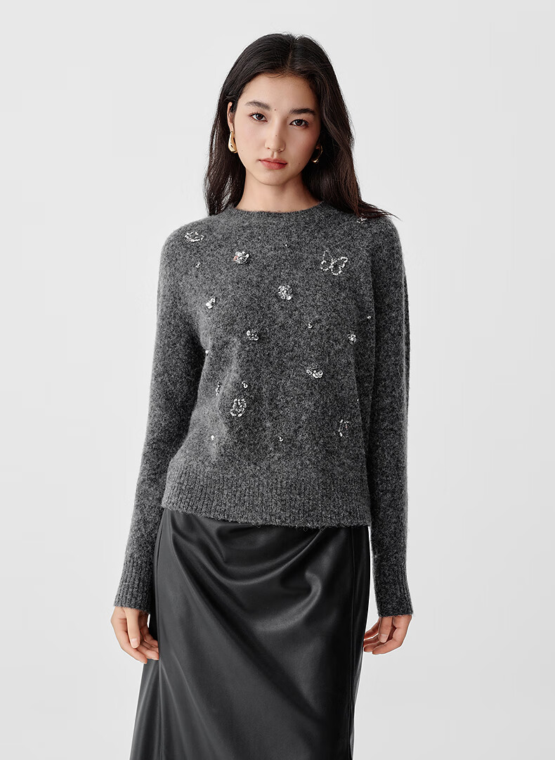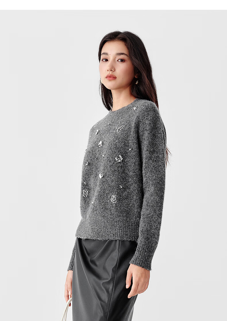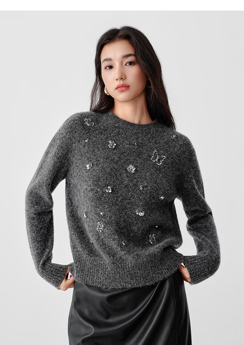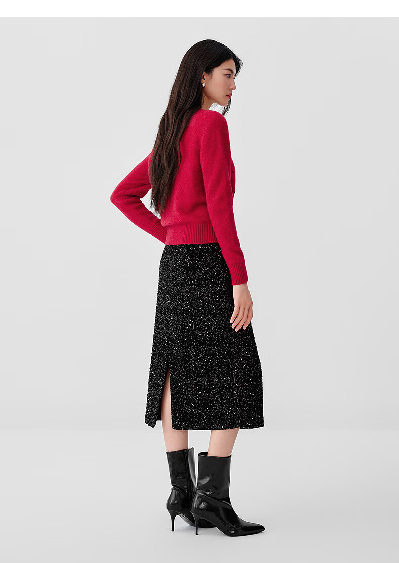 Collatier's 2025 winter new style Starlight Knitted Sheep Wool Sequin Embroidered Sweater Women's Sweater Bright Red S