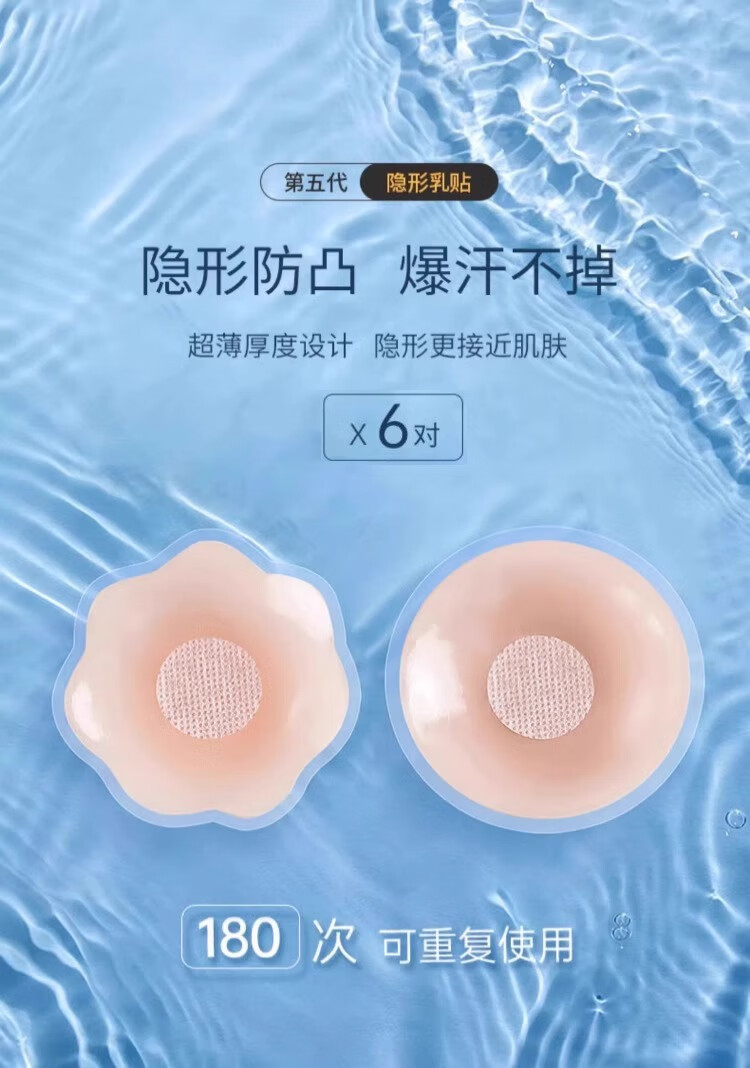 PUEINE乳贴胸贴胸贴女夏薄款硅胶乳贴防凸点隐形无痕小胸婚纱吊带用娇点 【袋装】6对圆+6对花