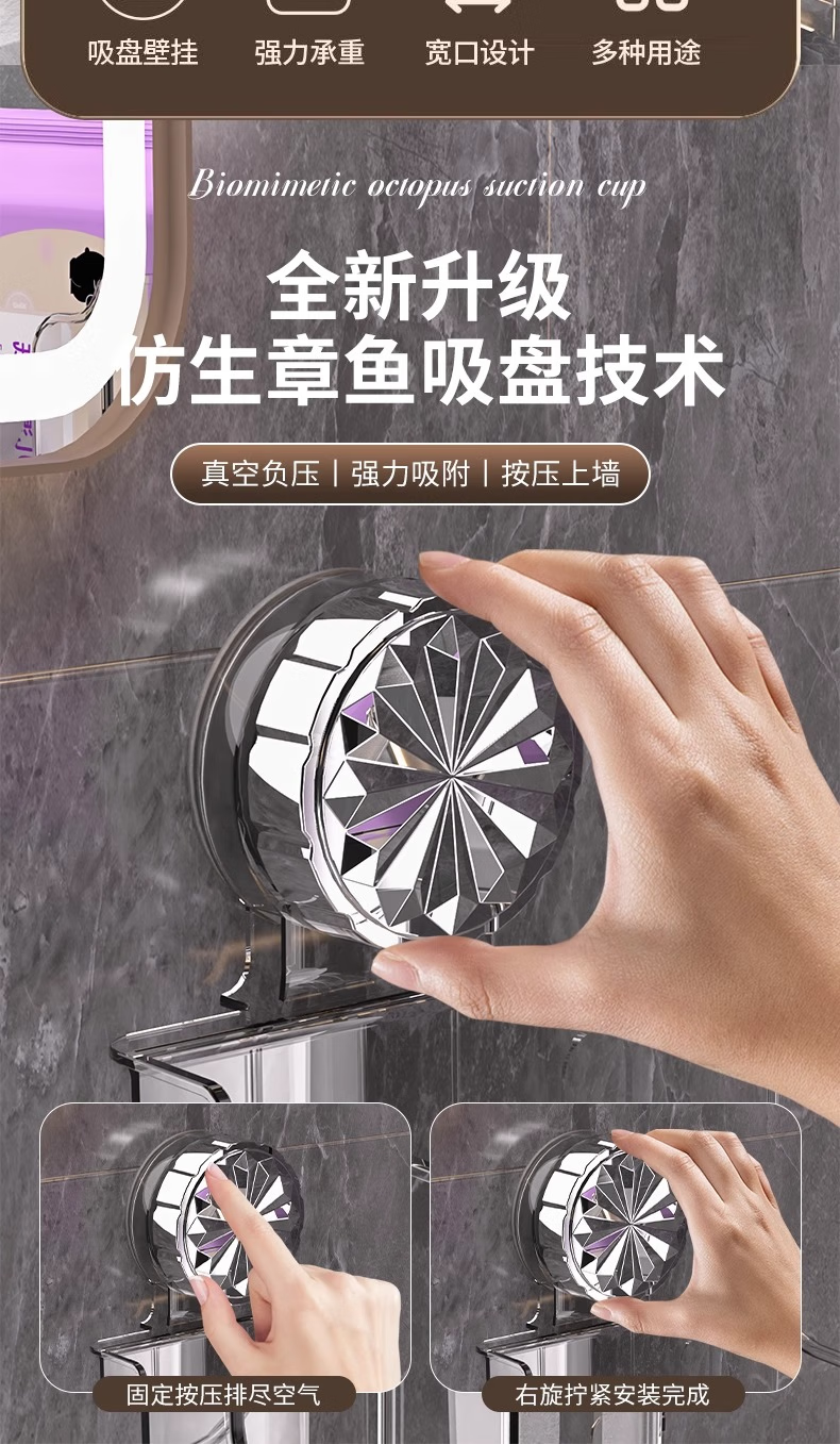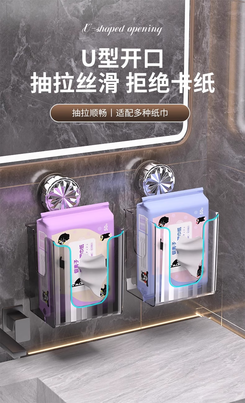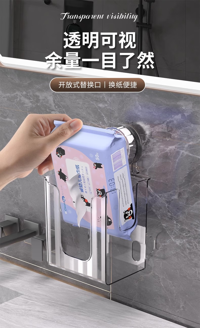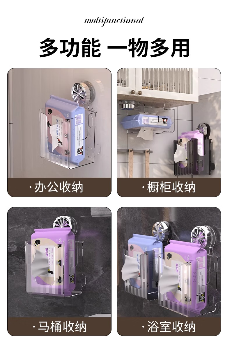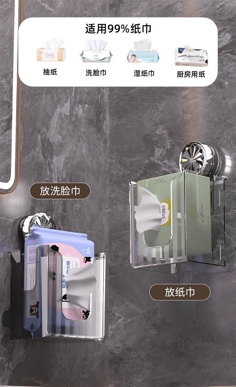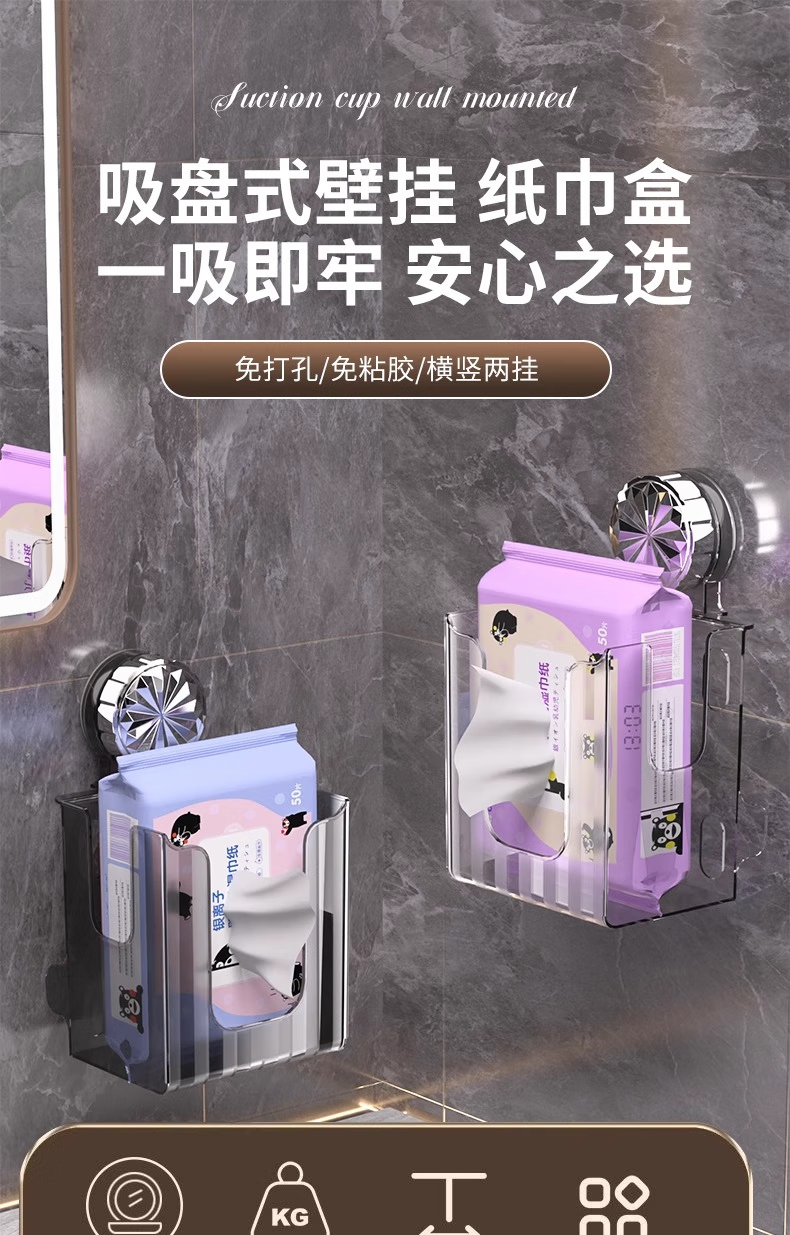 Cosmetics storage box, suction cup tissue box, no punching, removable wall-mounted storage rack, bathroom, transparent white