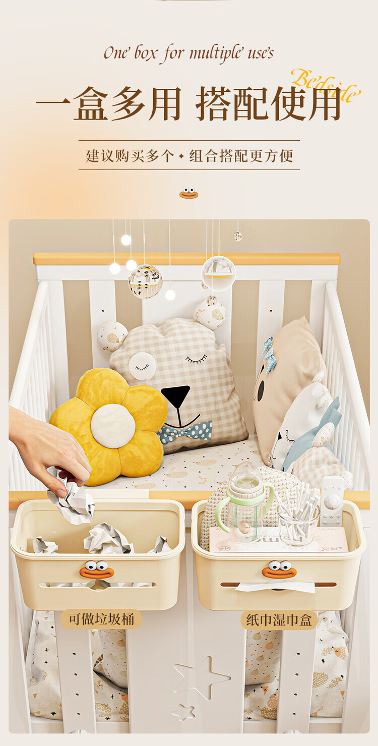 Crib storage hanging basket bedside bedside baby changing table side diaper storage bag hanging bag small height white - fully surrounded hanging basket