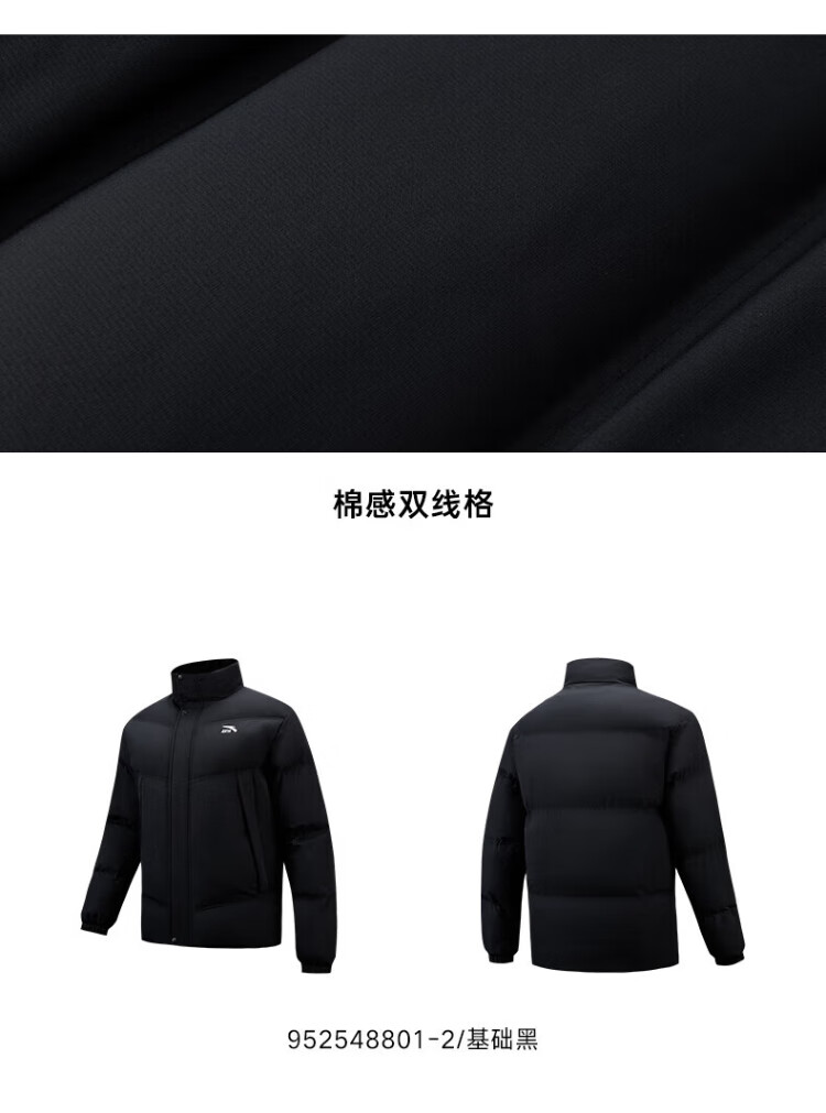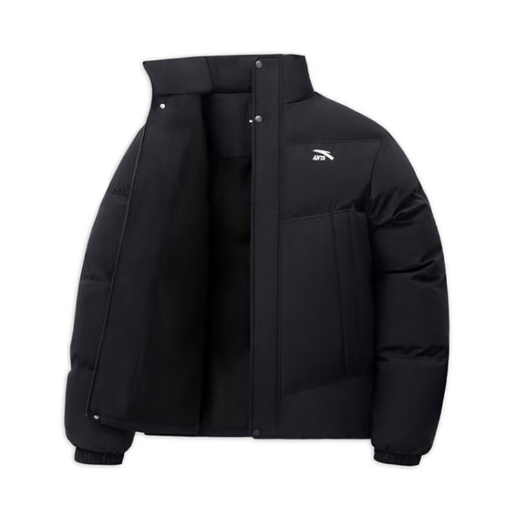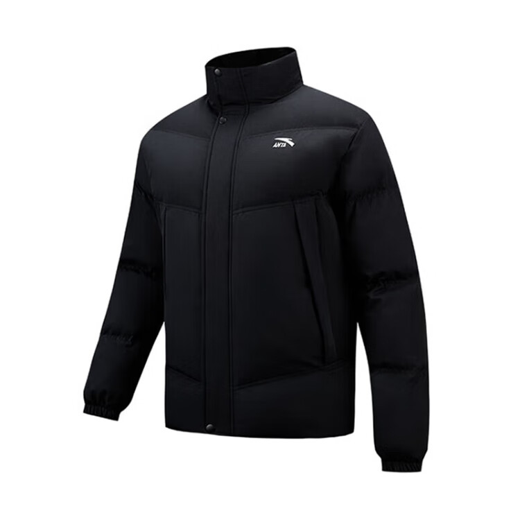 ANTA cotton-padded jacket for men 2025 winter new style stand-up collar windproof and warm thickened short black bread coat men's sports jacket men's windproof and warm cotton jacket basic black L /175
