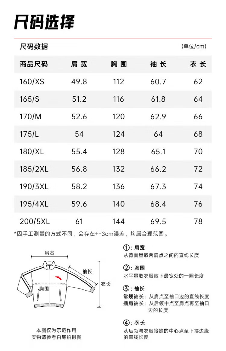 China (cm) 165 / 88-90 170 / 96-98 175 / 108-110 180 / 118-122 185 / 126-130