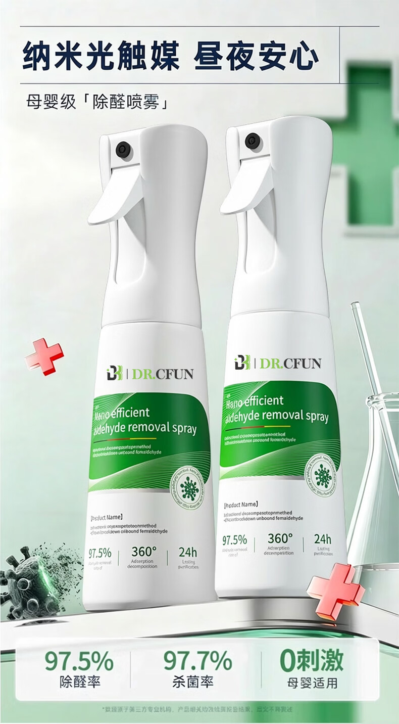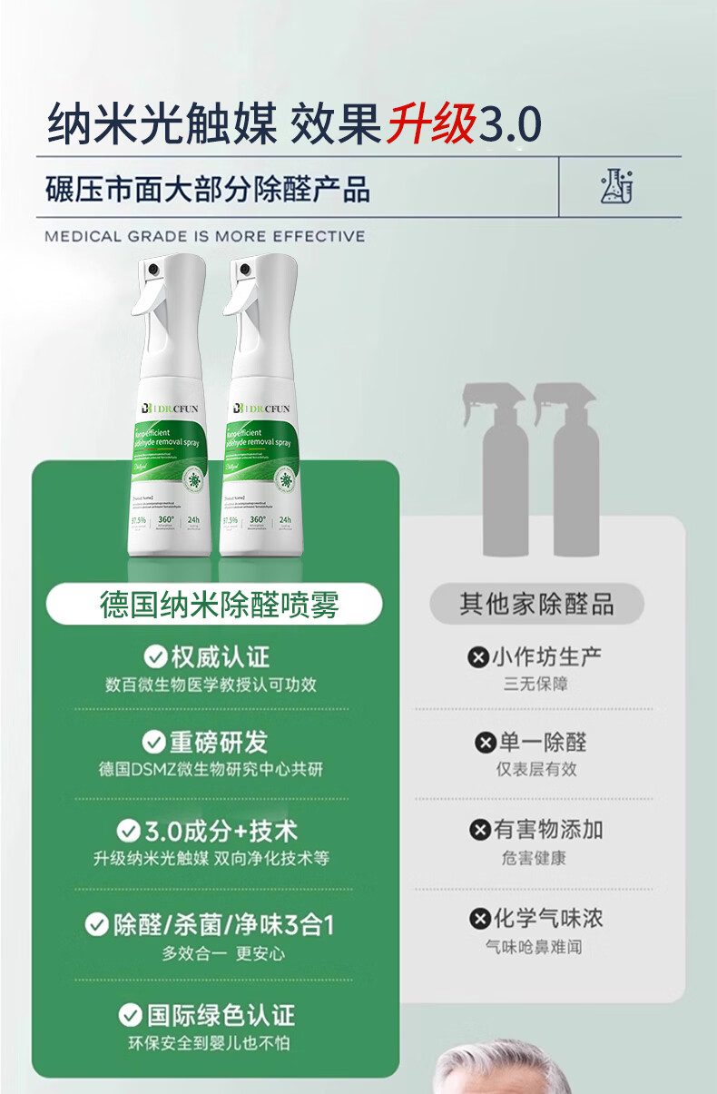 DR.CFUN photocatalyst spray formaldehyde removal artifact new house emergency move-in home car interior decoration removal odor scavenger carbon pack 1 bottle - formaldehyde removal 40丨Medical quality plant formula丨Free 1 test box