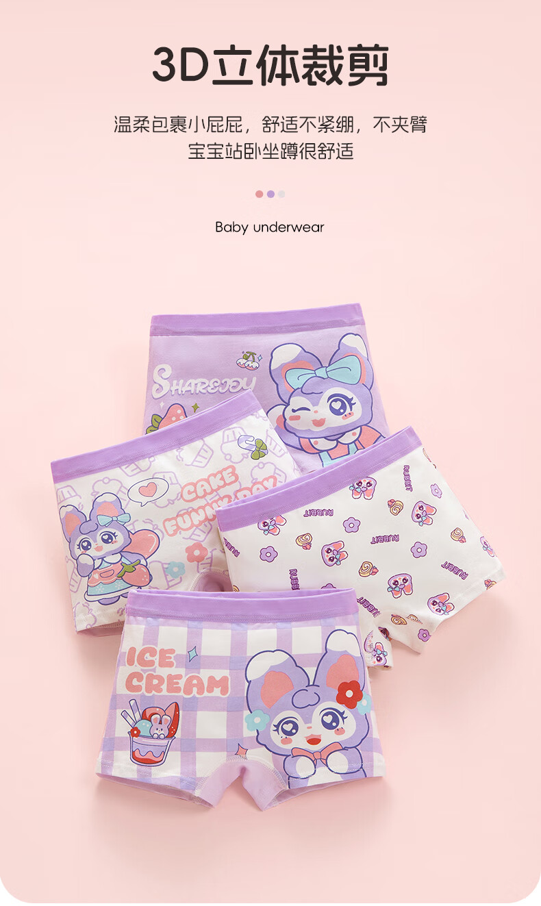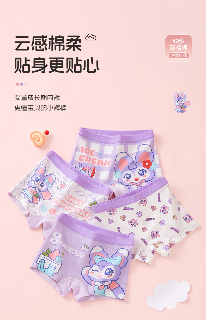 Children's Underwear Girls Pure Cotton 10A Antibacterial Baby Shorts Category A Cute Cartoon Girls Boxer Briefs Do Not Pin Buttocks Cute Bunny 1 Random Color 140 (2XL) Recommendation 55-6Jin Jin is equal to 0.5kg