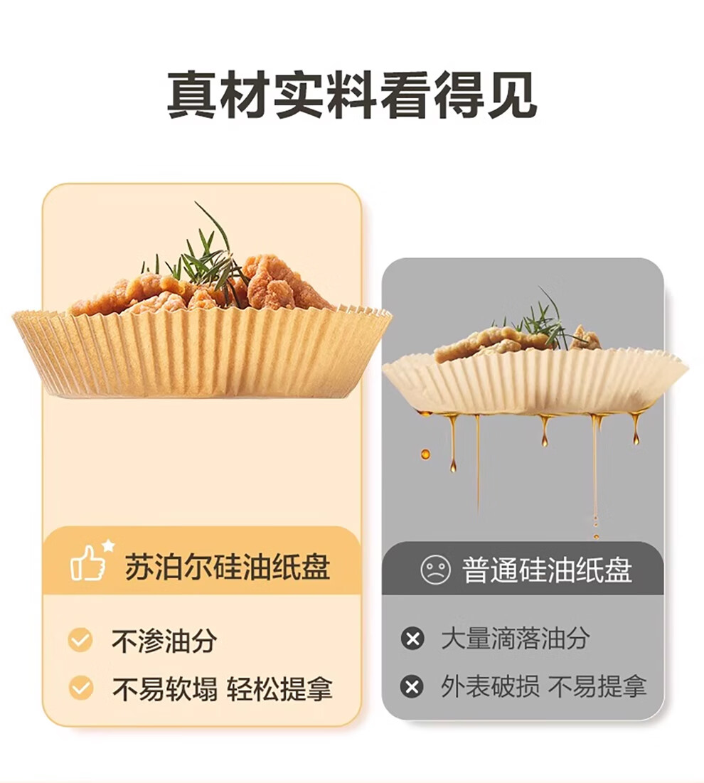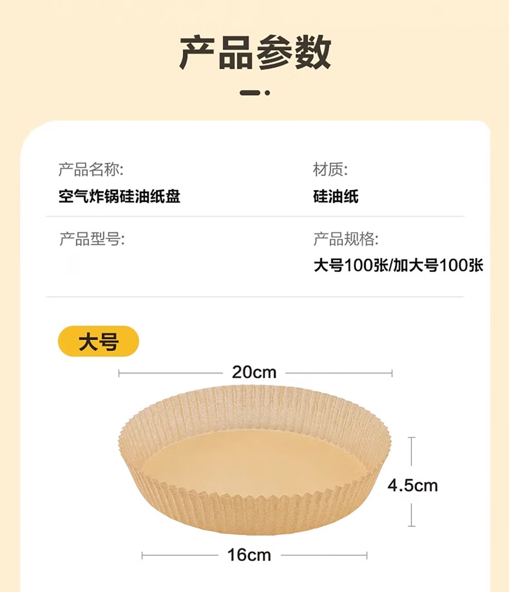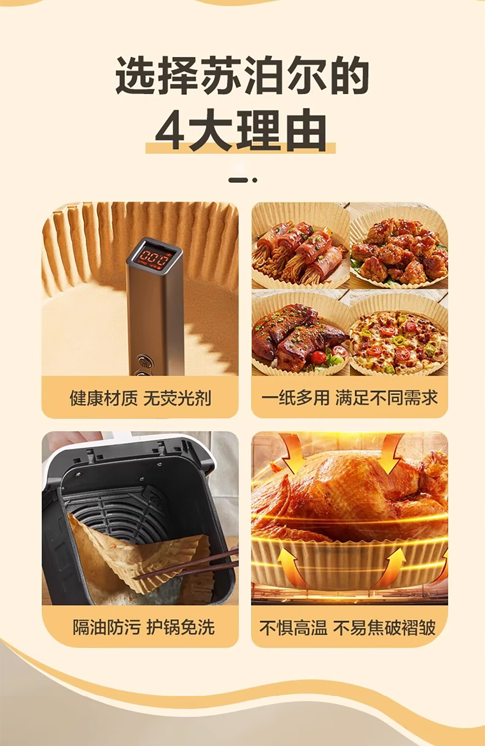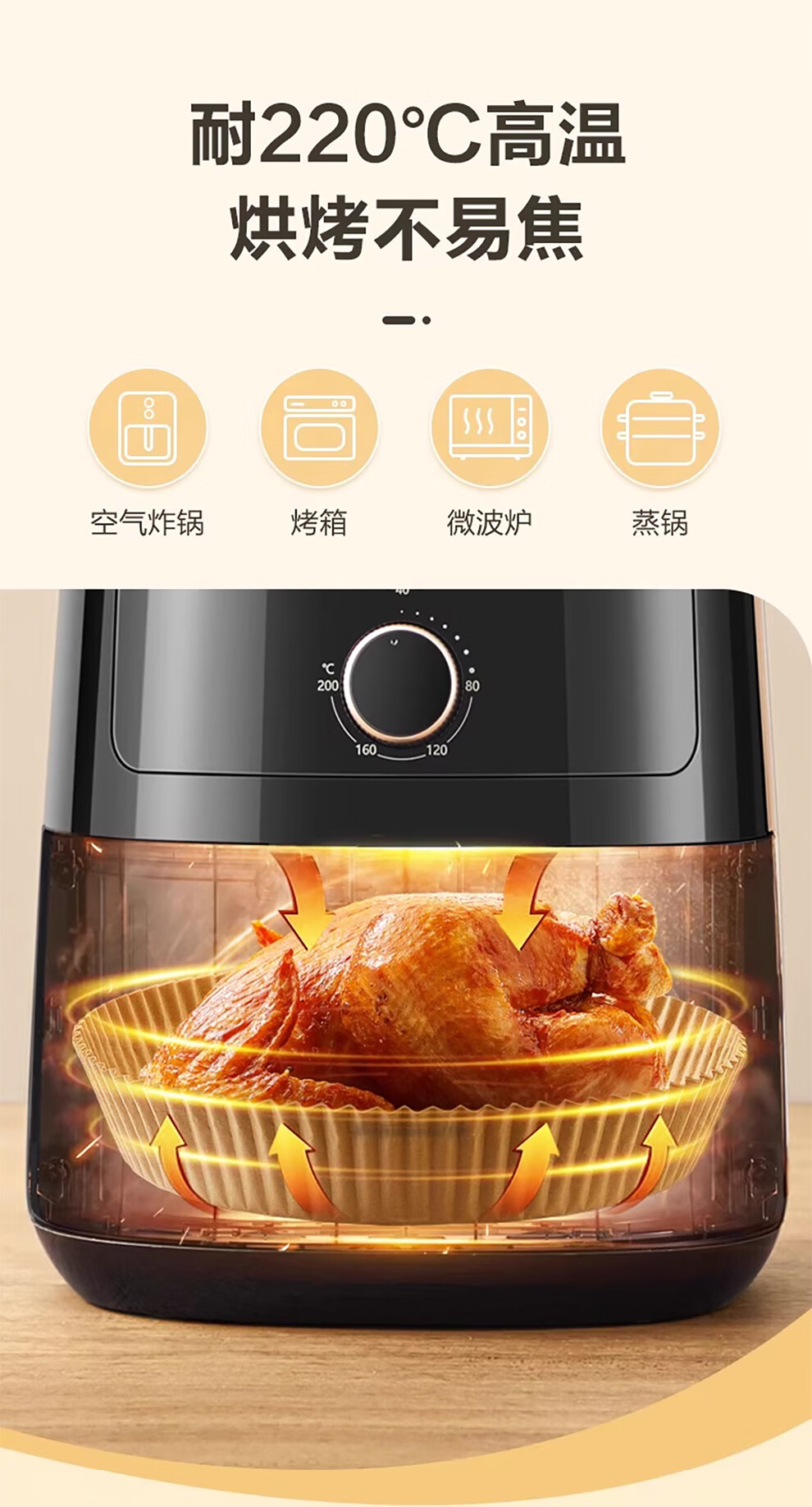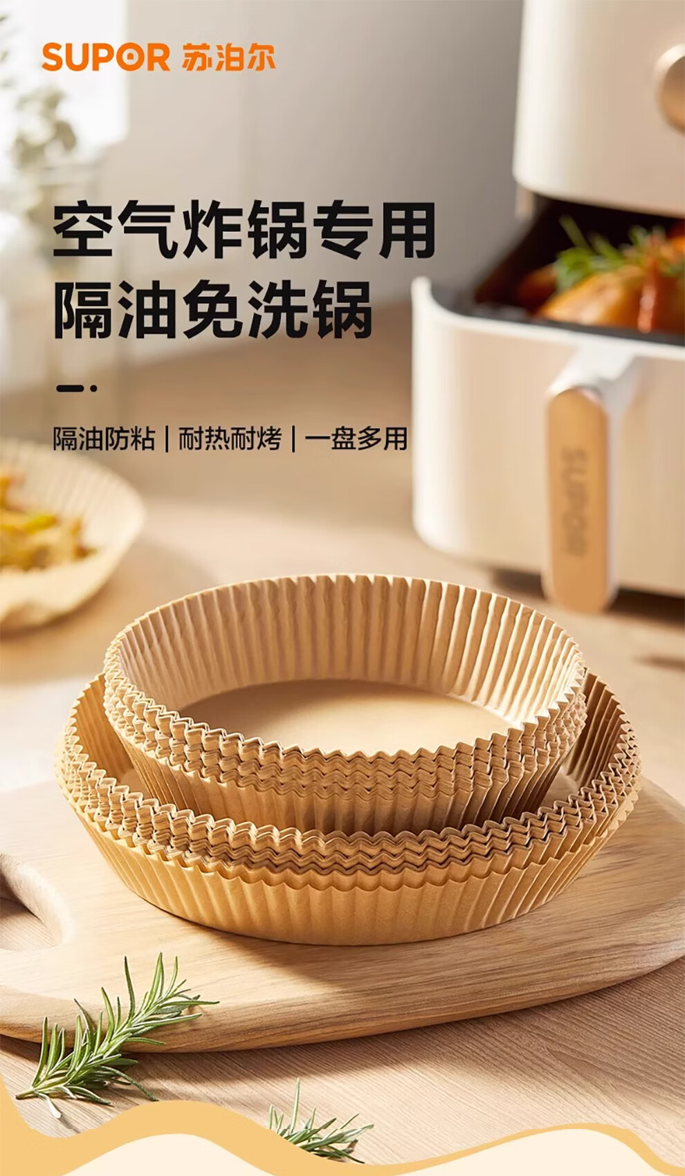 Supor air fryer oven silicone paper plate special baking food grade oil paper disposable baking paper large silicone paper plate 20cmx4.5cm-100 sheets