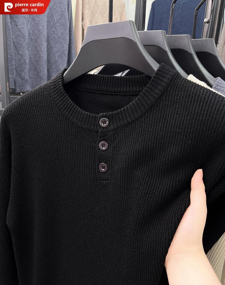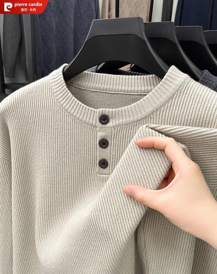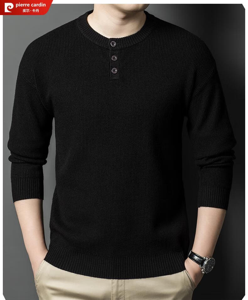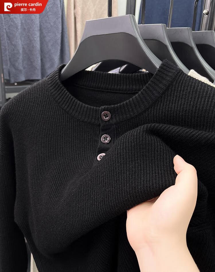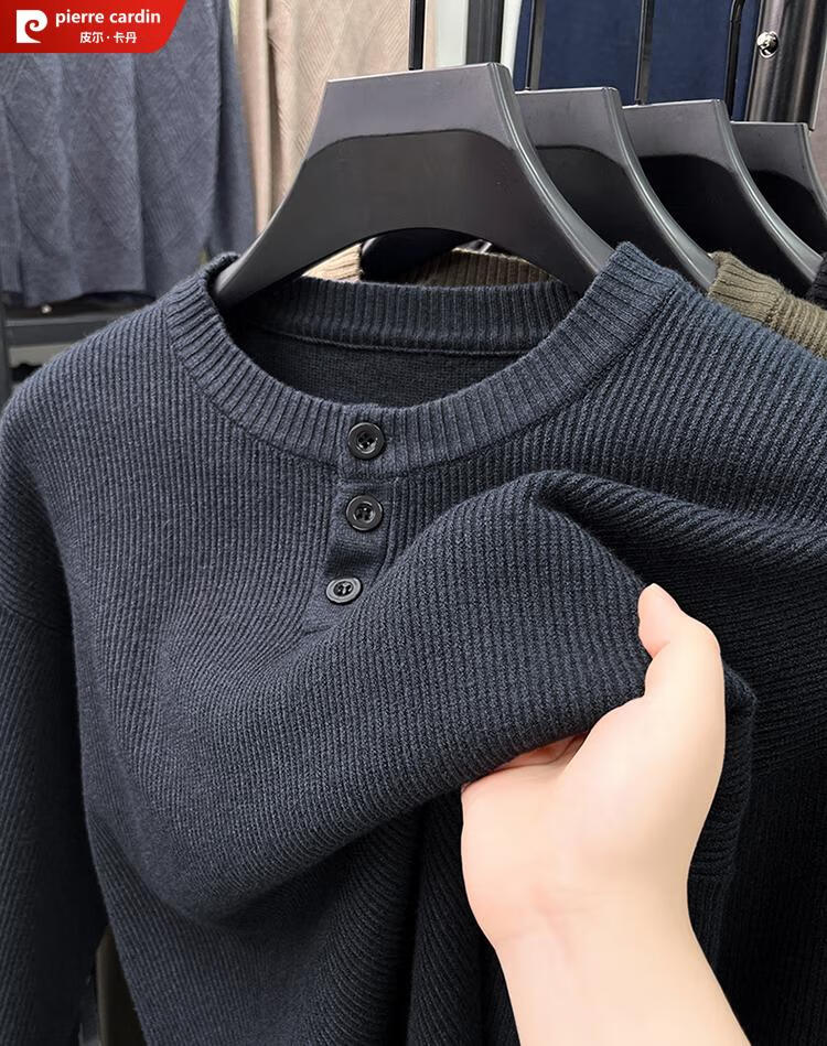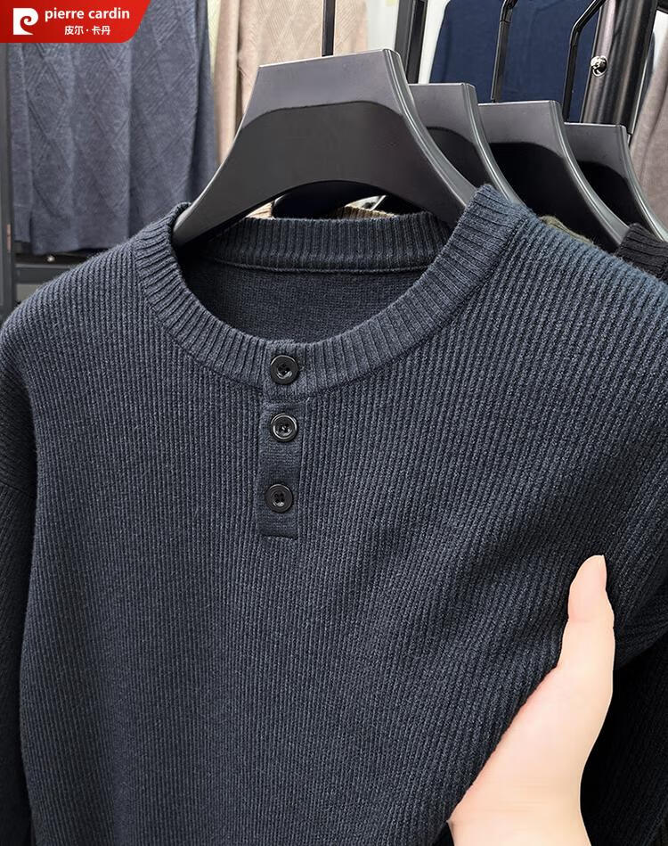 Pierre Cardin Henry Collar Sweater Men's 2025 New Autumn and Winter Dropped Shoulder Sleeves Knitted Bottoming Sweater High-Quality Middle-aged Wool Sweater Dark Gray 2XL