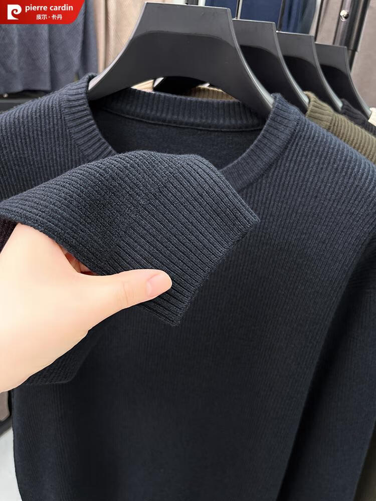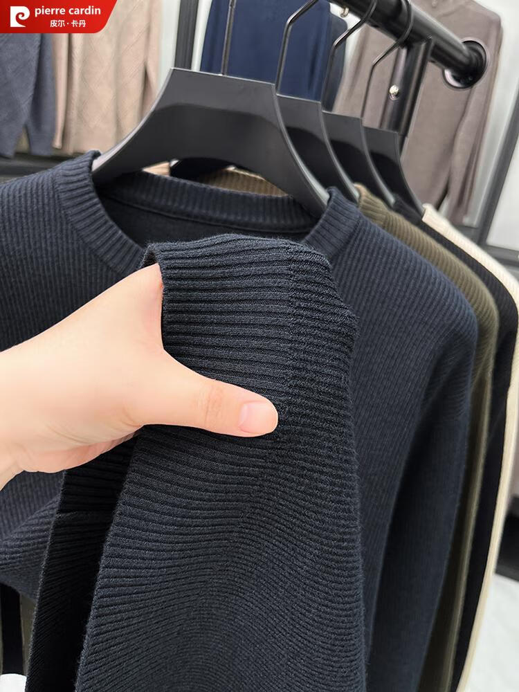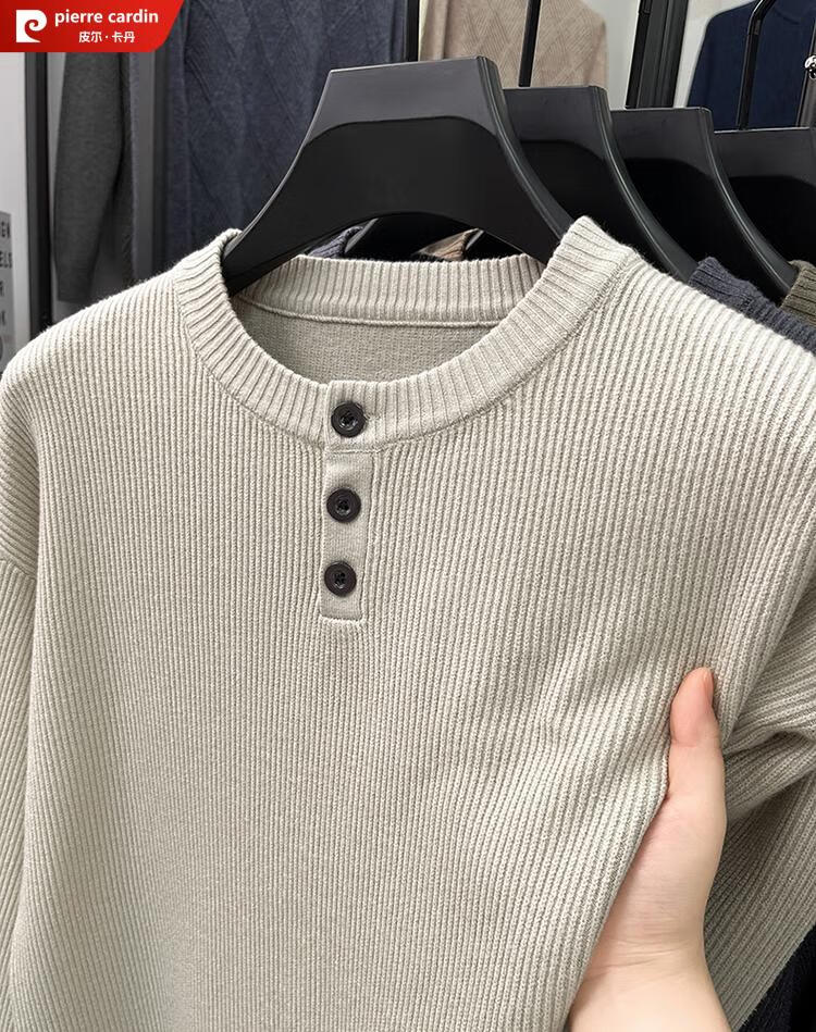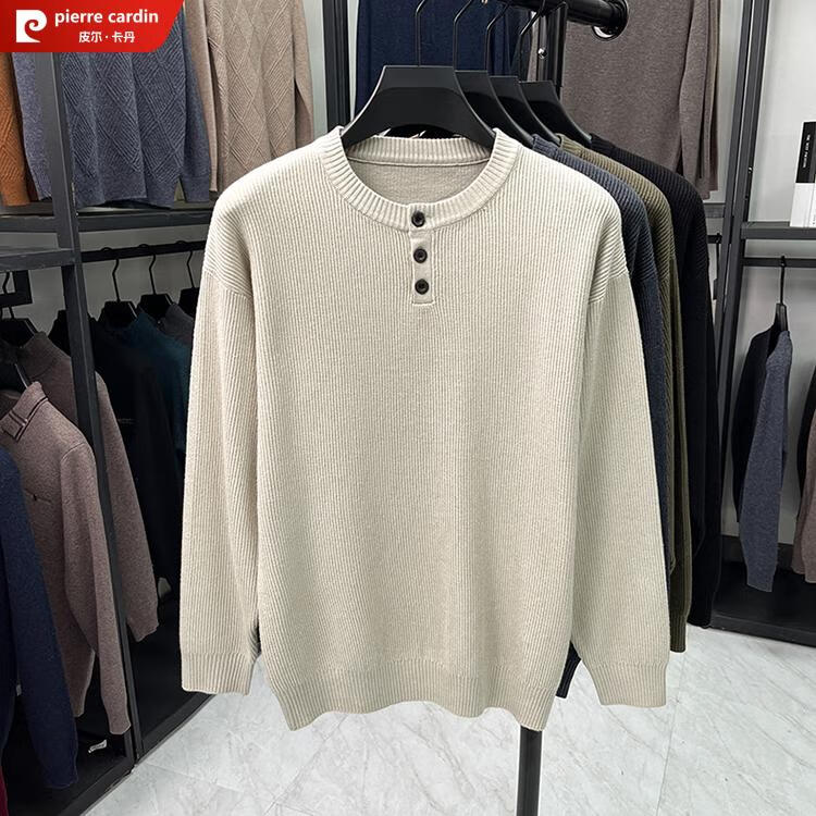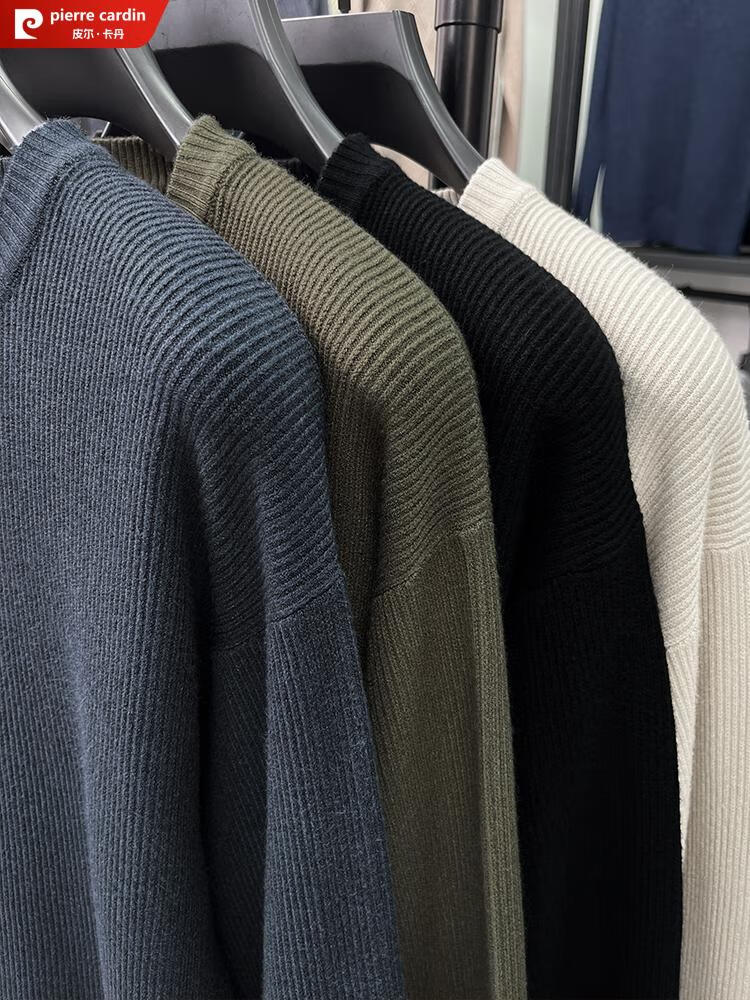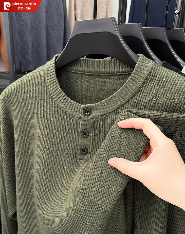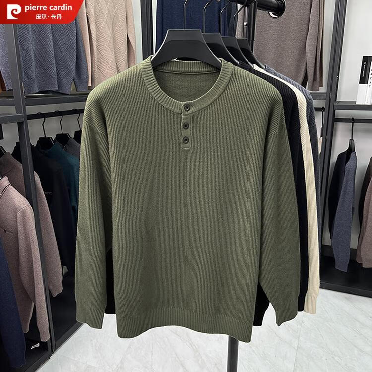 Pierre Cardin Henry Collar Sweater Men's 2025 New Autumn and Winter Dropped Shoulder Sleeves Knitted Bottoming Sweater High-Quality Middle-aged Wool Sweater Dark Gray 2XL