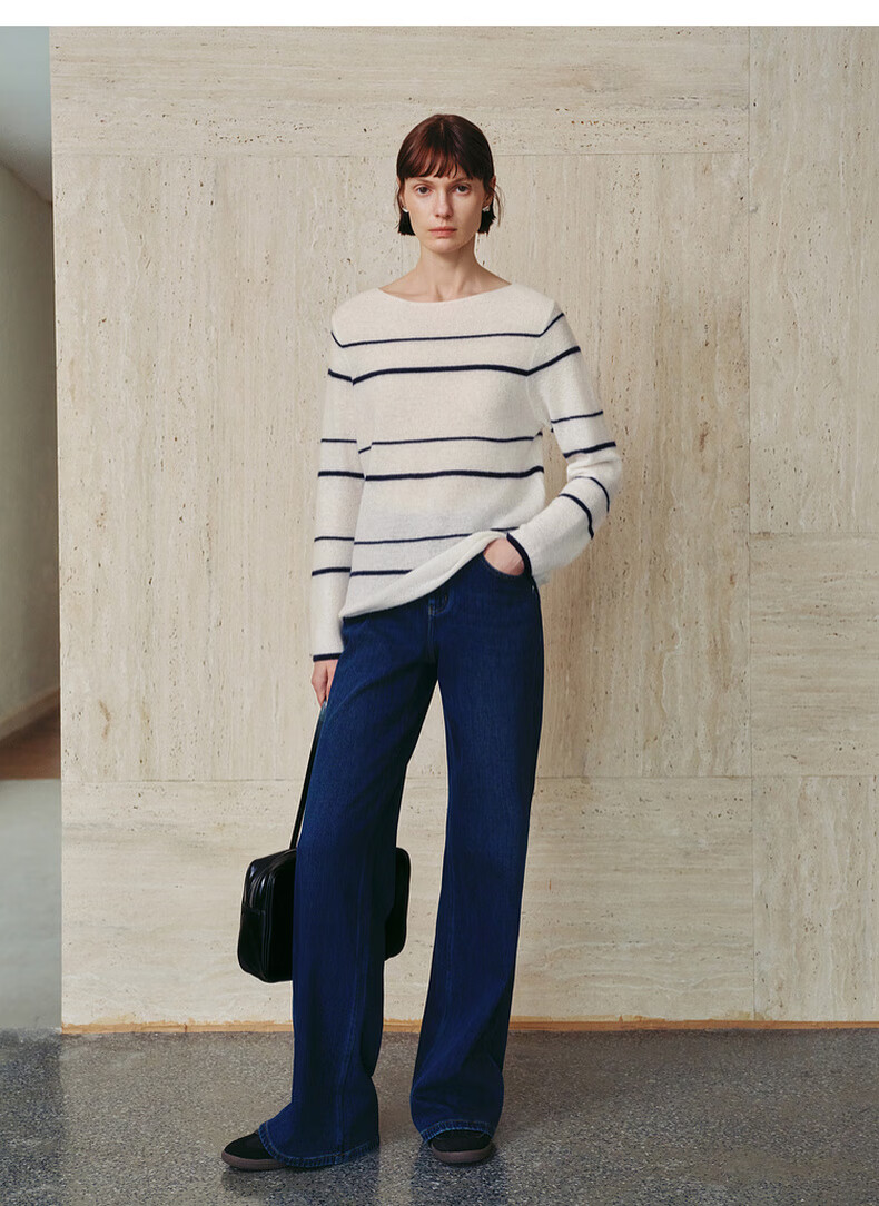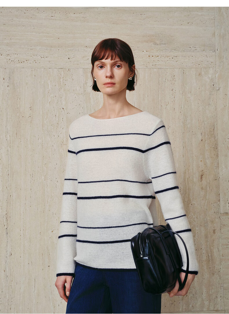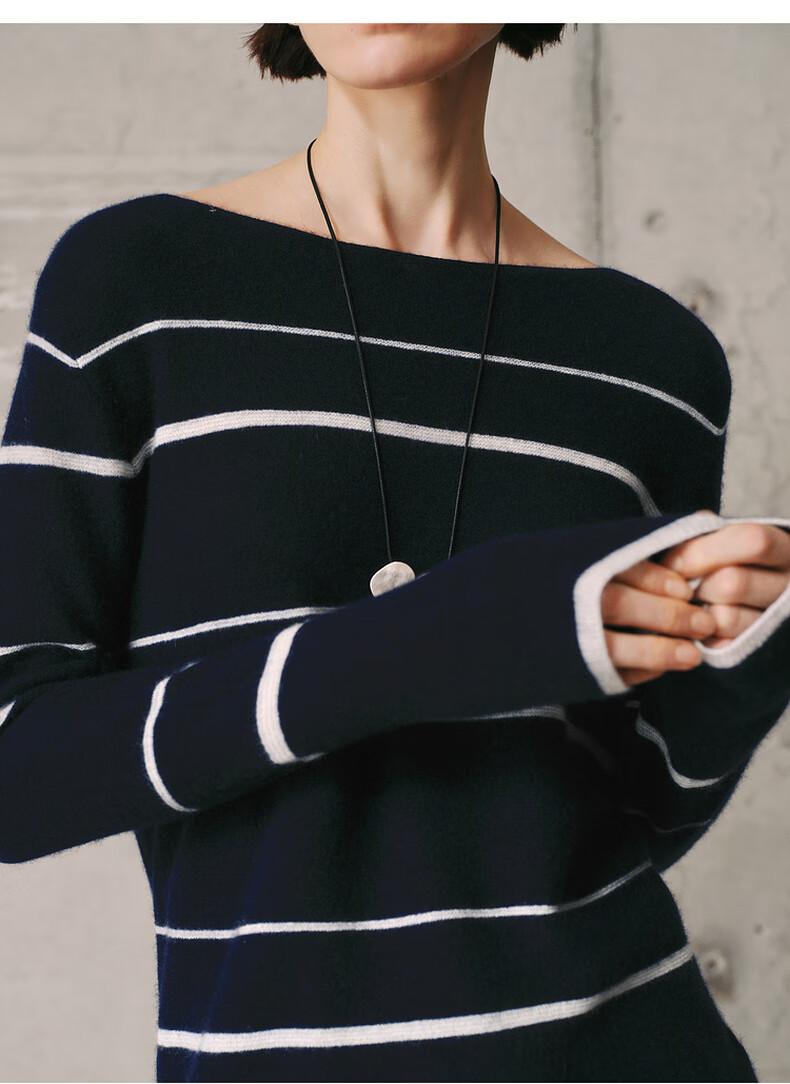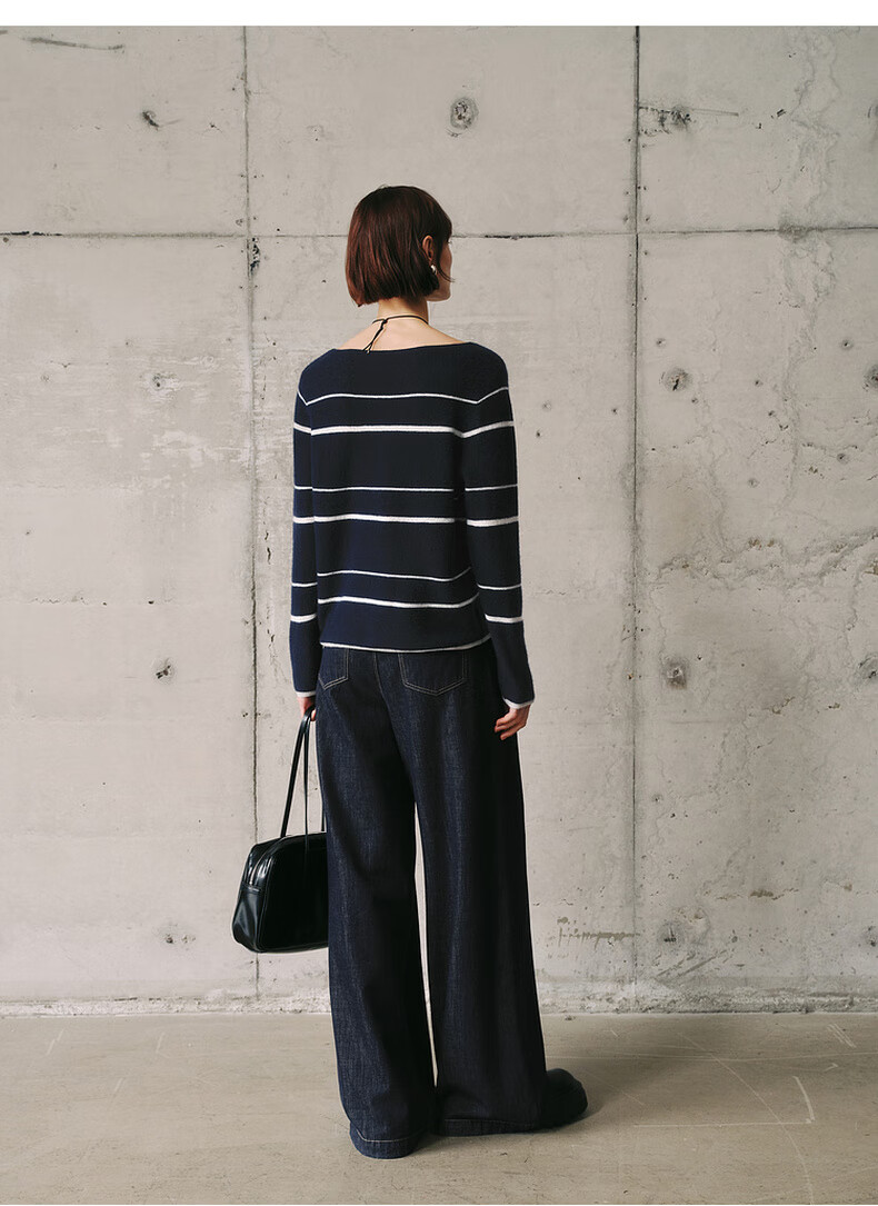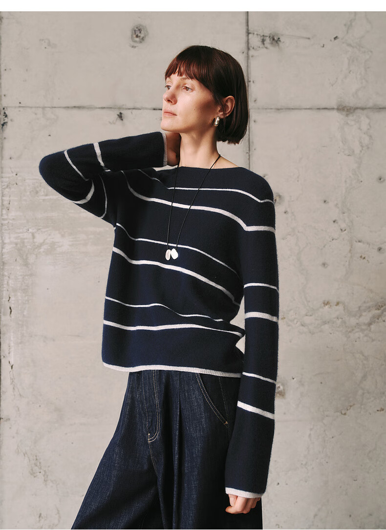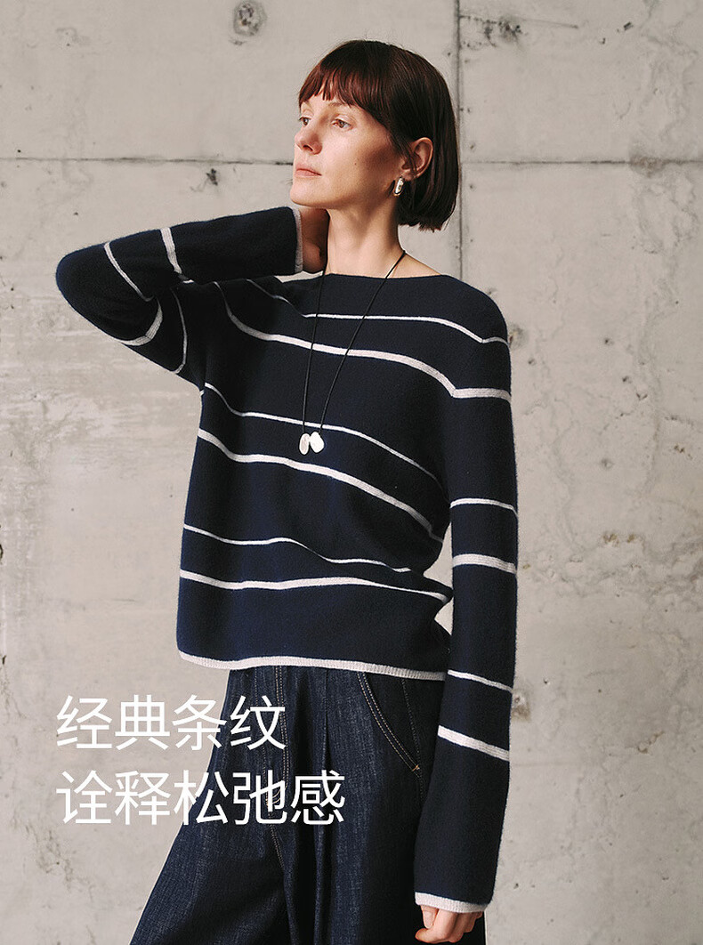 Mai Meng MM silk cashmere striped lazy casual sweater sweater top autumn and winter 5GA934761 Navy blue 5GA934762 M