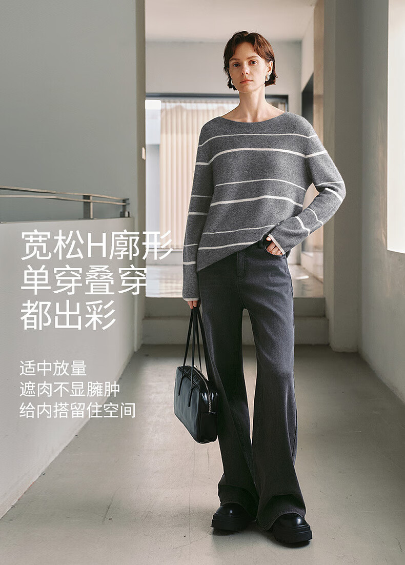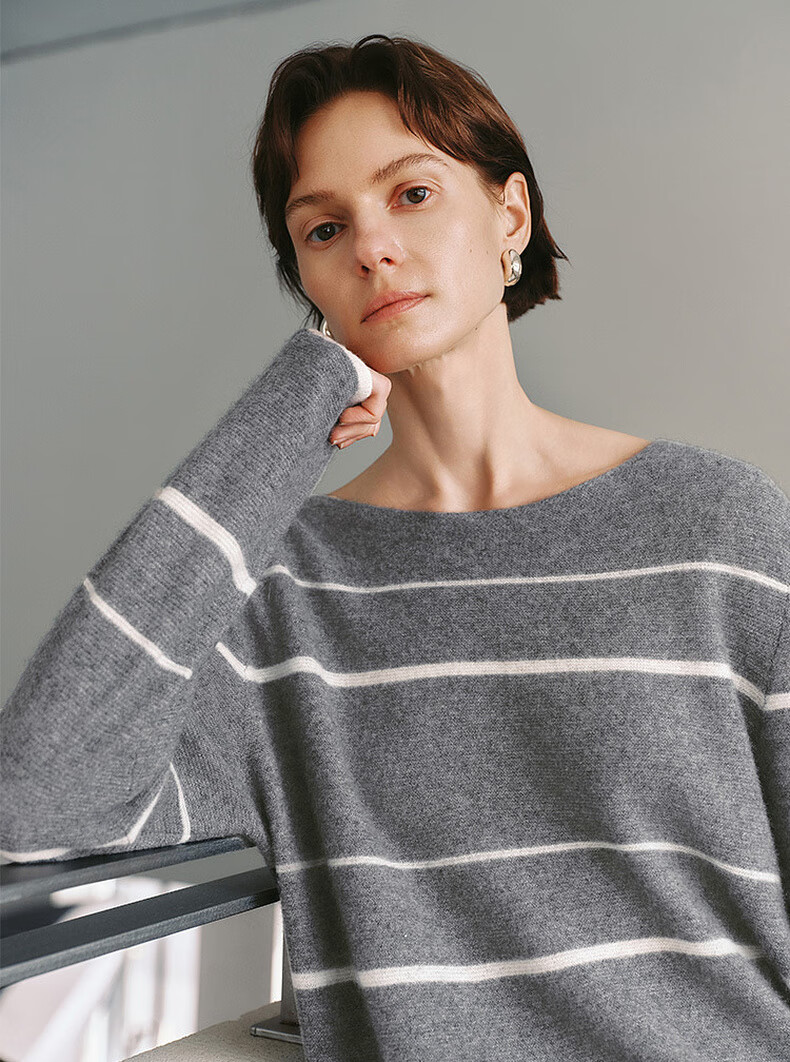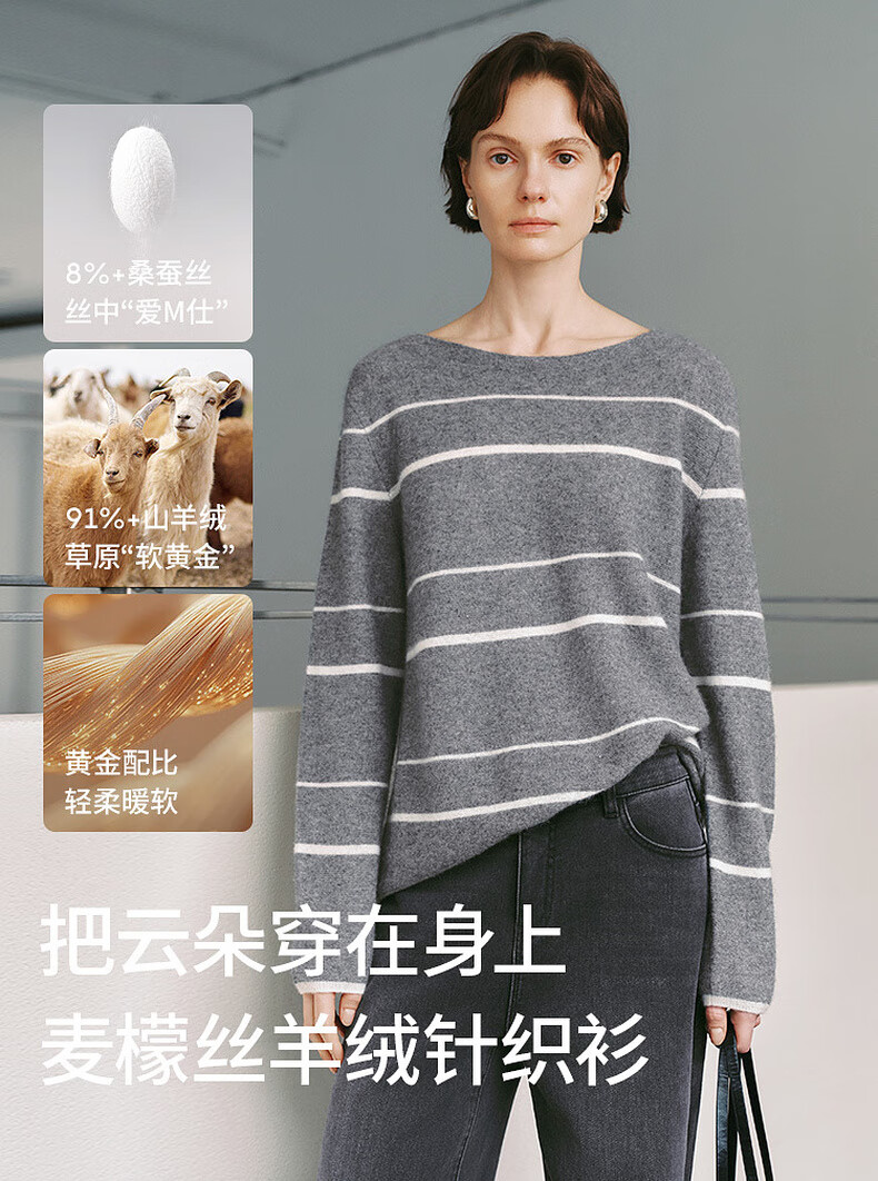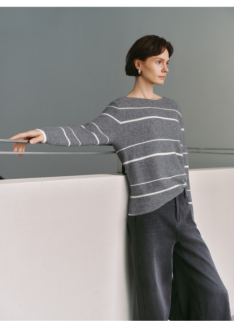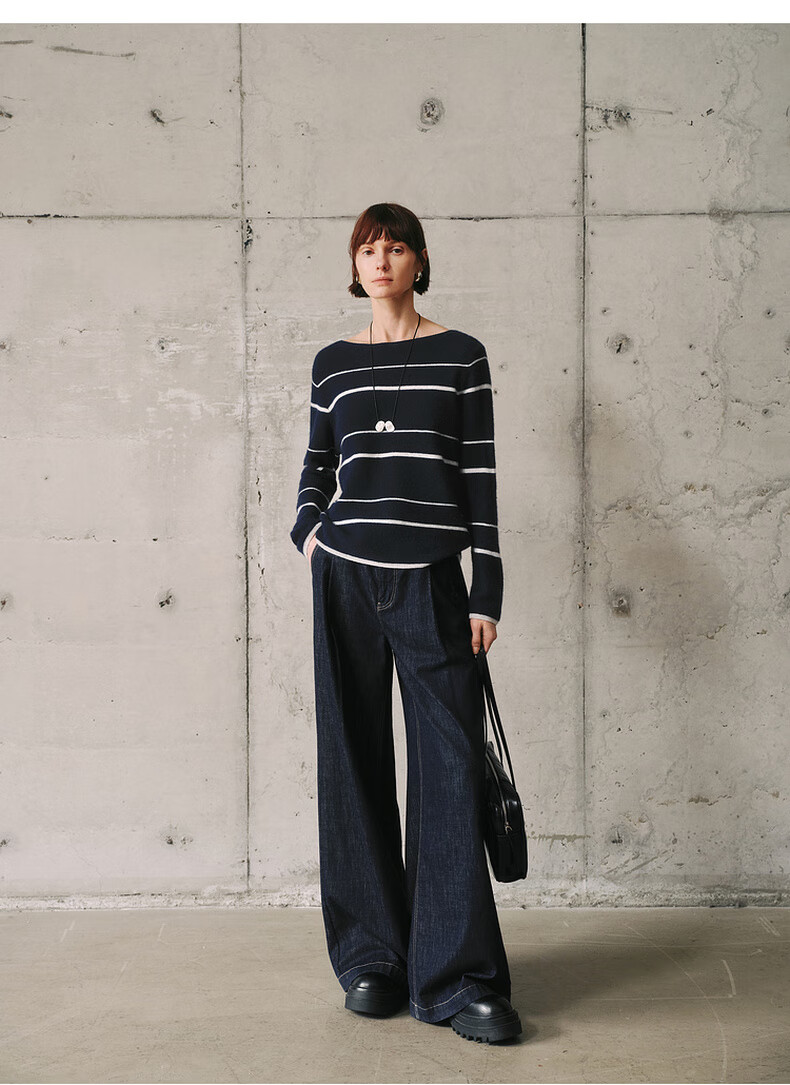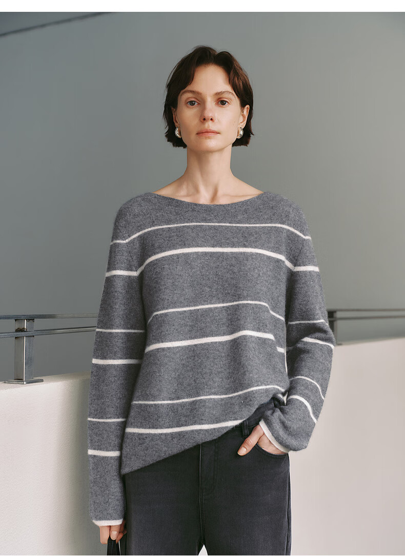 Mai Meng MM silk cashmere striped lazy casual sweater sweater top autumn and winter 5GA934761 Navy blue 5GA934762 M
