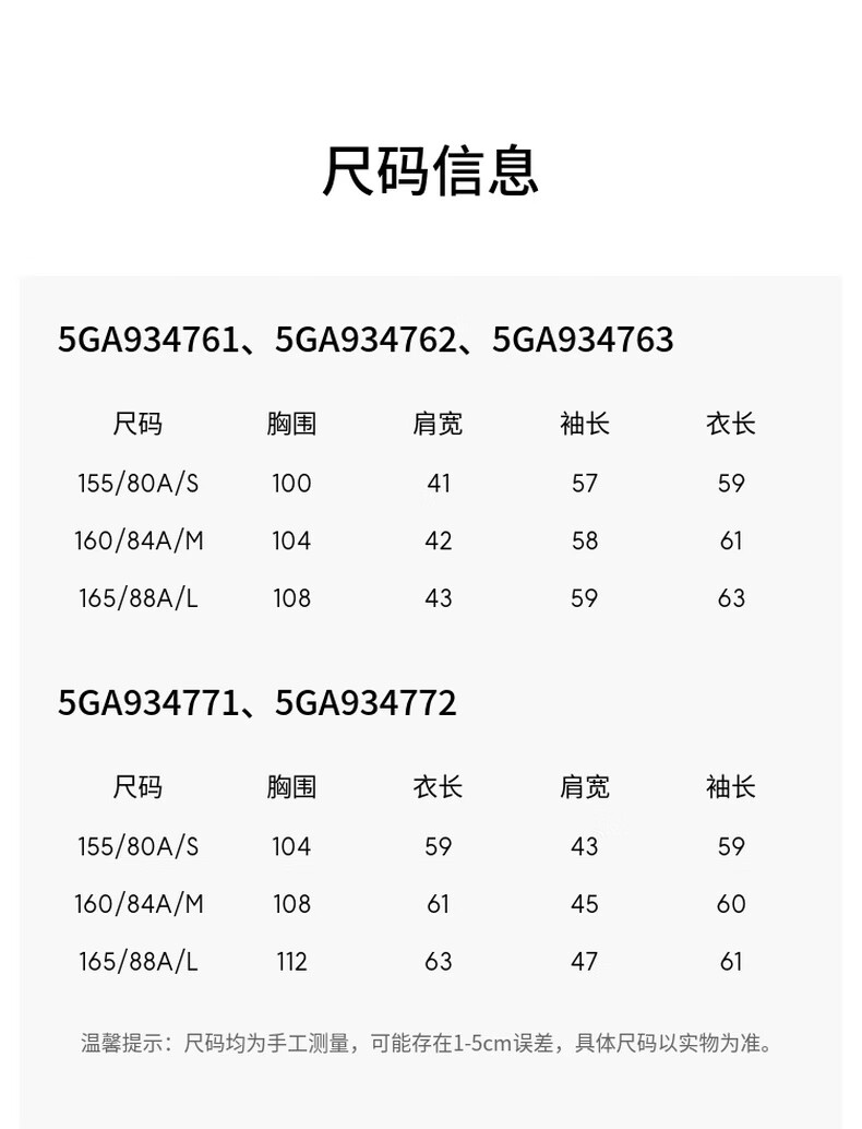 China (cm) 160-165/84-86 165-170 / 88-90 167-172 / 92-96 168-173 / 98-102 170-176 / 106-110
