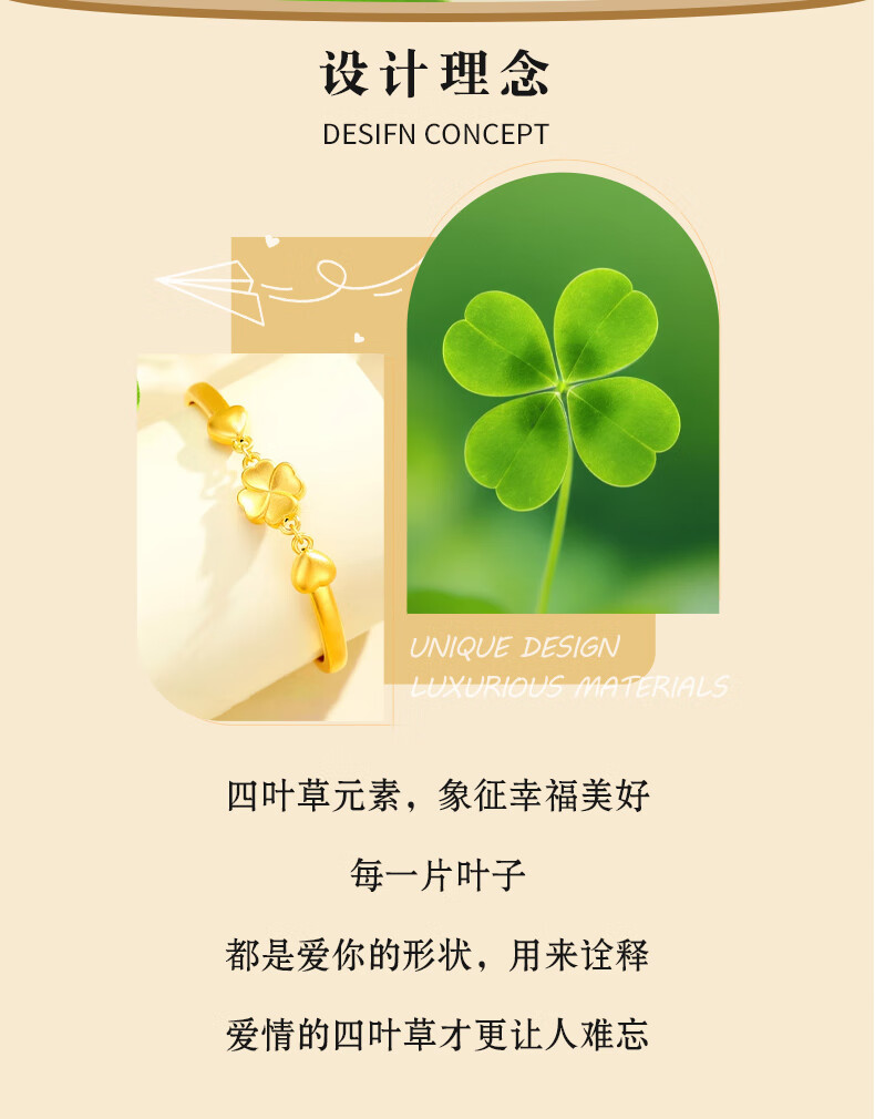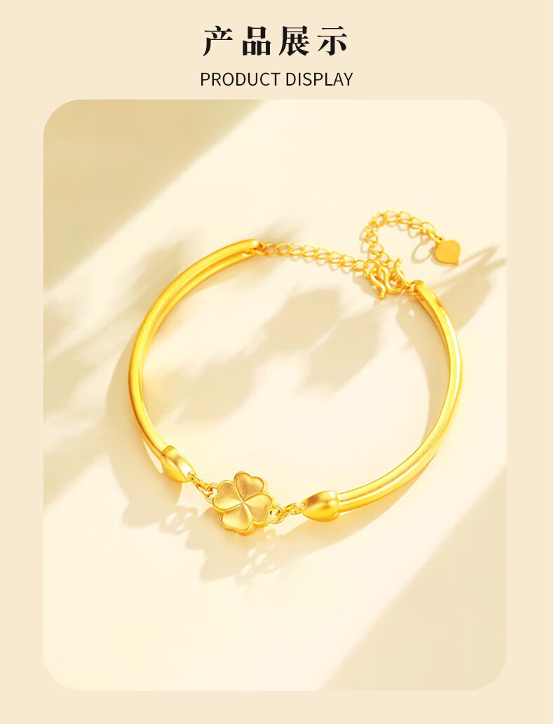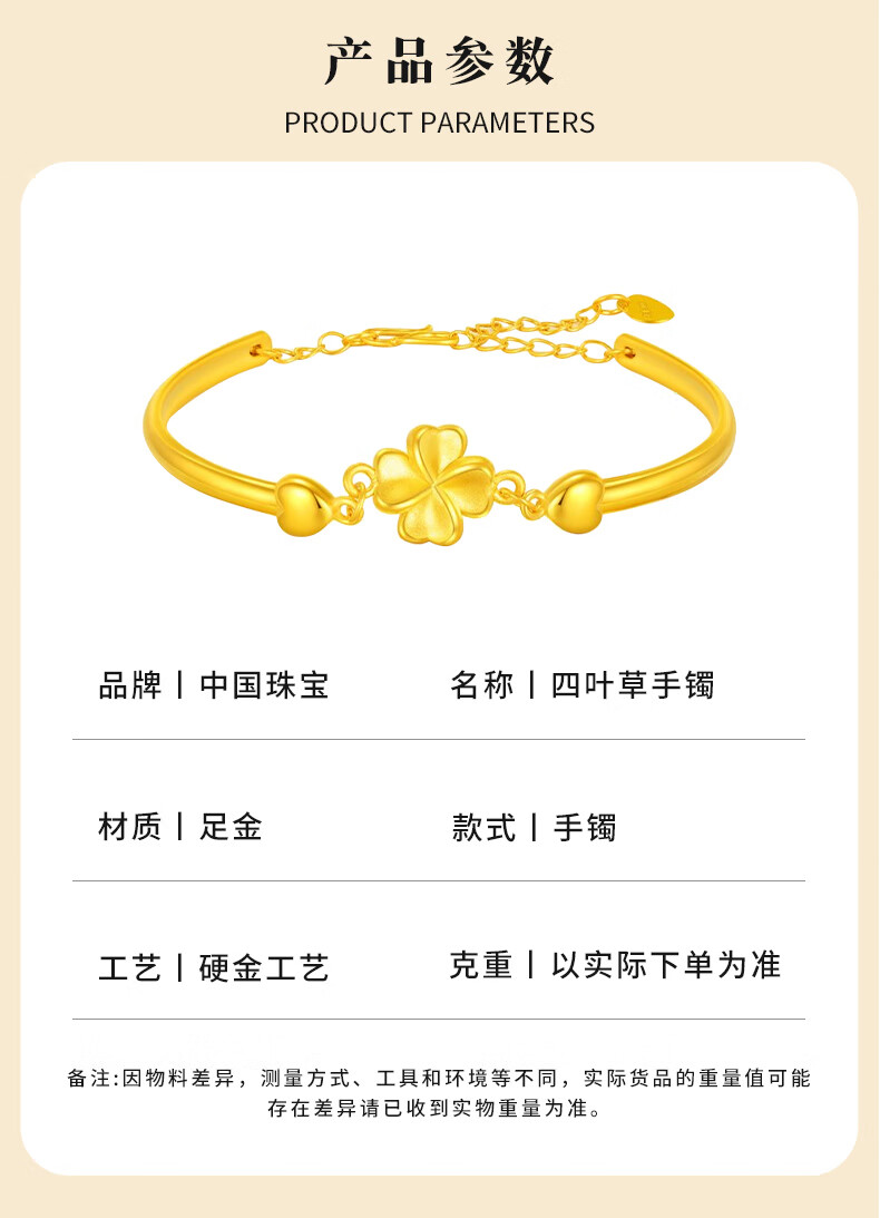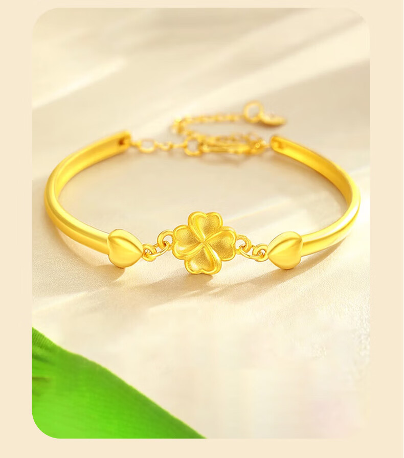 Chinese jewelry four-leaf clover gold bracelet for women, ancient method, pure gold half bracelet, birthday gift for girlfriend and wife, pure gold four-leaf clover bracelet + brand gift box, gold weight about 4.6g