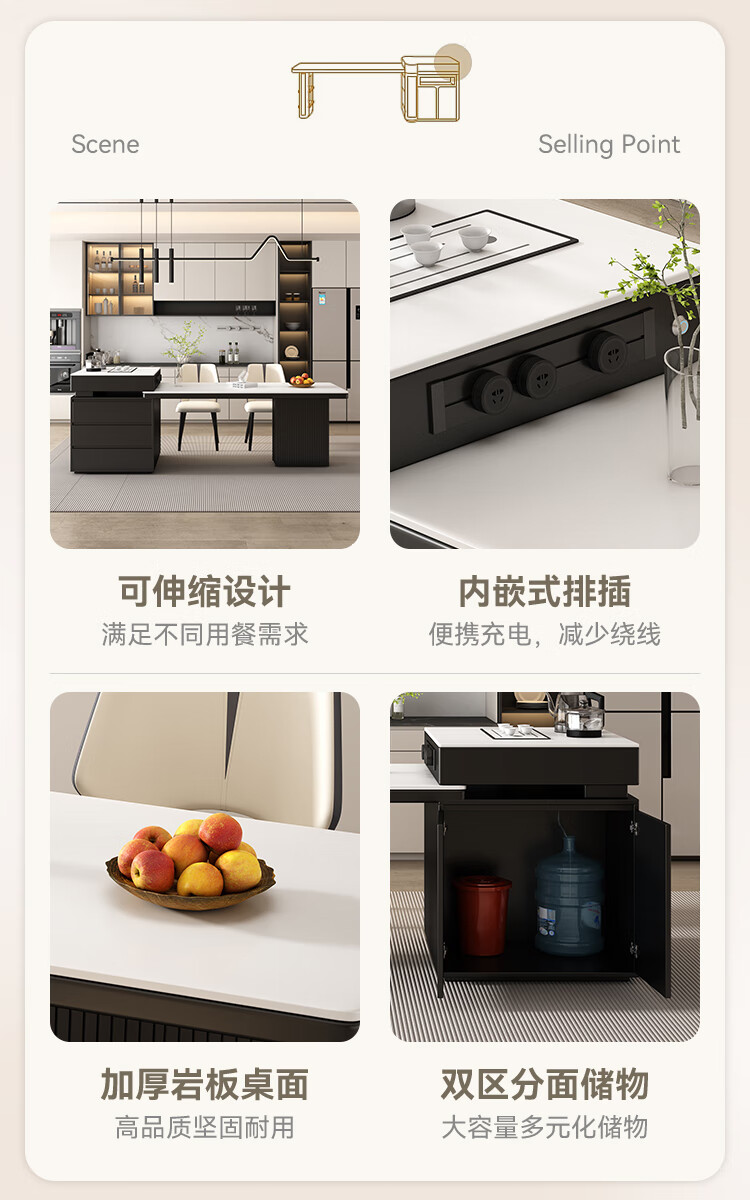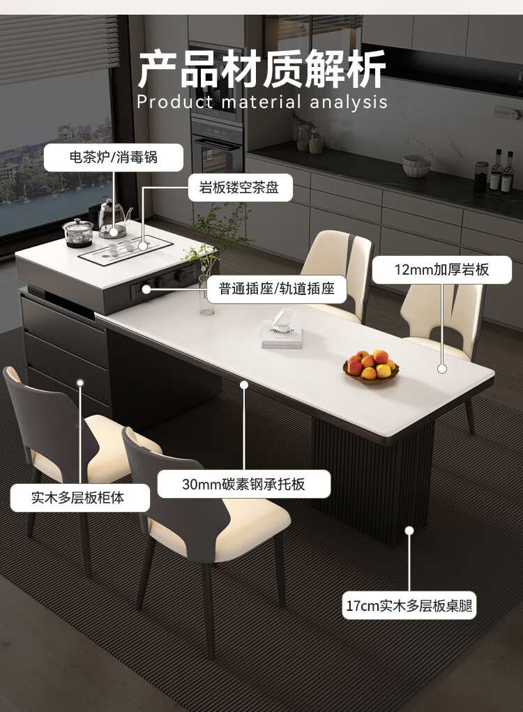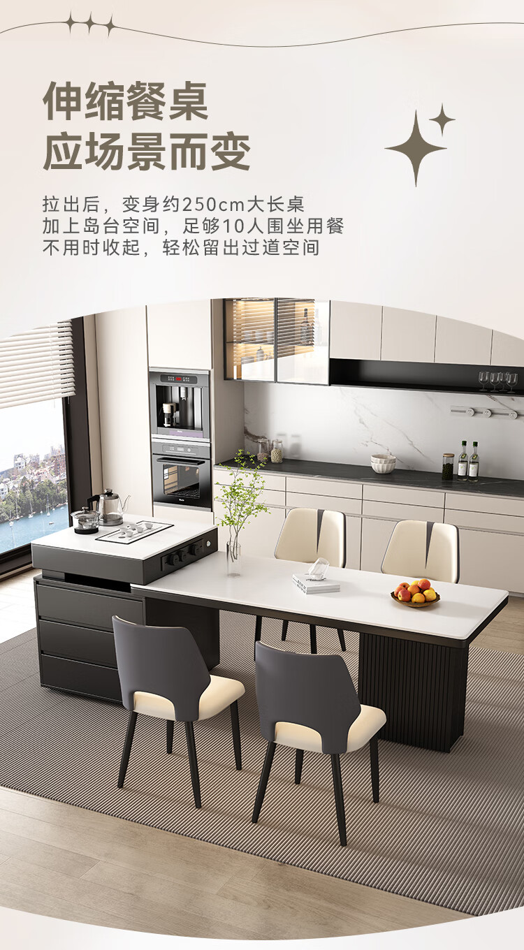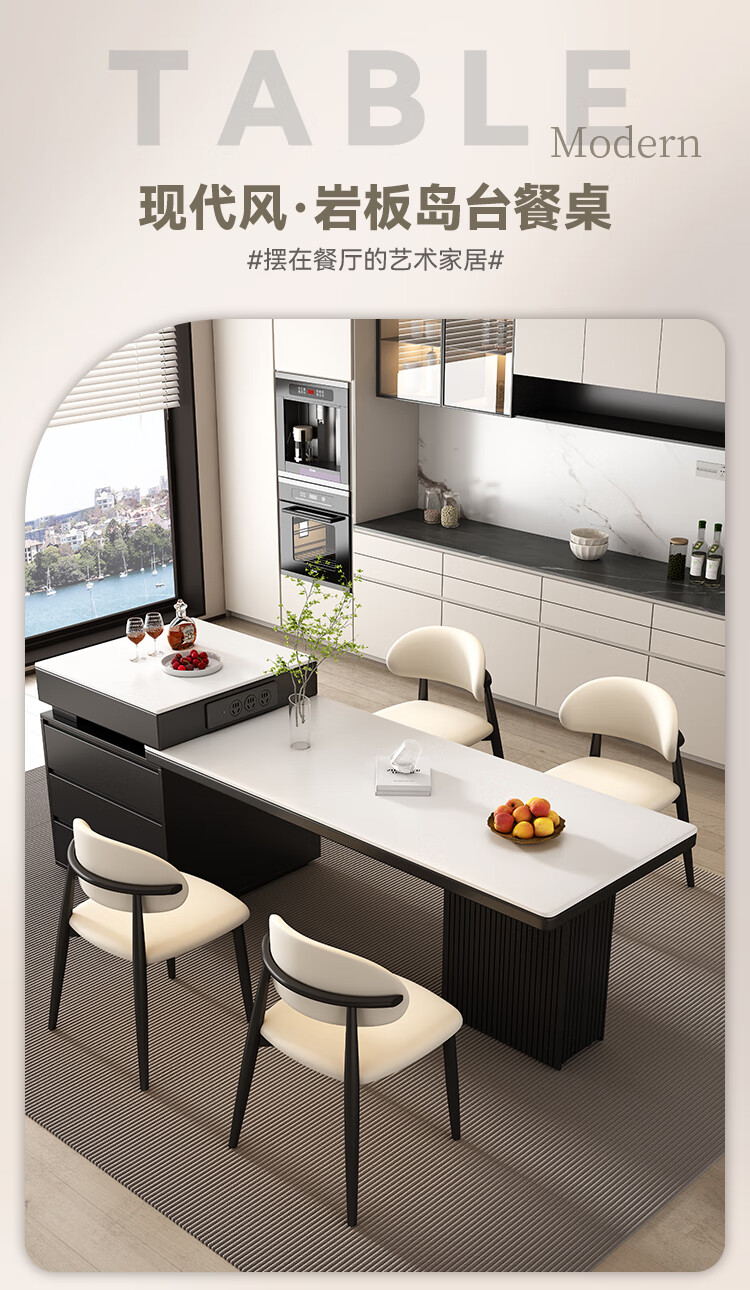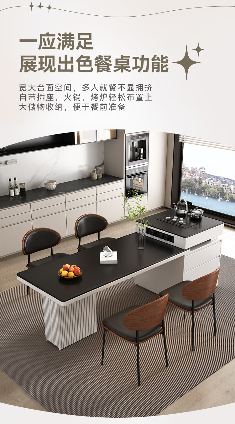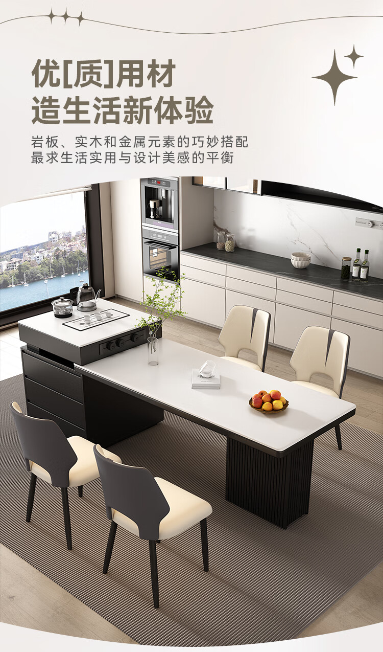 Quanyou (QUANU) 2025 new slate island dining table integrated home retractable 2025 new light luxury multifunctional solid wood rice cooker electric tea stove + tea tray island dining table + 4 hundred bird chairs orbital socket 75cm 200x80x