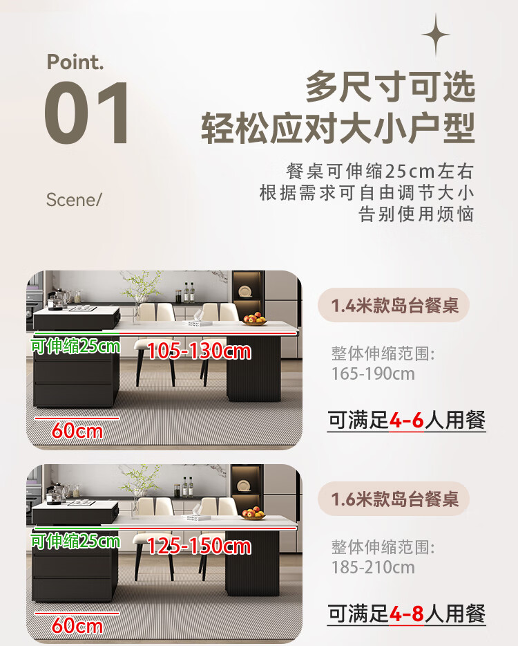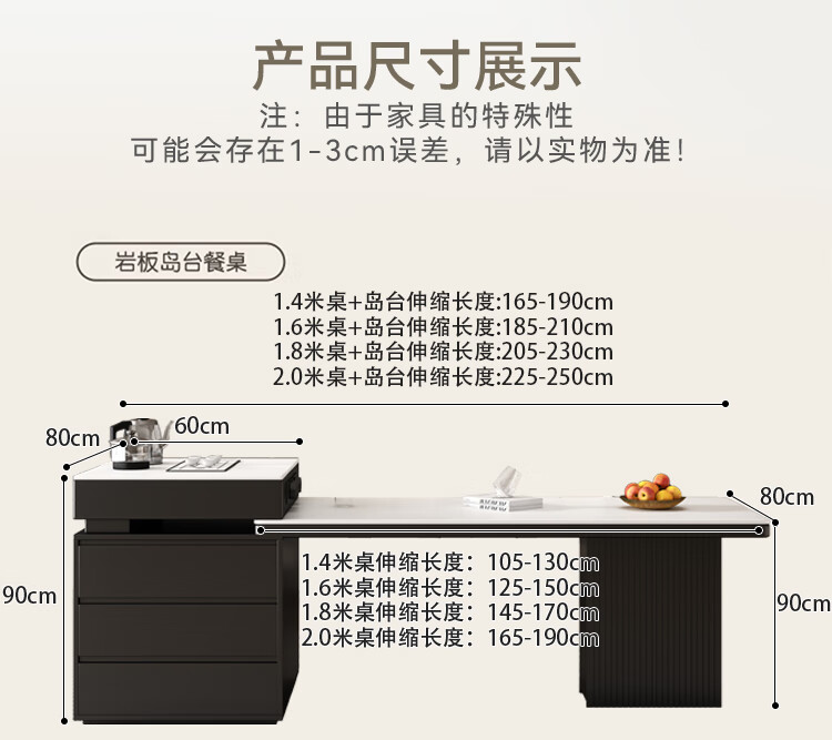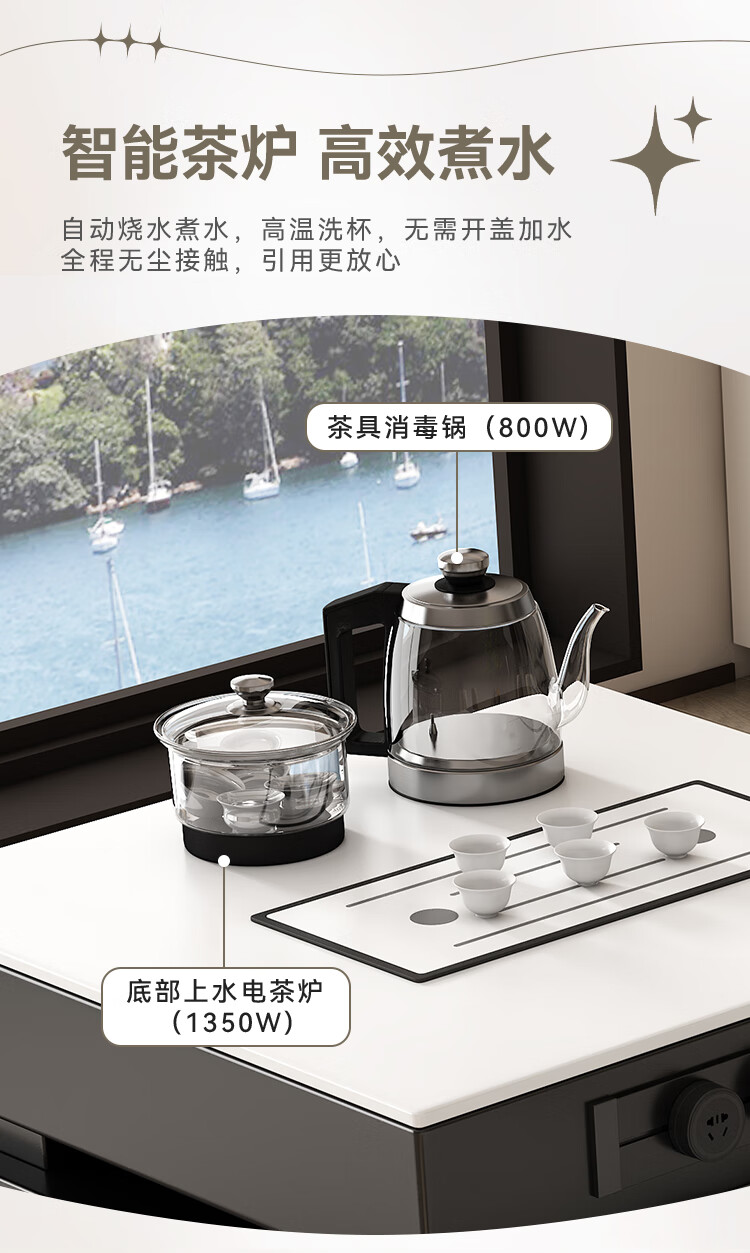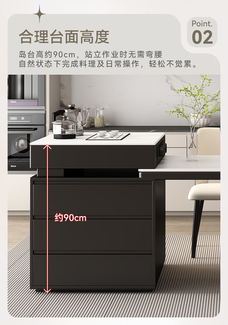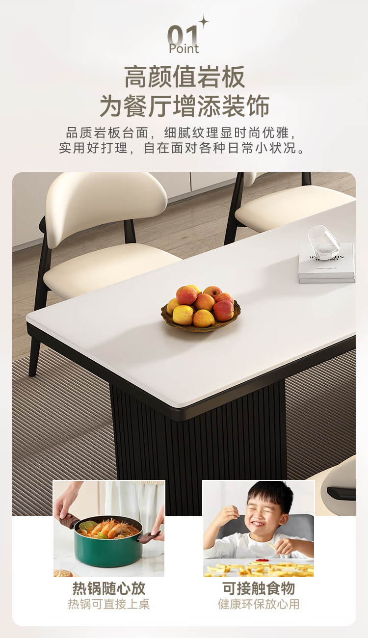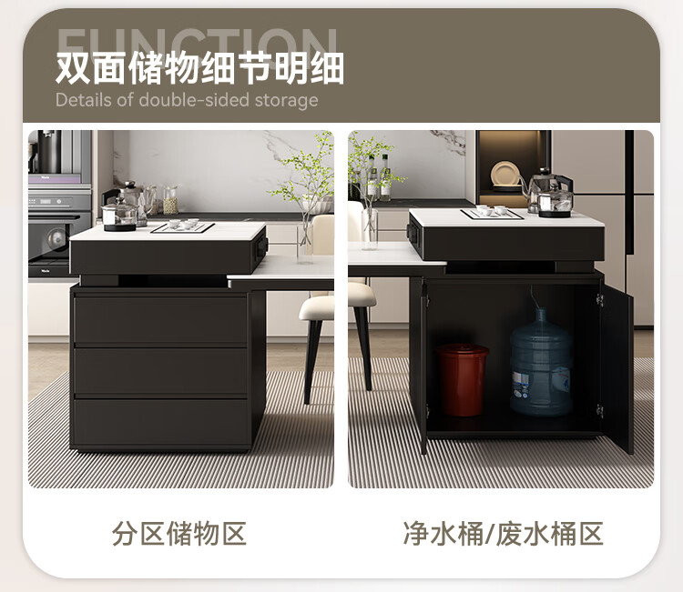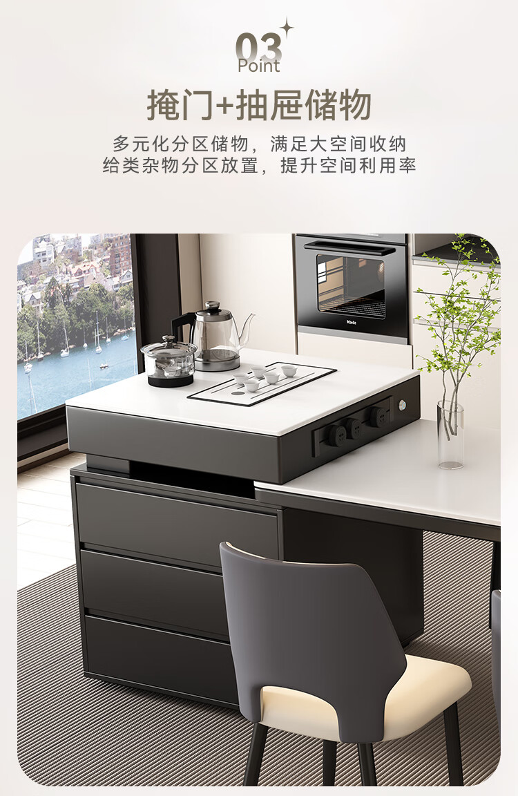 Quanyou (QUANU) 2025 new slate island dining table integrated home retractable 2025 new light luxury multifunctional solid wood rice cooker electric tea stove + tea tray island dining table + 4 hundred bird chairs orbital socket 75cm 200x80x