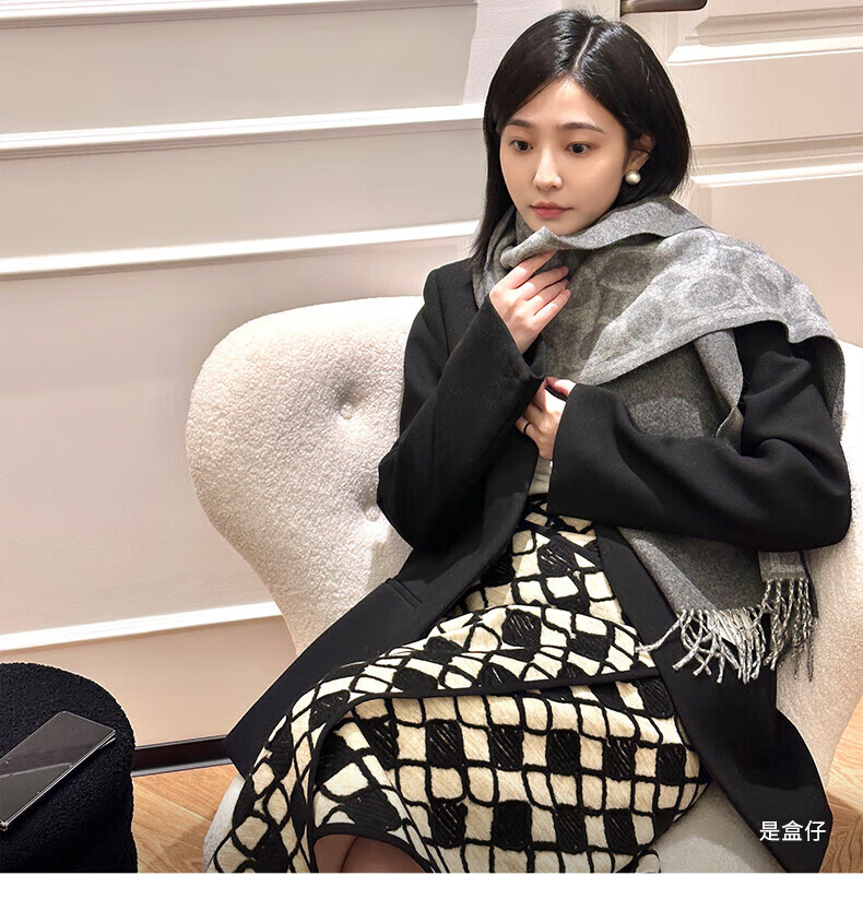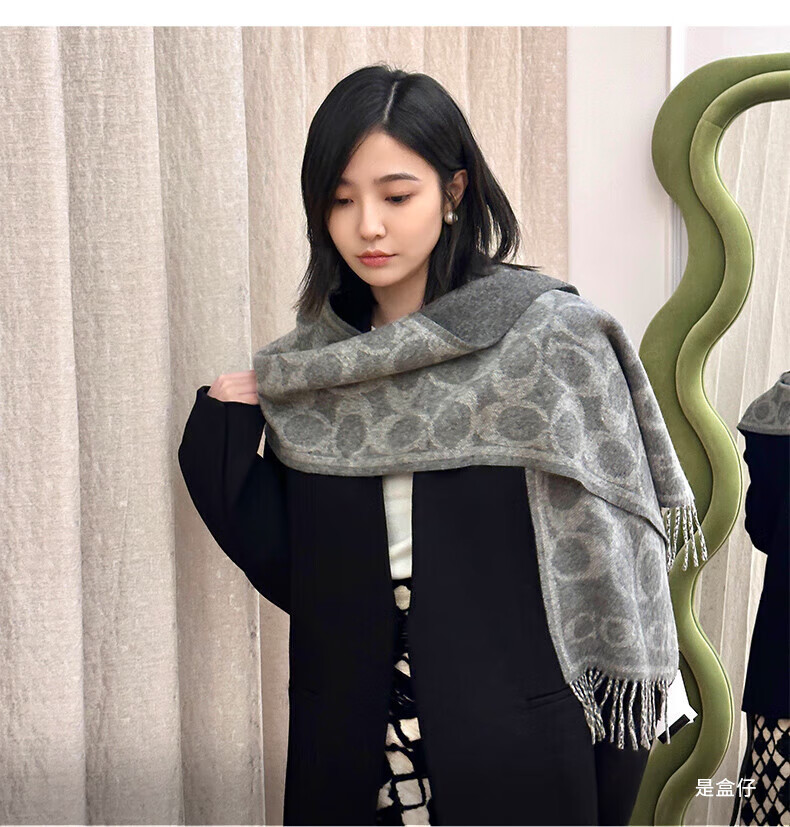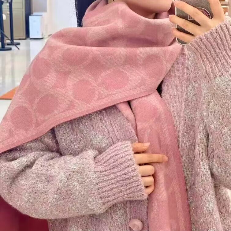 COACH Double-sided Classic Logo Scarf Brand Logo Cashmere Warm Scarf Couple New Year Gift Merlot CB692-MER 183*30.5cm