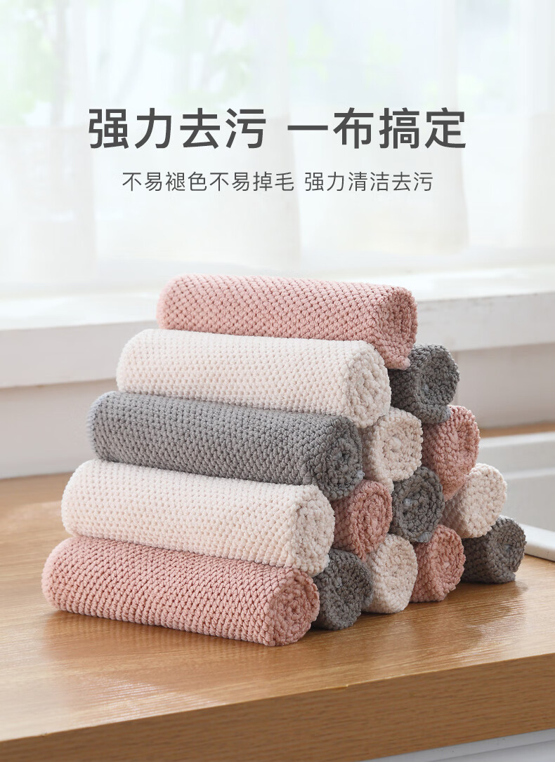Special corn rag for kitchen, strong water absorption, not easy to shed lint, thickened scouring pad for household table wiping to remove oil stains 30*40cm 3 pack (upgraded color)