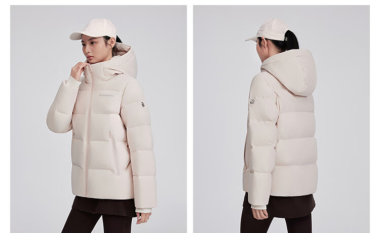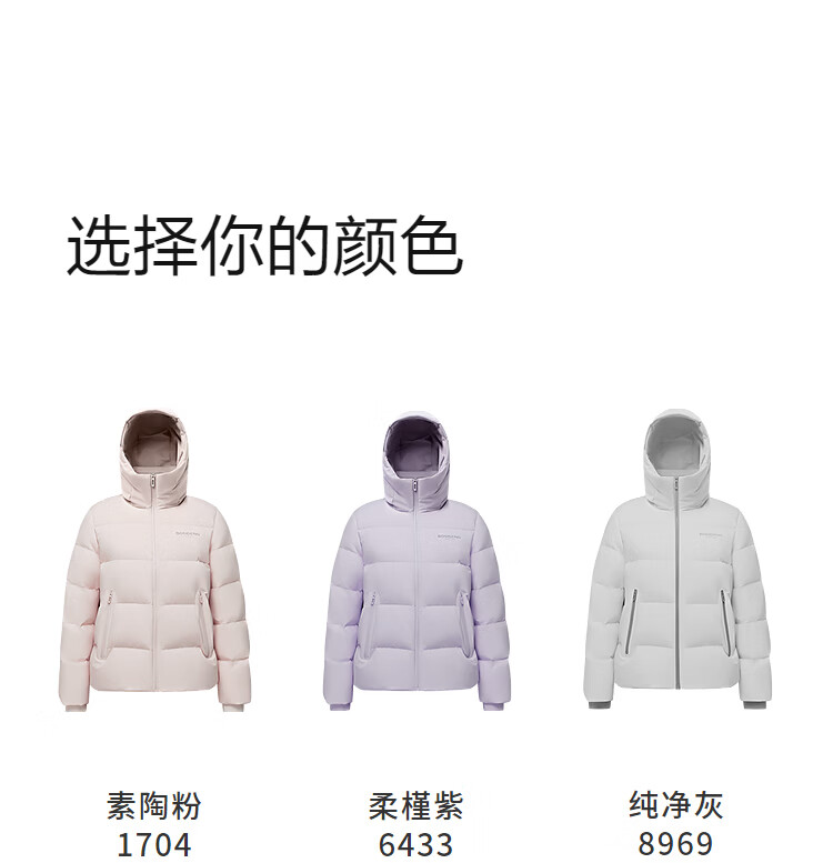 Bosideng (BOSIDENG) 25 new down jackets for men and women in the mall sports series short hooded 90 velvet thickened warm jacket Trend recommendation Plain pottery powder 1704 M 165/88A Weight about 110-120Jin Jin equals 0.5 kg