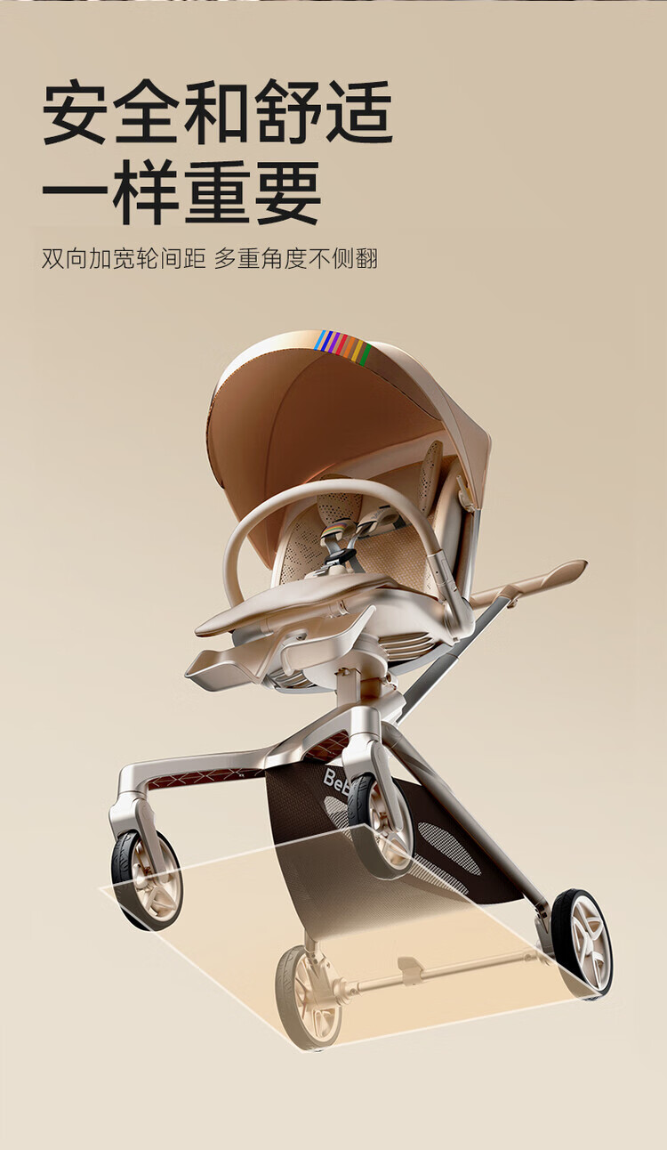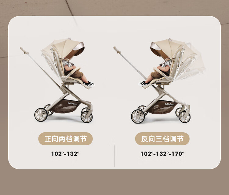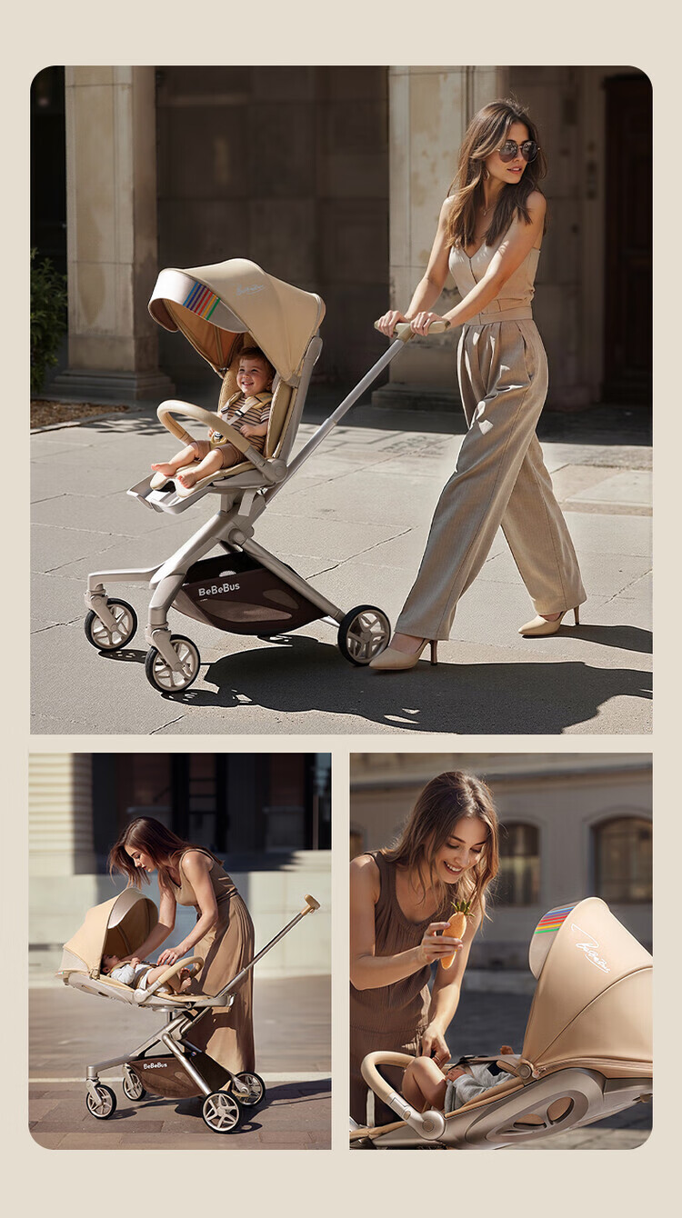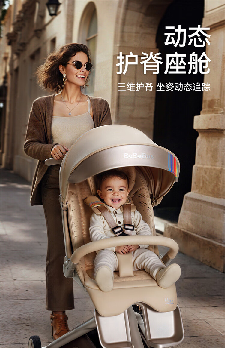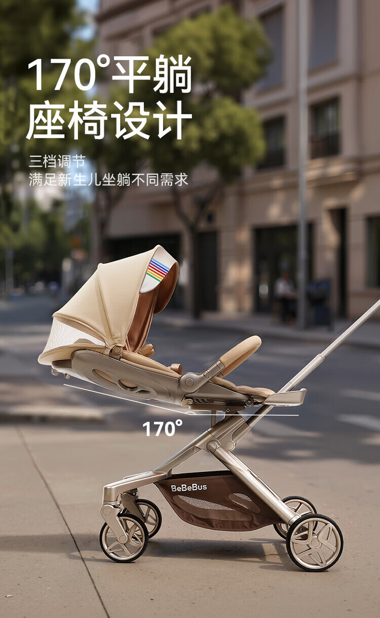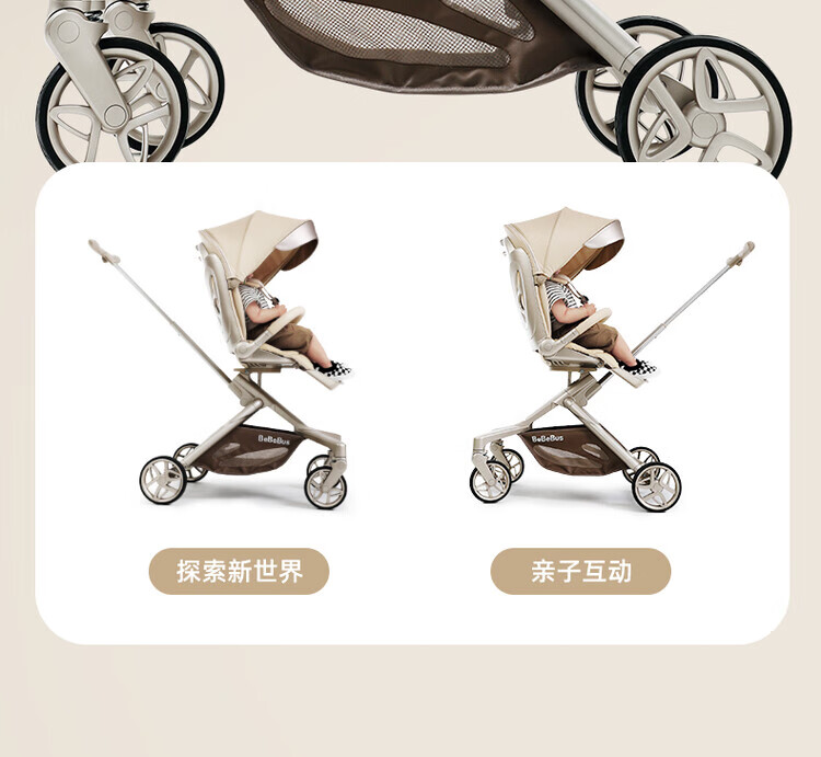Bebebus Baby Walking Device MAX is a lightweight folding, sitable and lying high-view two-way baby stroller stroller, desert titanium + mosquito net mat (adjustable cushion, universal headrest, 360 rotation)