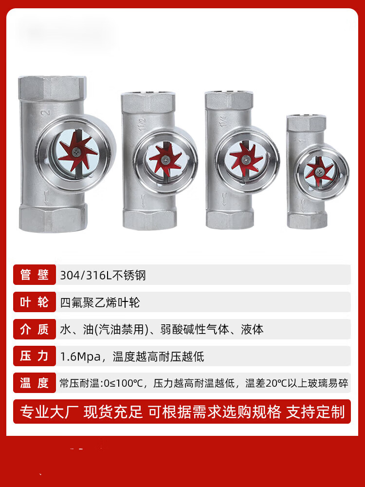 Pipe impeller water sight glass flange carbon steel flow observer dn150 stainless steel flow indicator SG-YL11 304 L152DN502