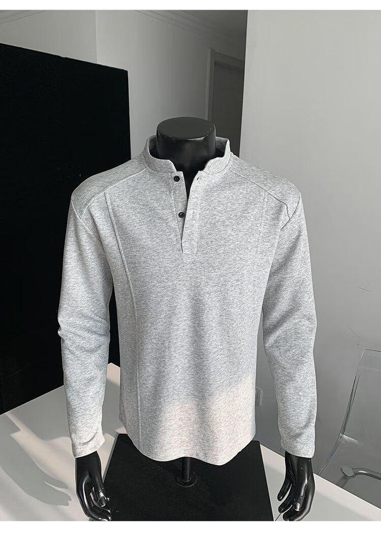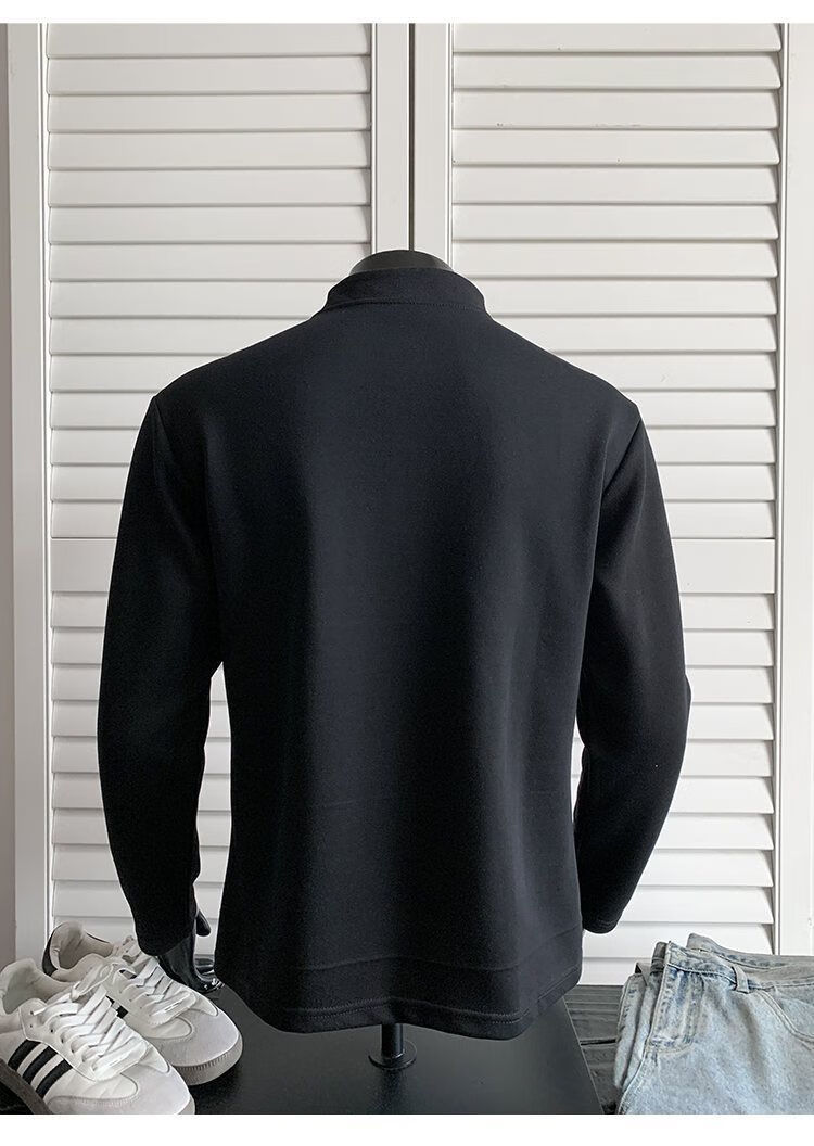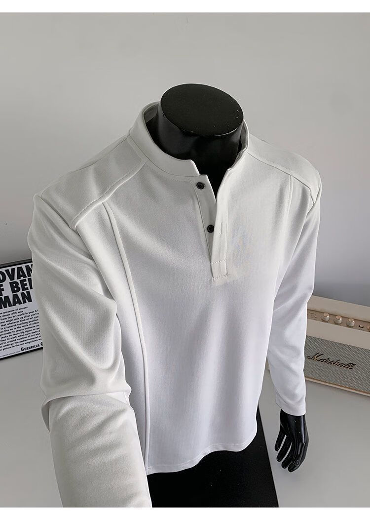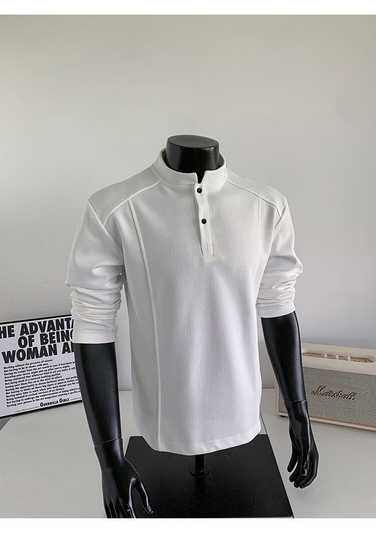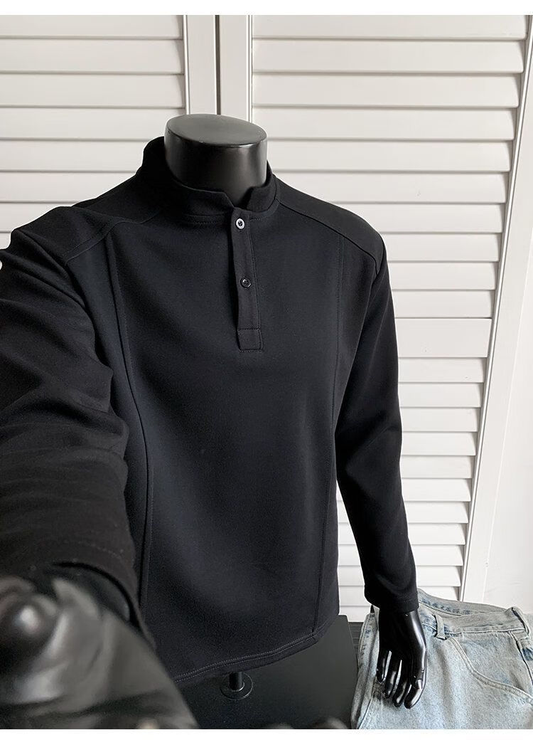 POLO shirt Henry collar long-sleeved t-shirt for men in autumn deconstructed splicing design right shoulder bottoming shirt spring and autumn sweatshirt CX81 black M