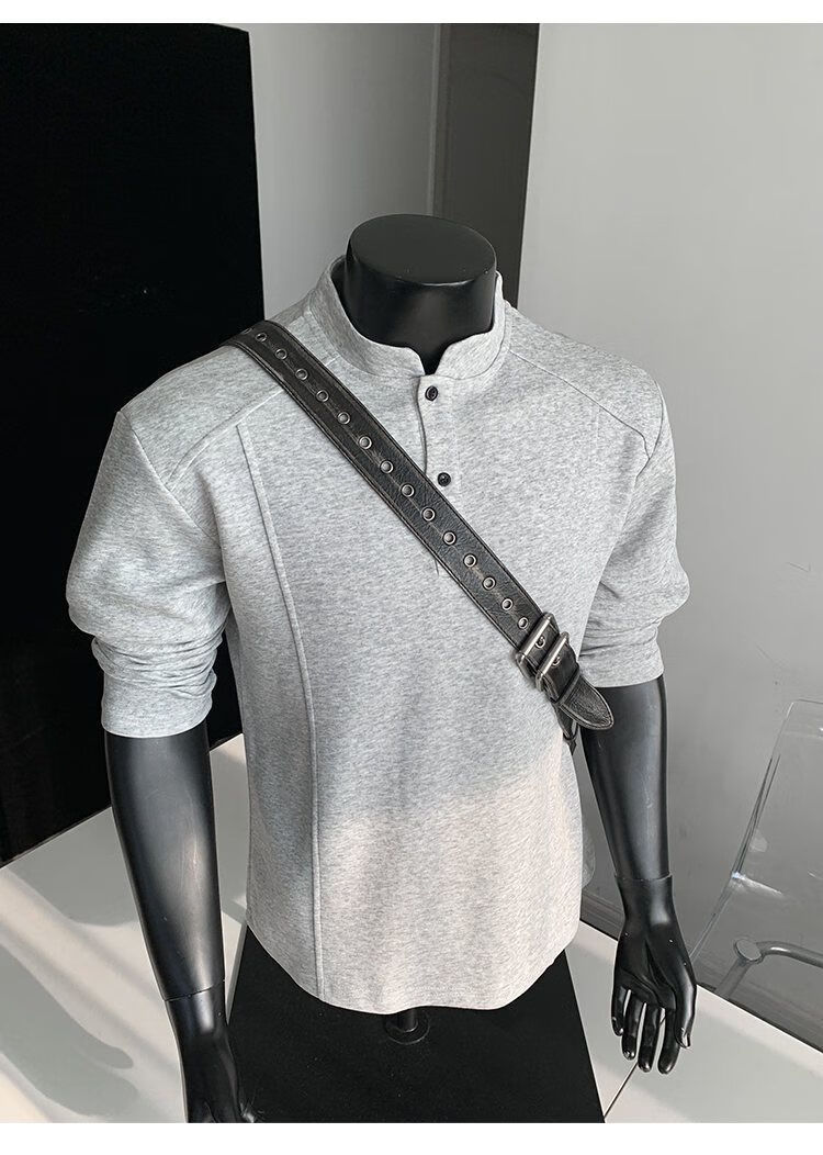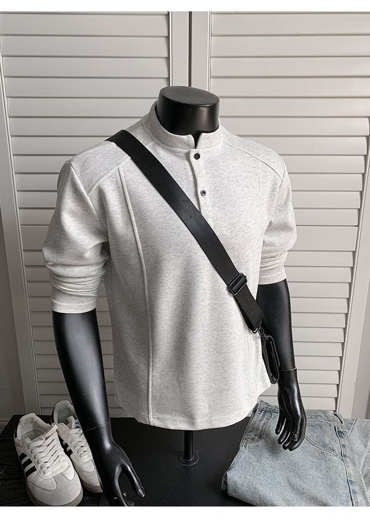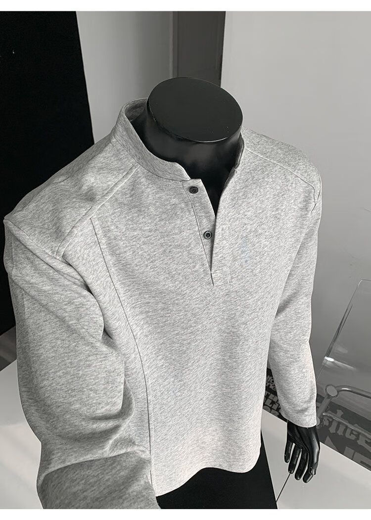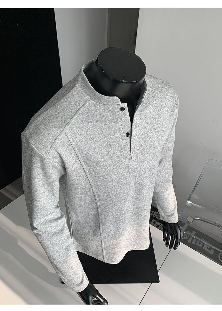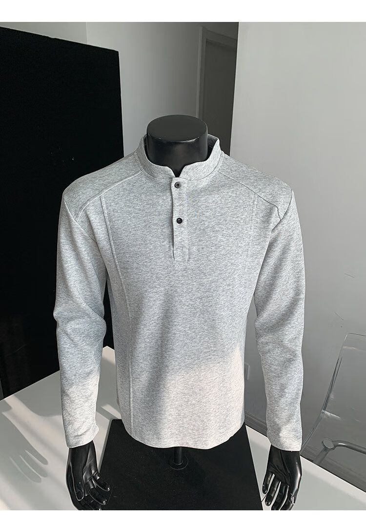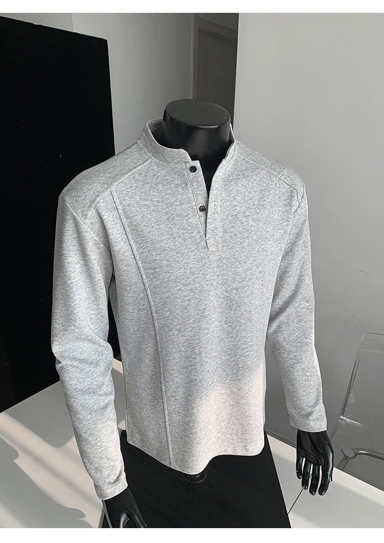 POLO shirt Henry collar long-sleeved t-shirt for men in autumn deconstructed splicing design right shoulder bottoming shirt spring and autumn sweatshirt CX81 black M