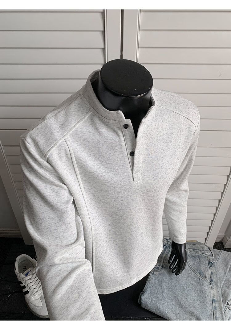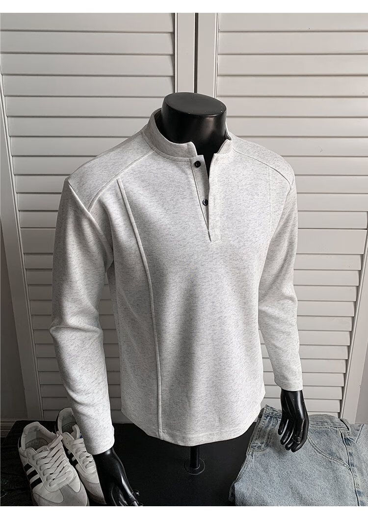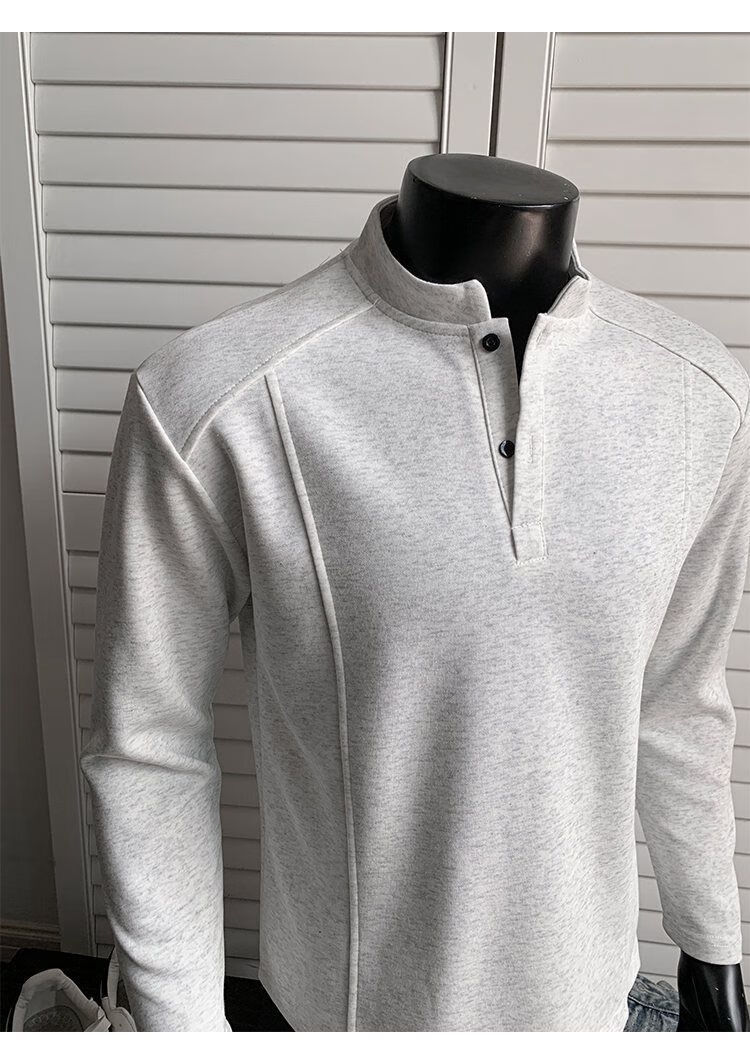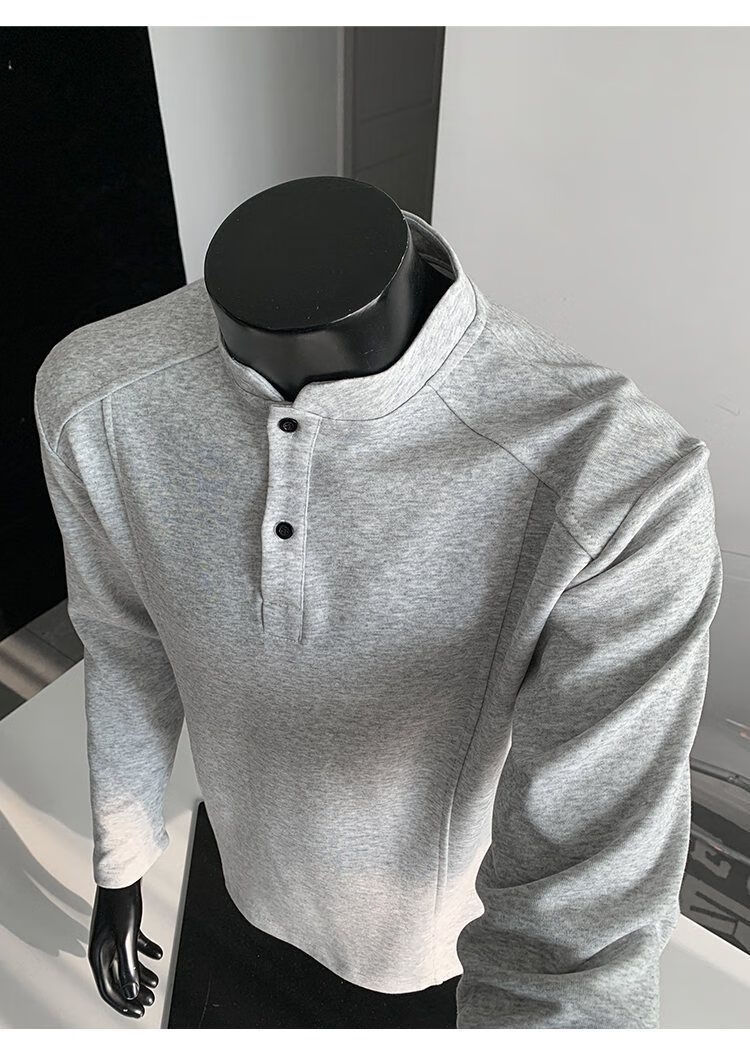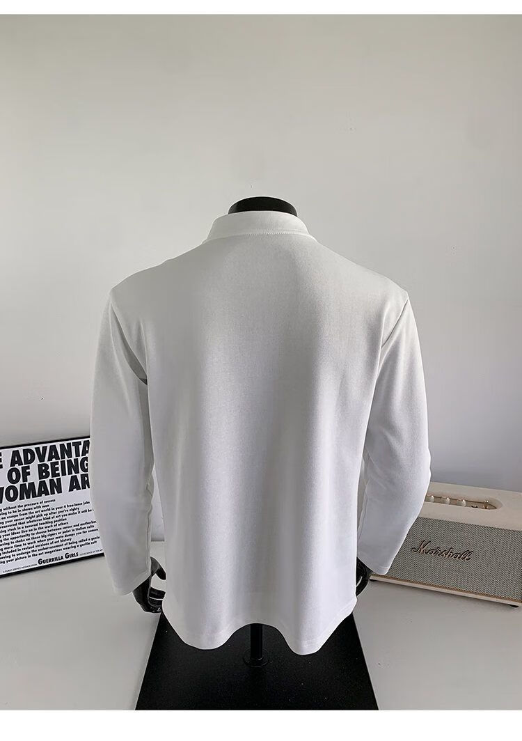 POLO shirt Henry collar long-sleeved t-shirt for men in autumn deconstructed splicing design right shoulder bottoming shirt spring and autumn sweatshirt CX81 black M