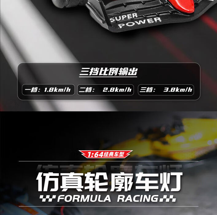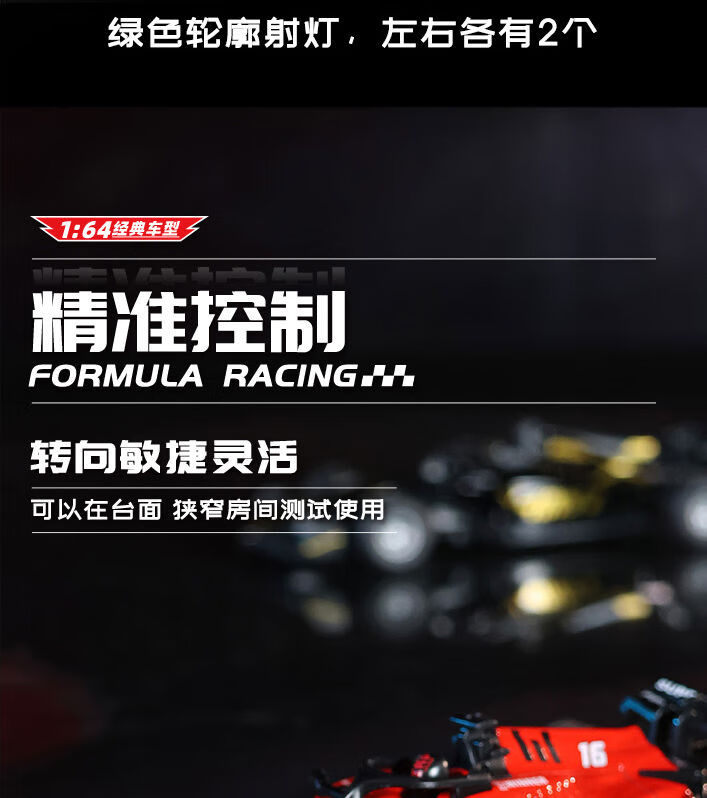 Shantou Lincun simulated 164 mini alloy car model with lights, adjustable speed F2 racing car sliding for children, black Farah F2 racing car