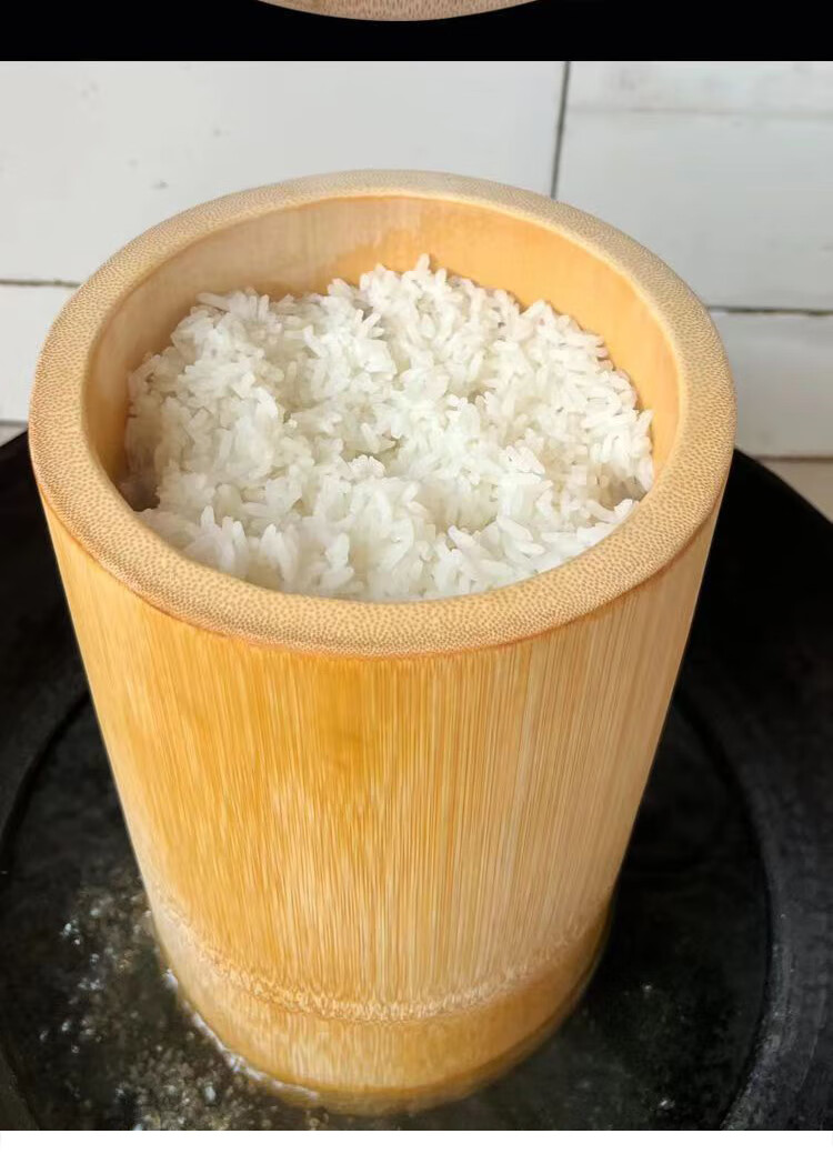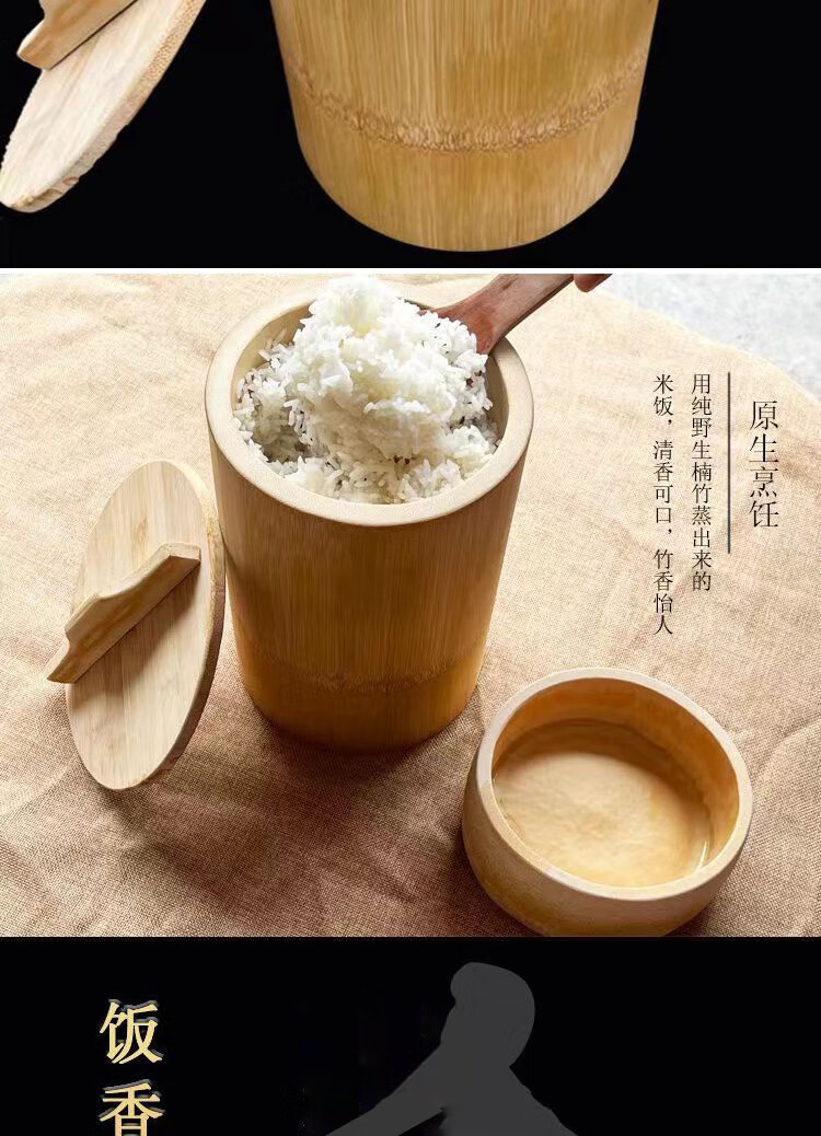 Steamed rice bucket bamboo steamed rice bamboo tube household whole bamboo rice bucket bamboo steamer fresh bamboo rice tube outer diameter about 17-18cm with lid + steaming cloth