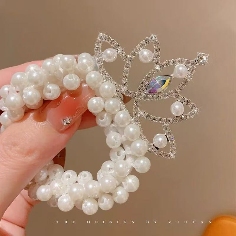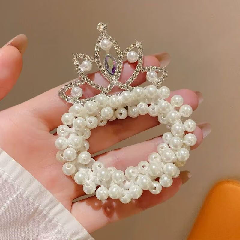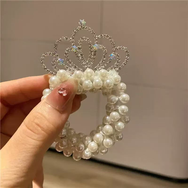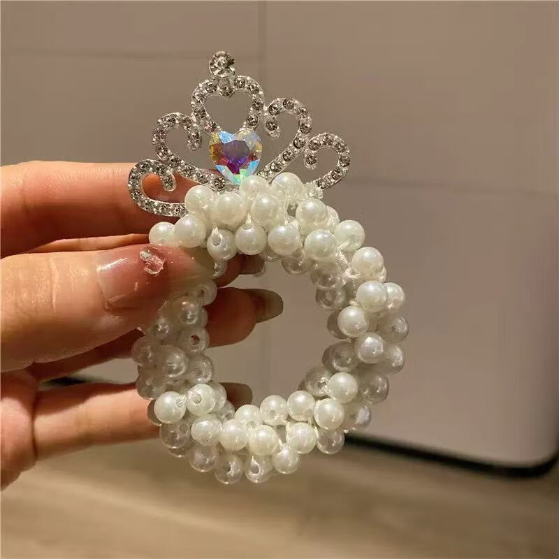 Wedding Pearl Hair Rope Princess Crown Tiara Bridal Ball Hair Circle Rubber Band Women's Hair Tie Children's Hair Flower Hair Accessories 03 Little Star Crown