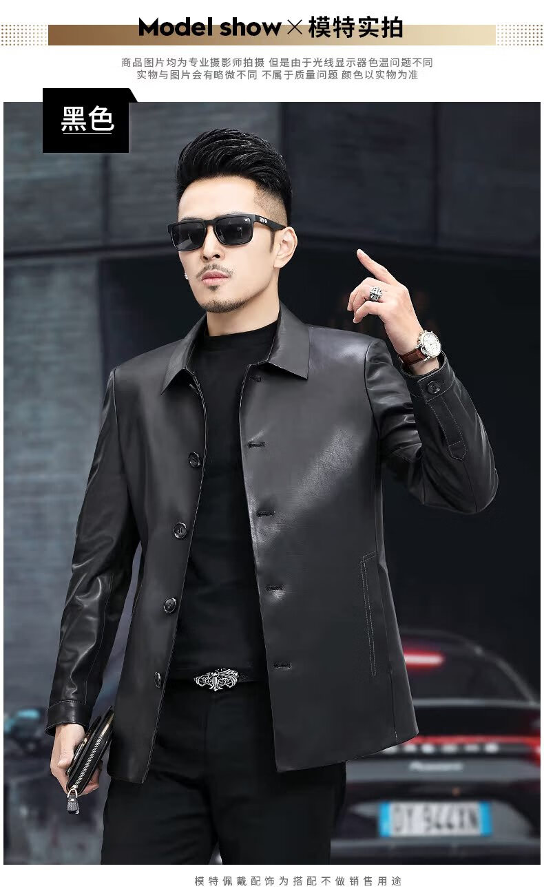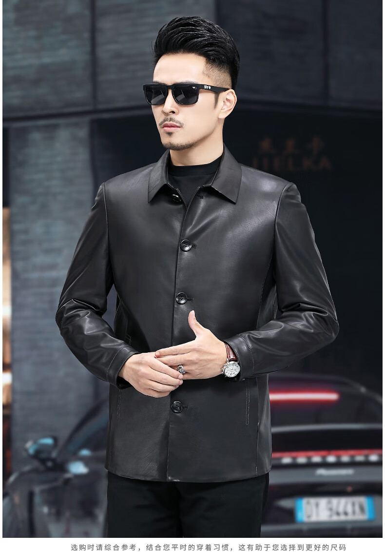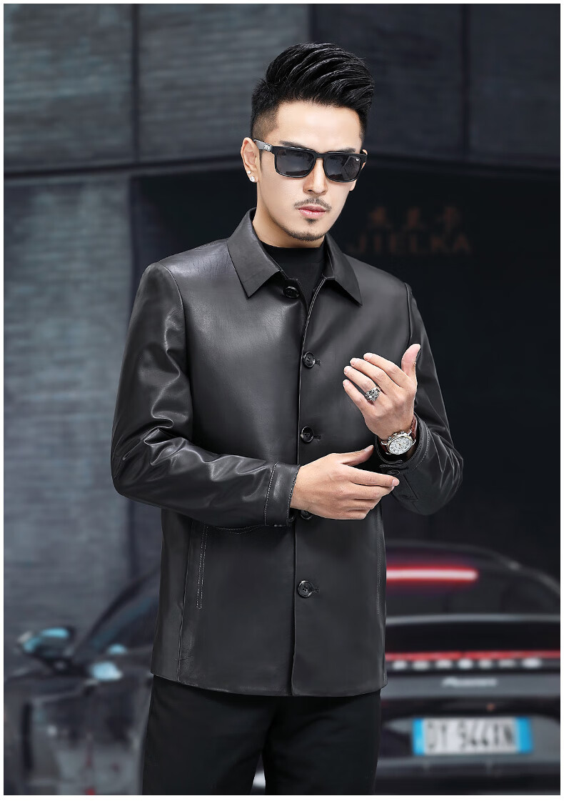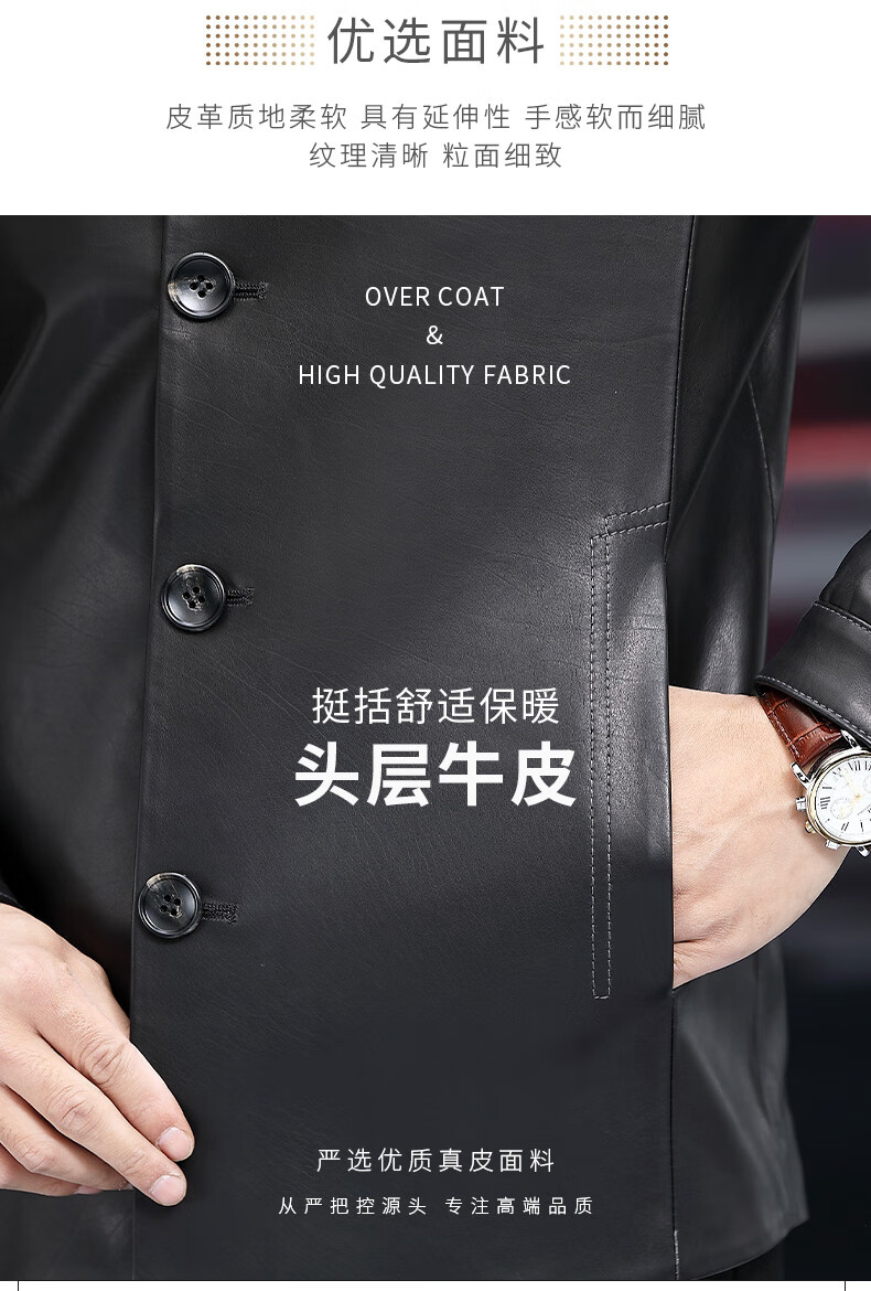 ARMANI EXCHANGE Armani Haining first-layer cowhide lapel black slim business leather jacket mid-length zipper leather jacket black L 170