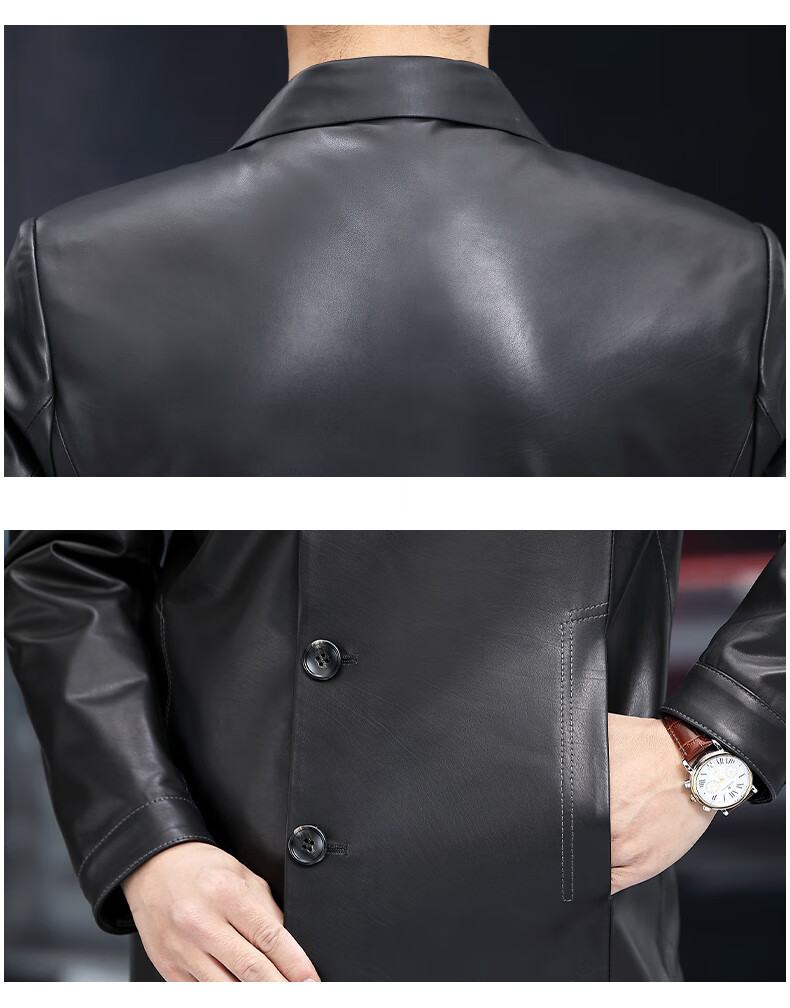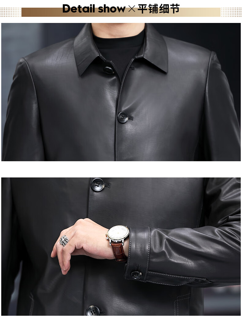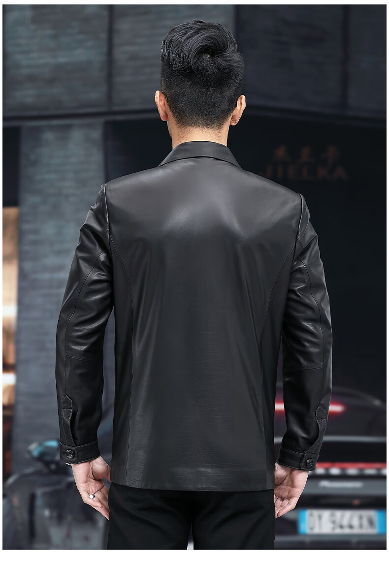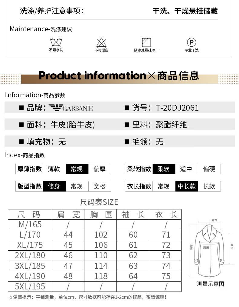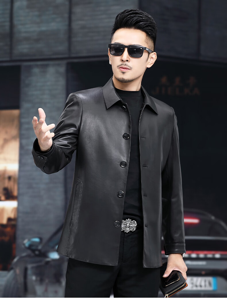 ARMANI EXCHANGE Armani Haining first-layer cowhide lapel black slim business leather jacket mid-length zipper leather jacket black L 170