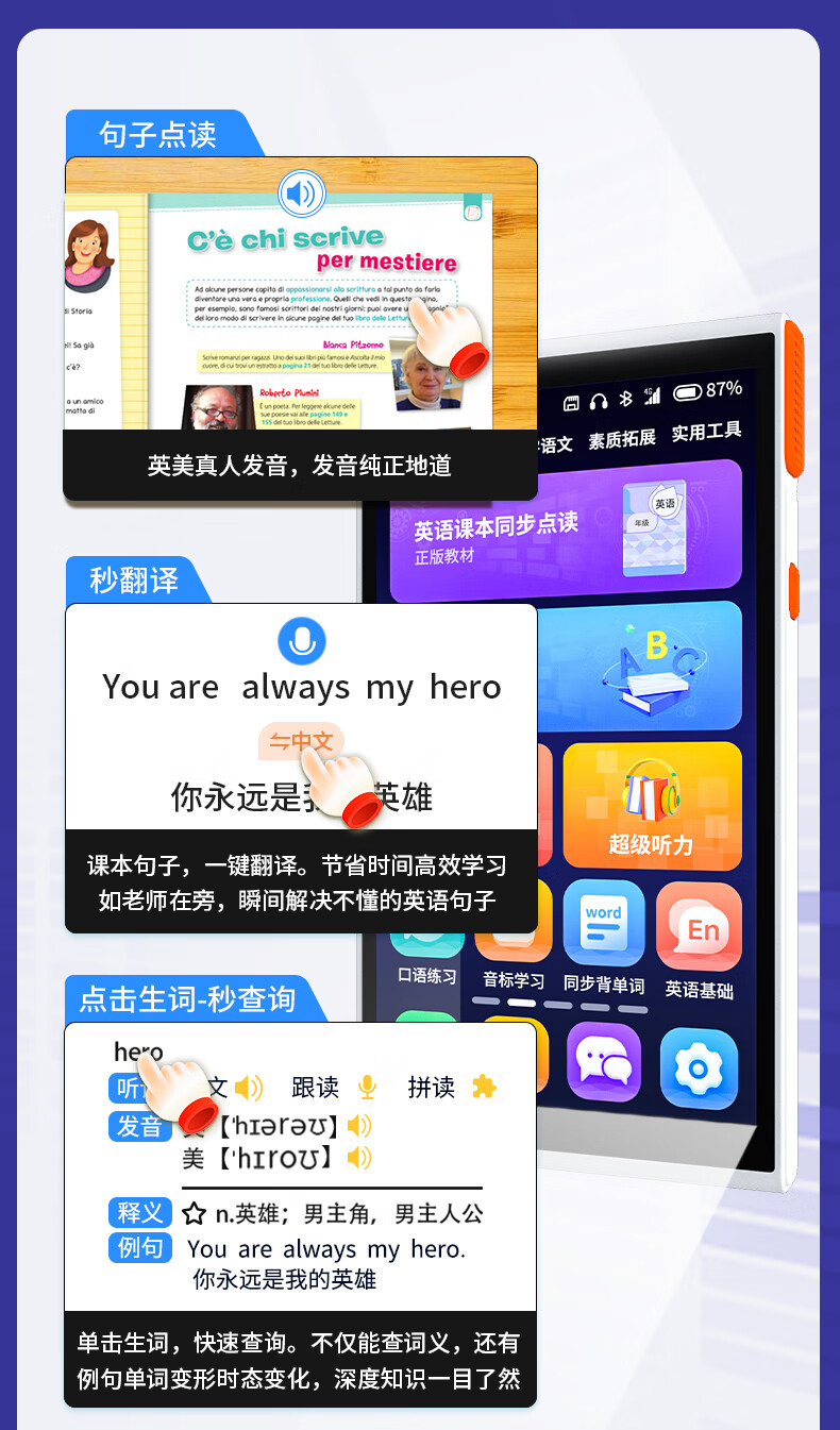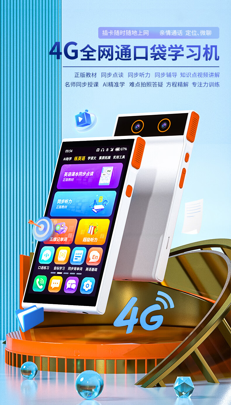 Dr. Alpha 4G pocket learning machine, full network call, text message, positioning, micro chat, general subject synchronization course, primary school, junior high school and high school students English reading machine, listening treasure repeater machine, tutoring, silver flagship version 128GB