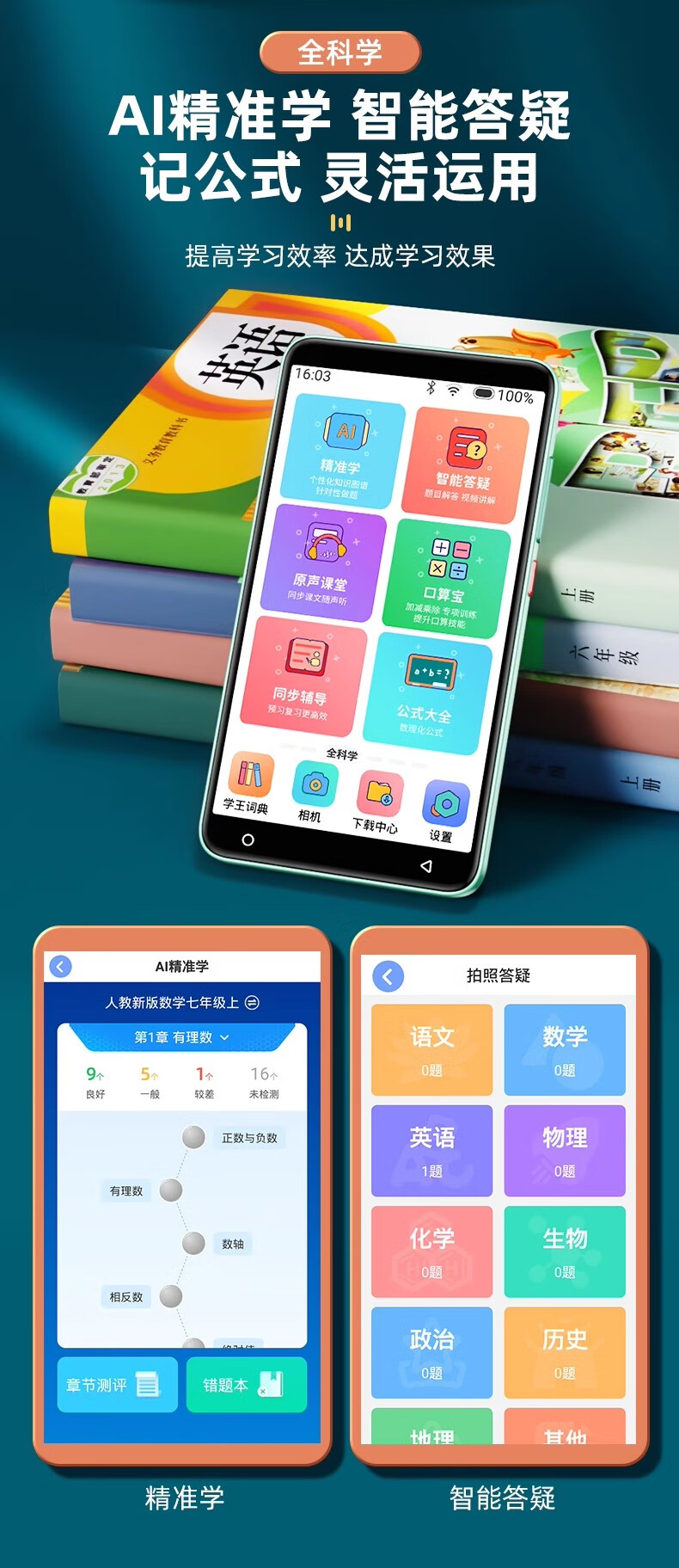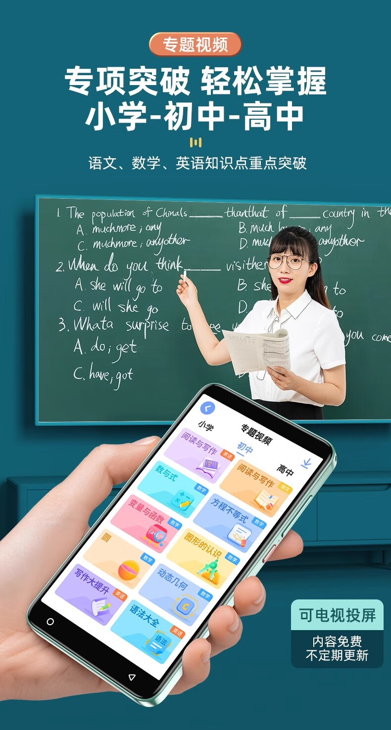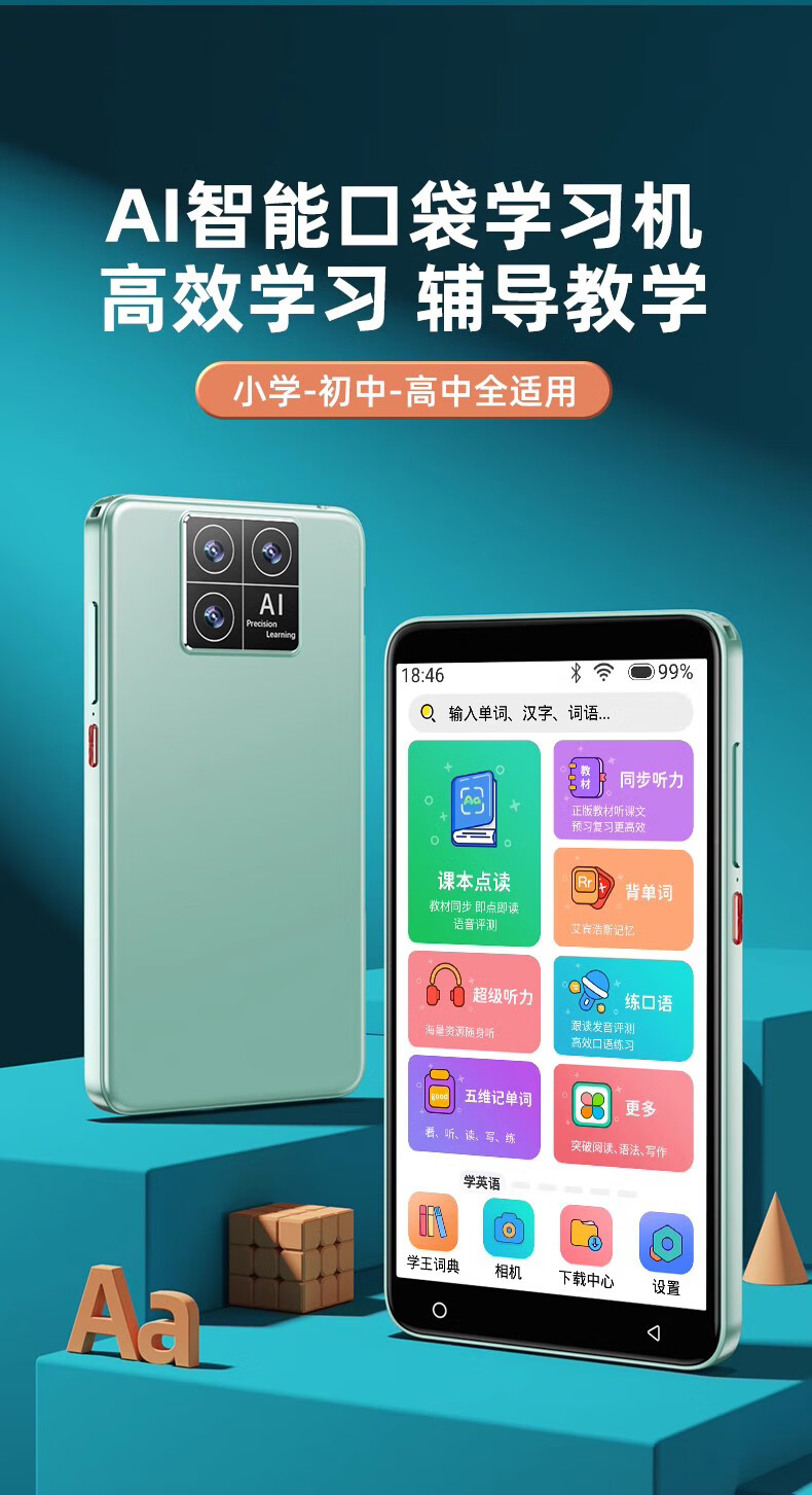 Dr. Alpha Smart Pocket Learning Machine Primary School Junior High School High School Students General Synchronous Courses Famous Teachers Video English Language Mathematics Point Reading Machine Listening Treasure Word Repeat Tutoring Tutoring Machine Silver Top Edition 256GB