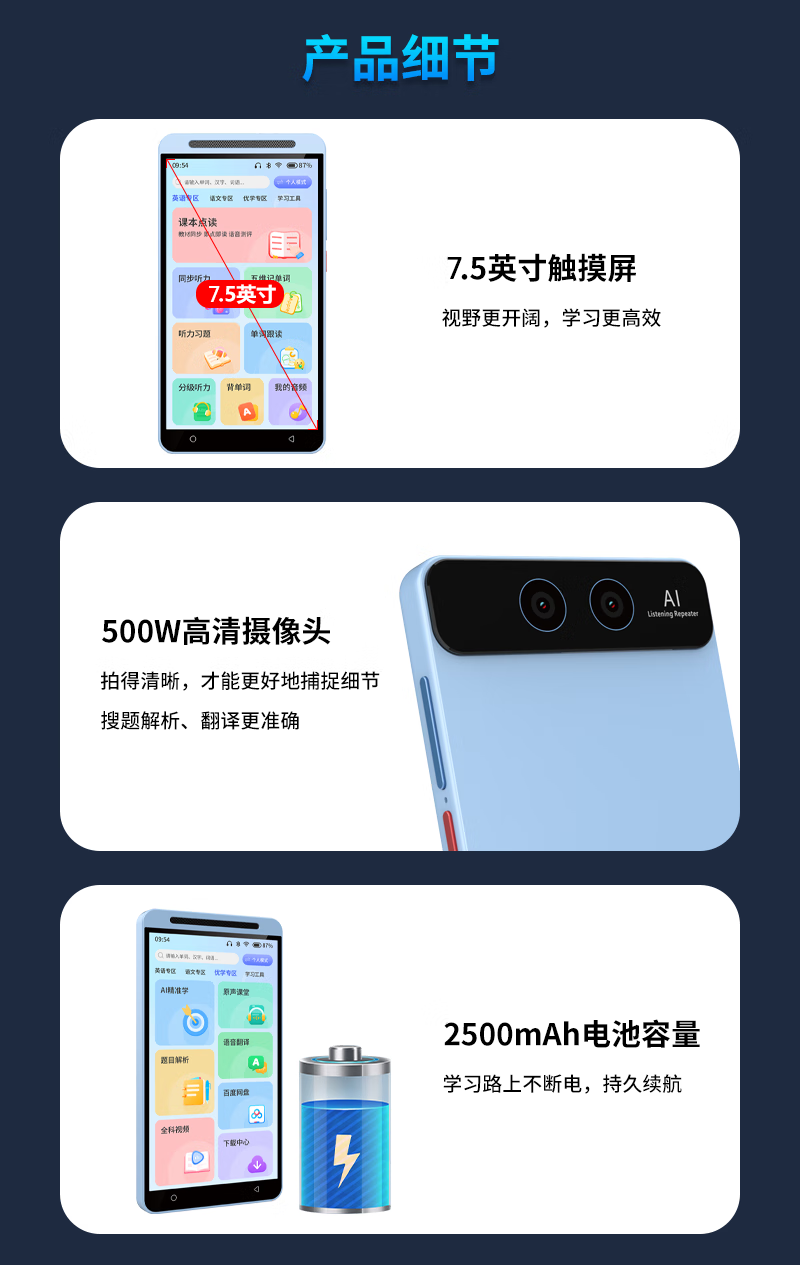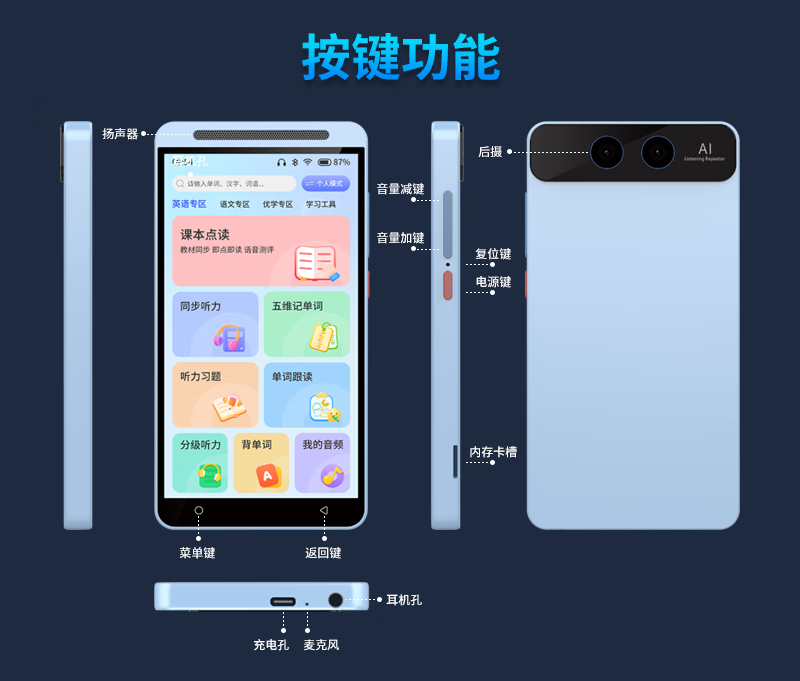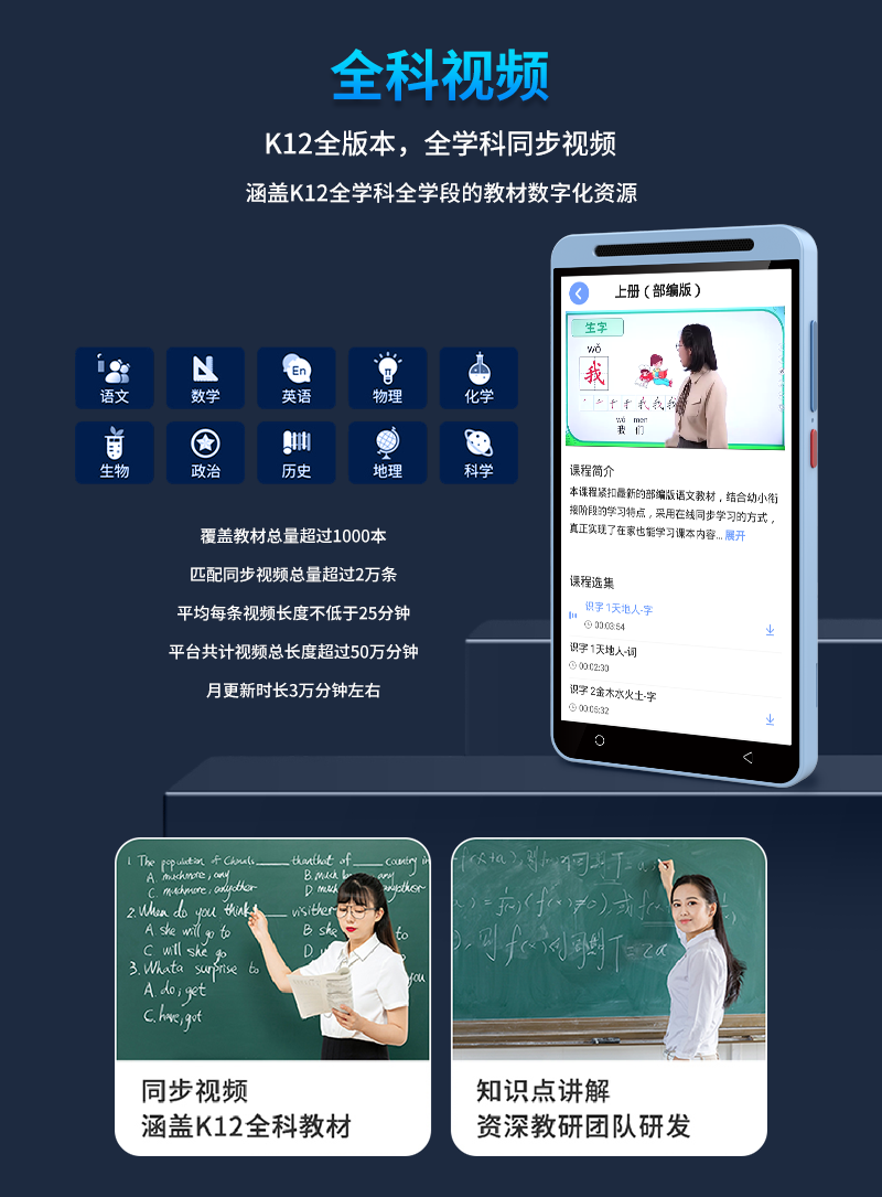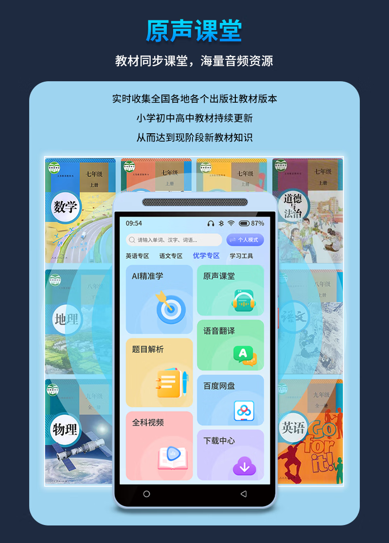 Dr. Alpha's new smart pocket learning machine, primary school, junior high school and high school students, general synchronous courses, famous teacher video, English language, mathematics reading machine, listening treasure, repeat reading tutoring machine, silver flagship version 128GB