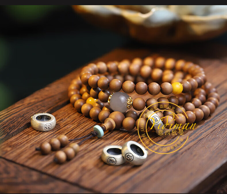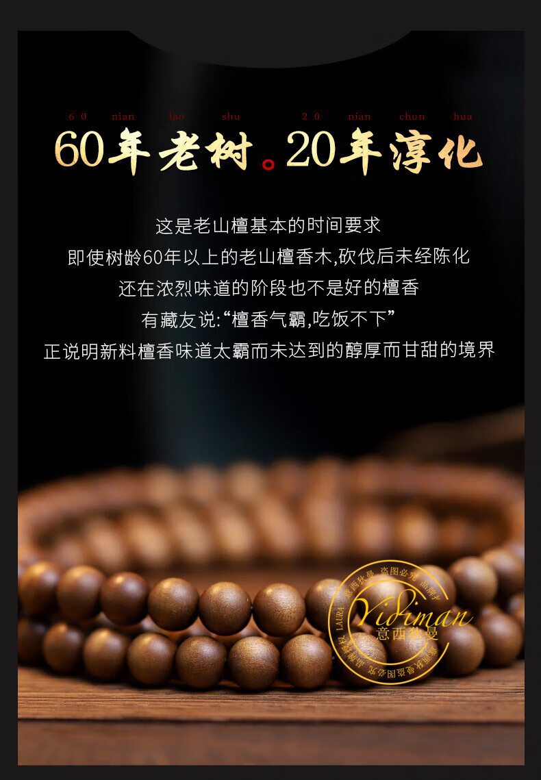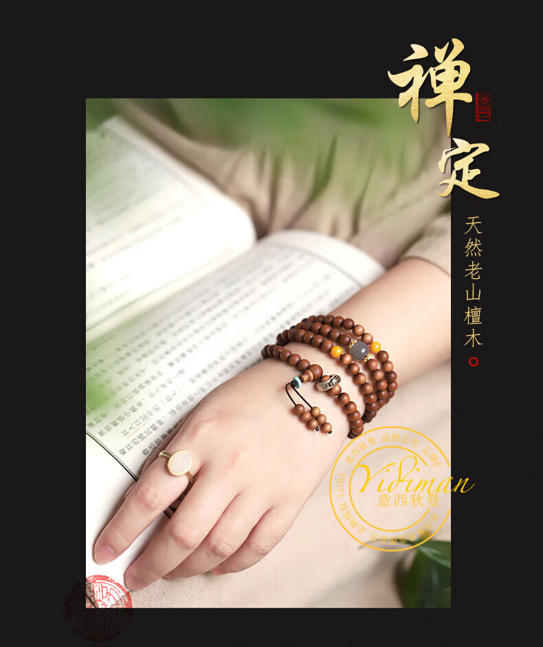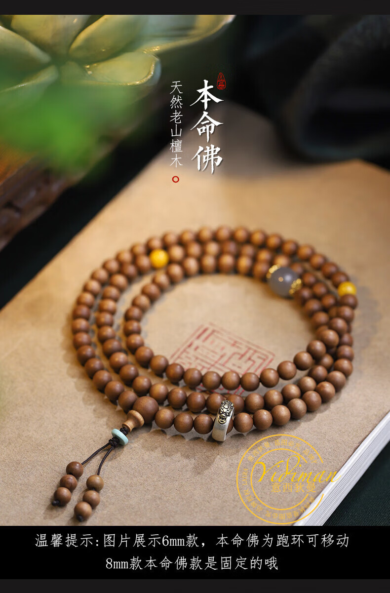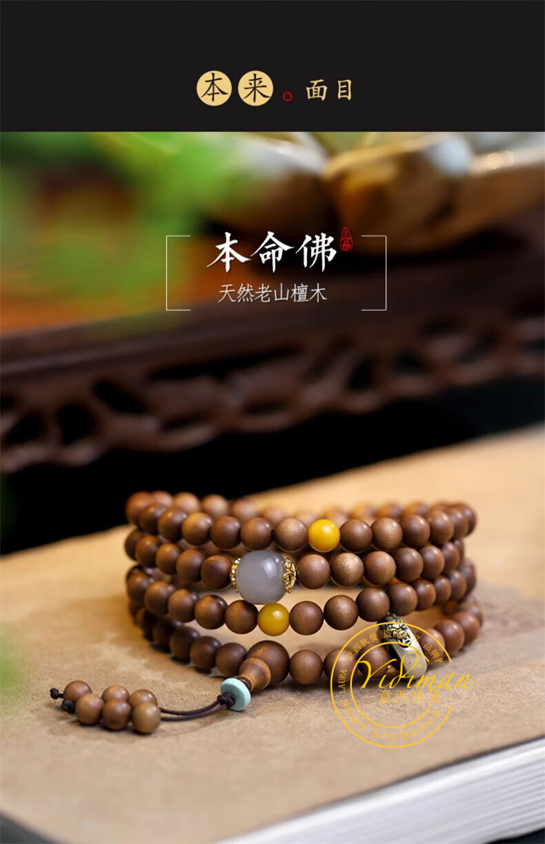 Italian Indian Laoshan Sandalwood Bracelet for Men and Women 108 Buddha Beads, Mysore Bracelet for Husband, Birth Year of the Buddha Heart Mantra (Rat), 35 carats, subject to the actual product