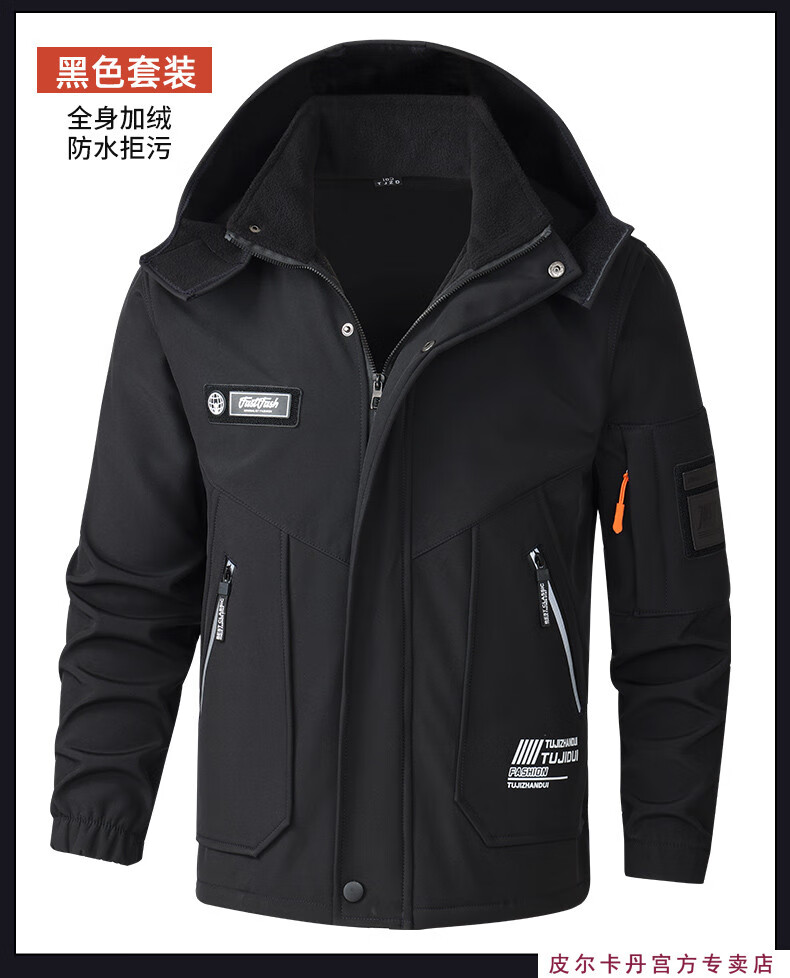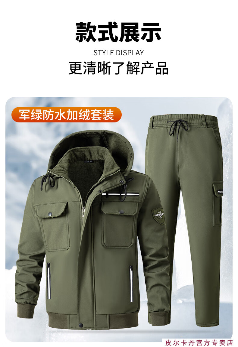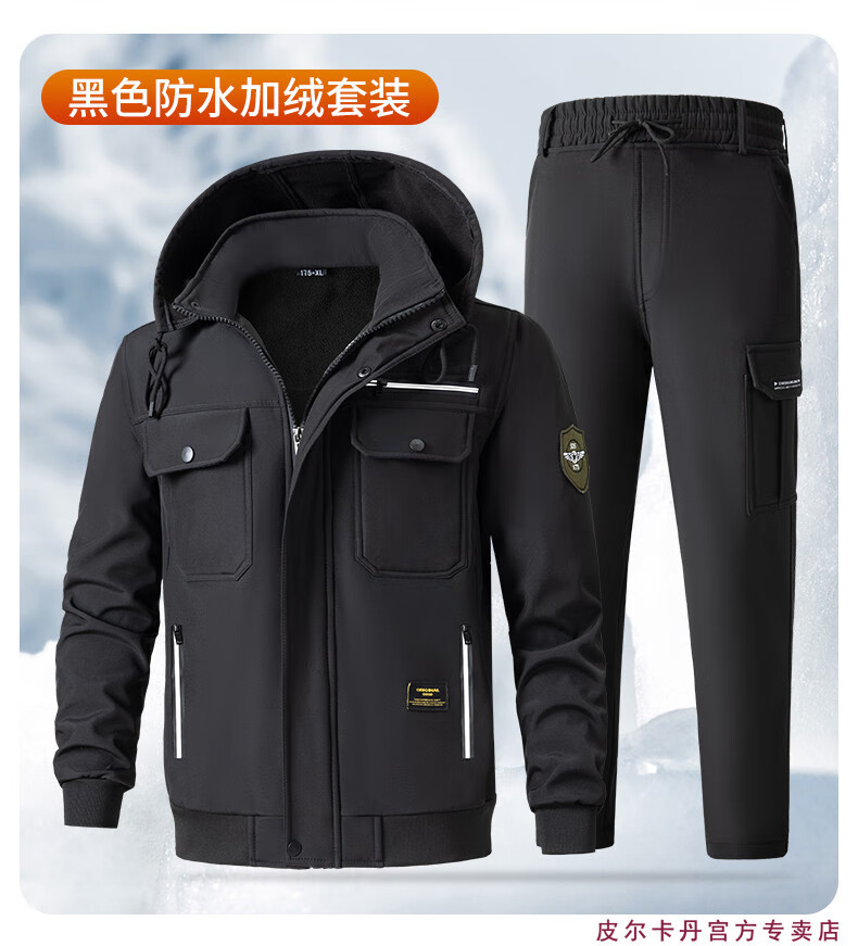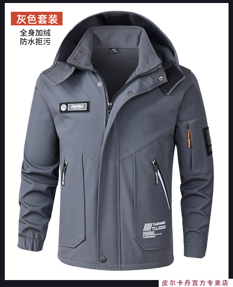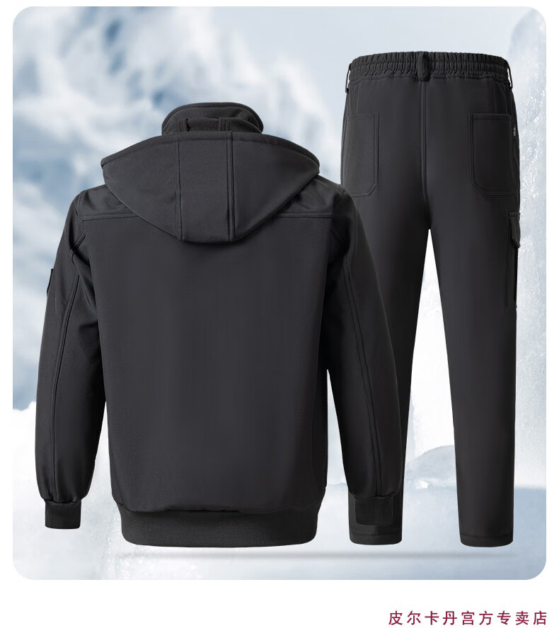 Pierre Cardin winter season velvet work clothes suit men's labor protection clothing thickened warm assault custom windproof and waterproof work clothes 930 velvet gray thickened suit 2XL 180 suitable for 145-160Jin Jin equals 0.5 kg