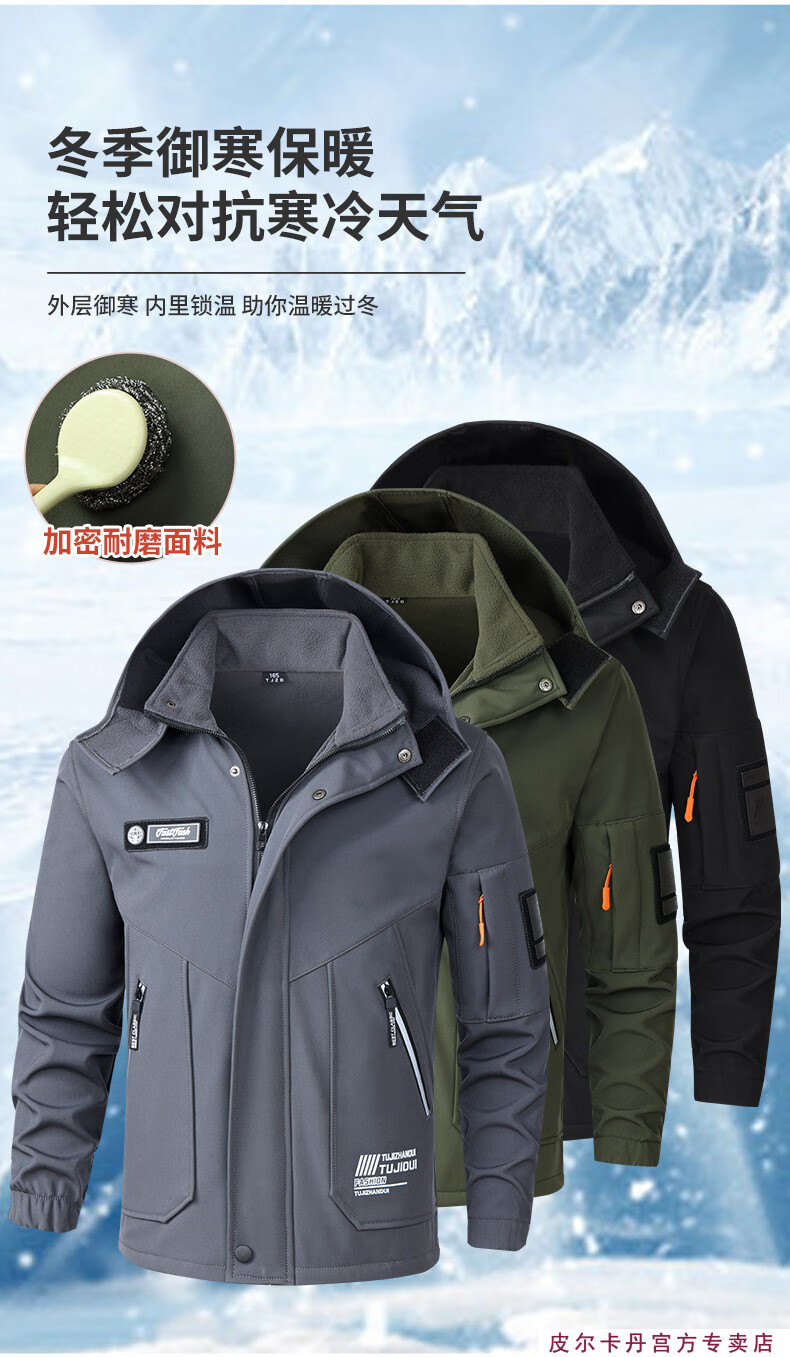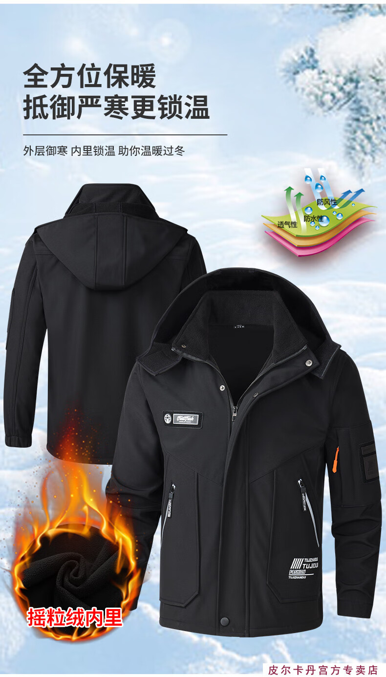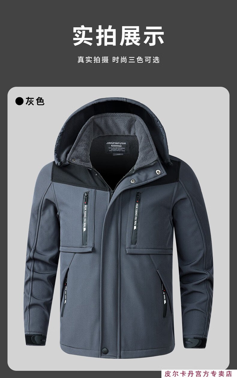 Pierre Cardin winter season velvet work clothes suit men's labor protection clothing thickened warm assault custom windproof and waterproof work clothes 930 velvet gray thickened suit 2XL 180 suitable for 145-160Jin Jin equals 0.5 kg