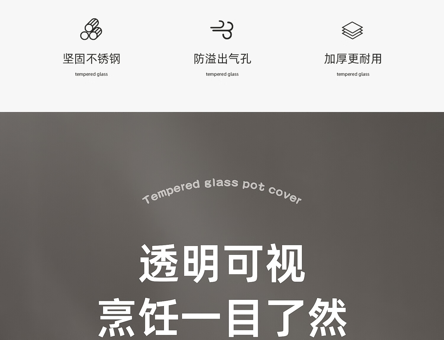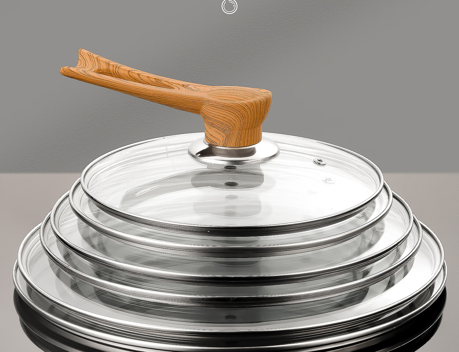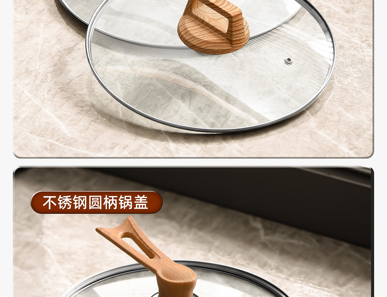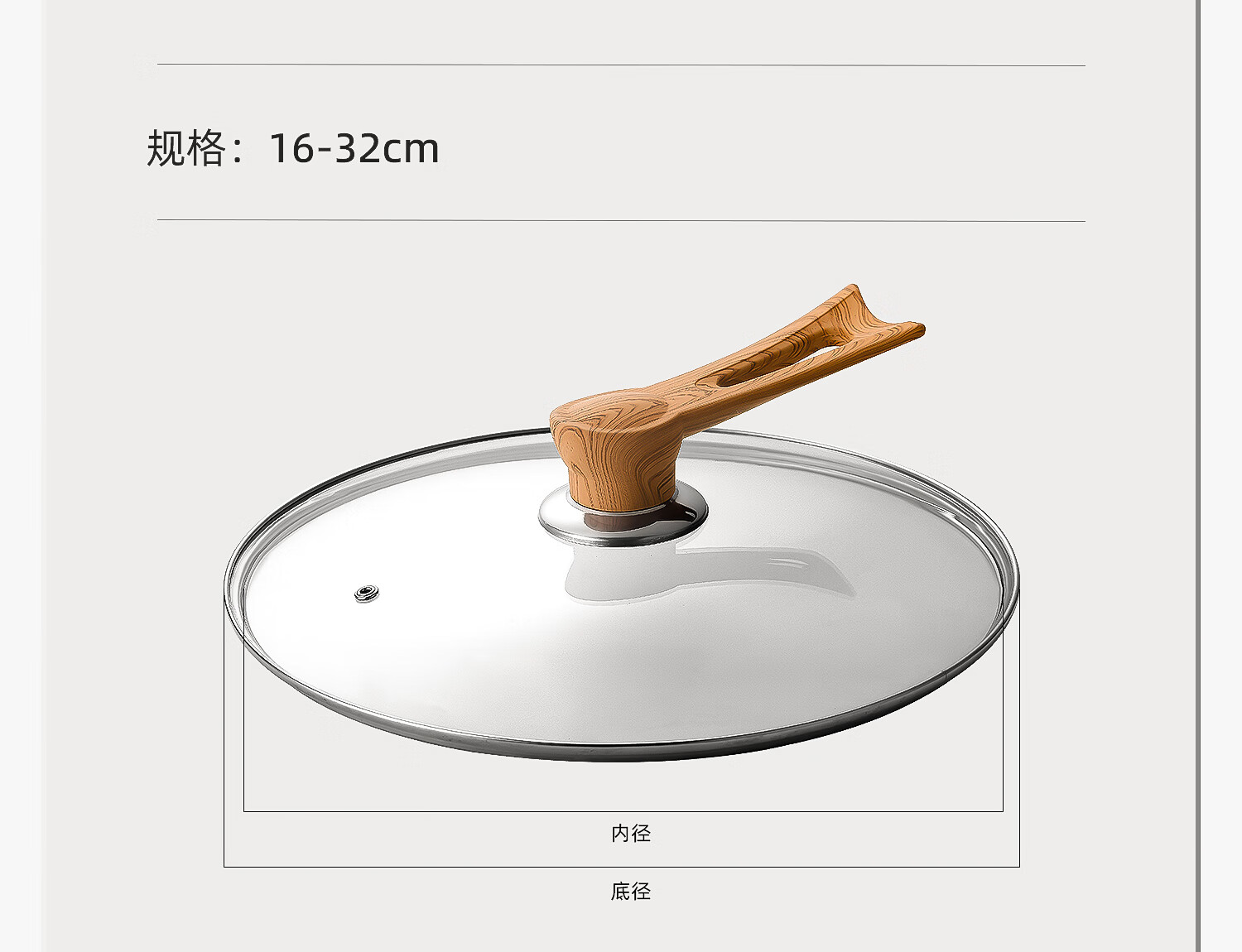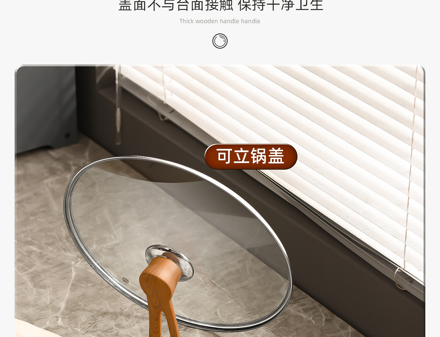 Can stand up tempered glass pot lid transparent household milk pot frying pan steamer wok lid high temperature resistant fall-resistant lid 30cm tempered glass lid (upright wood grain handle)