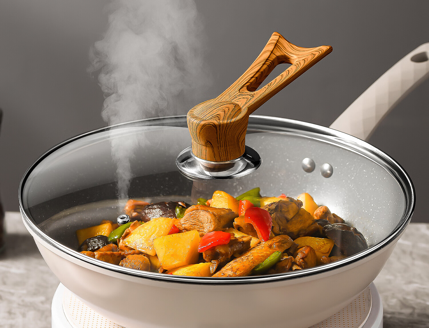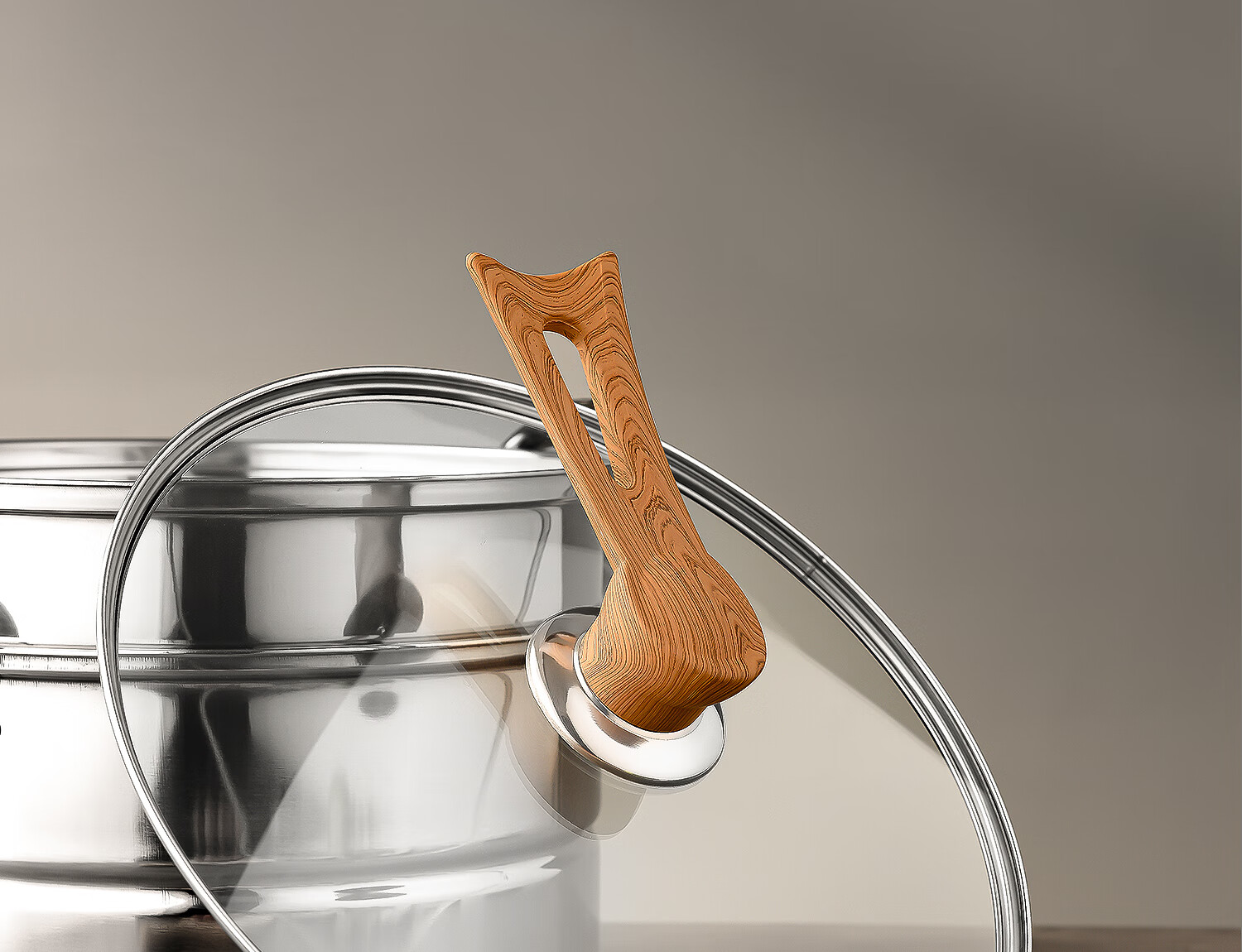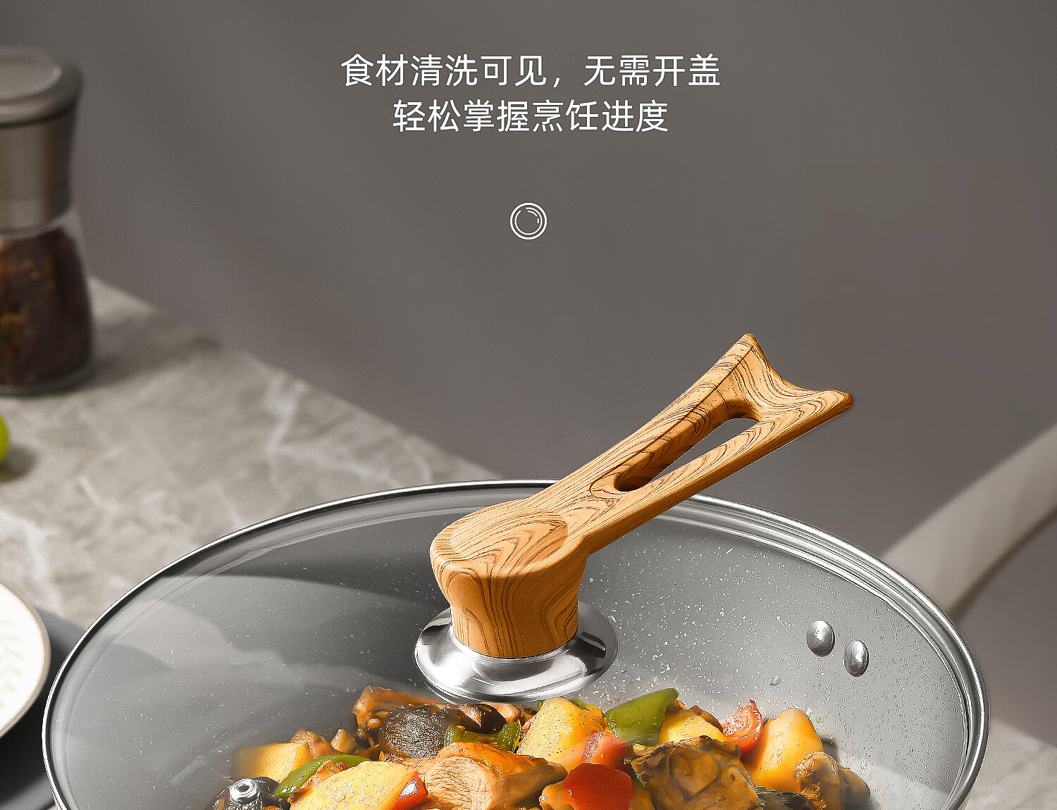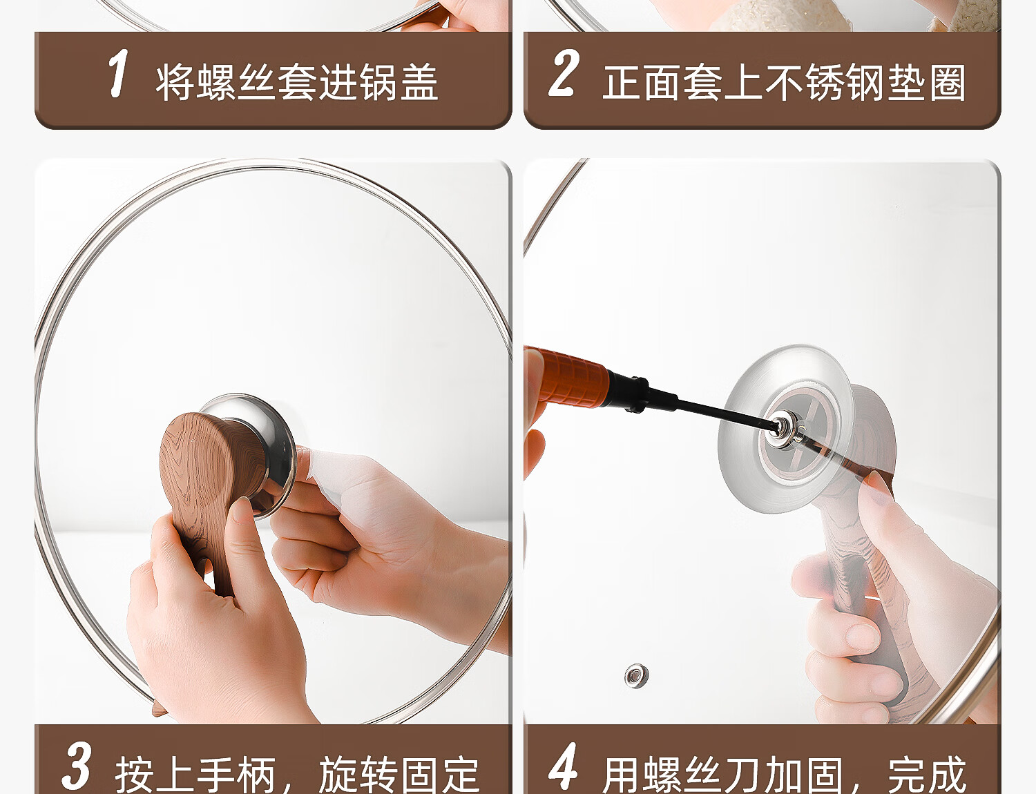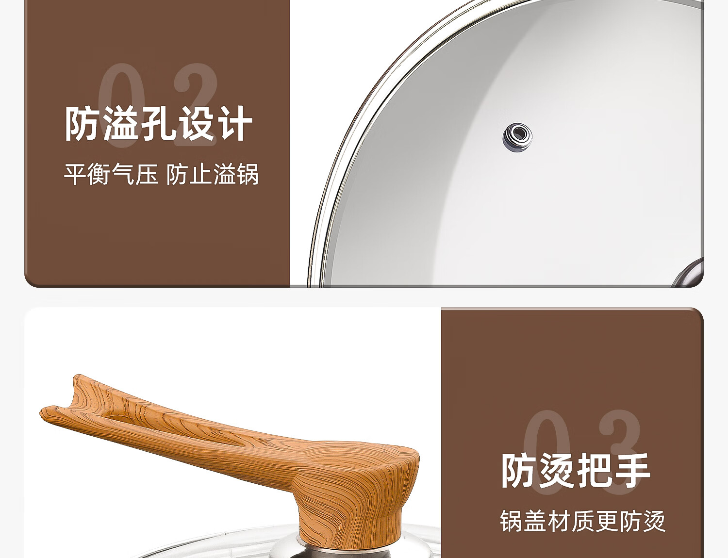 Can stand up tempered glass pot lid transparent household milk pot frying pan steamer wok lid high temperature resistant fall-resistant lid 30cm tempered glass lid (upright wood grain handle)