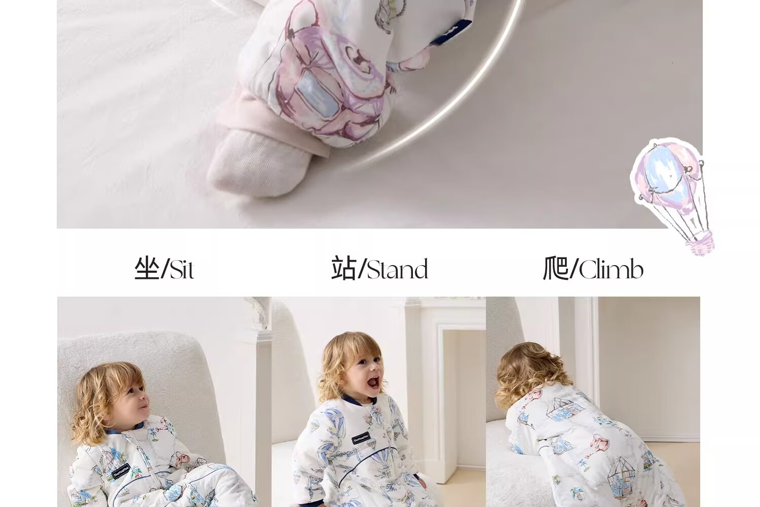 DOMIAMIA baby sleeping bag, warm belly protection, warm split-leg sleeping bag, children's anti-cold and anti-kick quilt 56234 Krabeya-thin quilted (recommended 13-20) L size (recommended baby height 90-105cm)