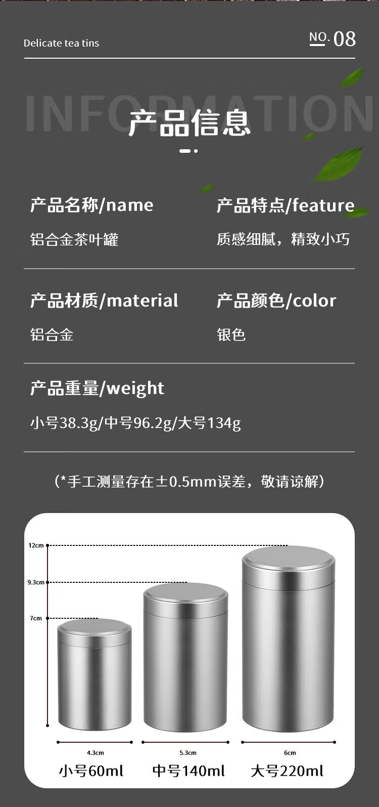 Aluminum alloy tea can small portable creative sealed can metal travel tea packaging box 60ml single package sealed and leak-proof small and portable